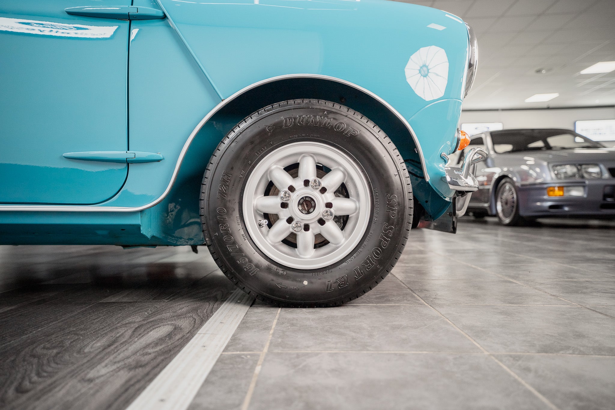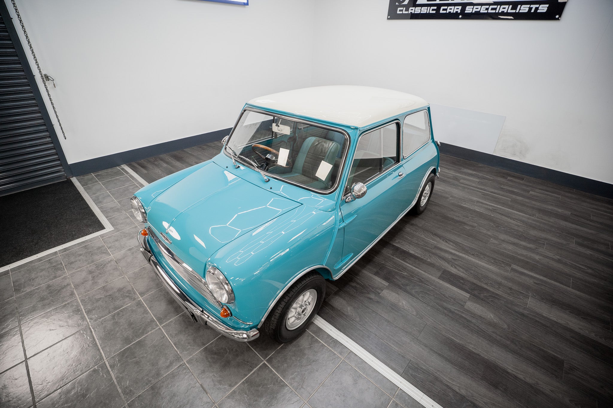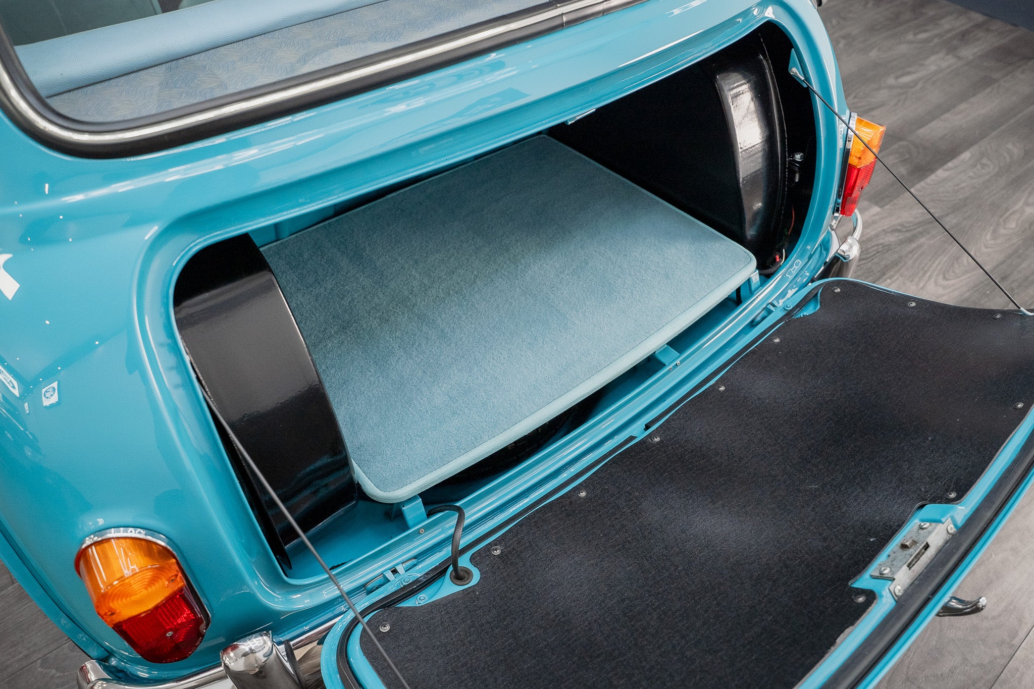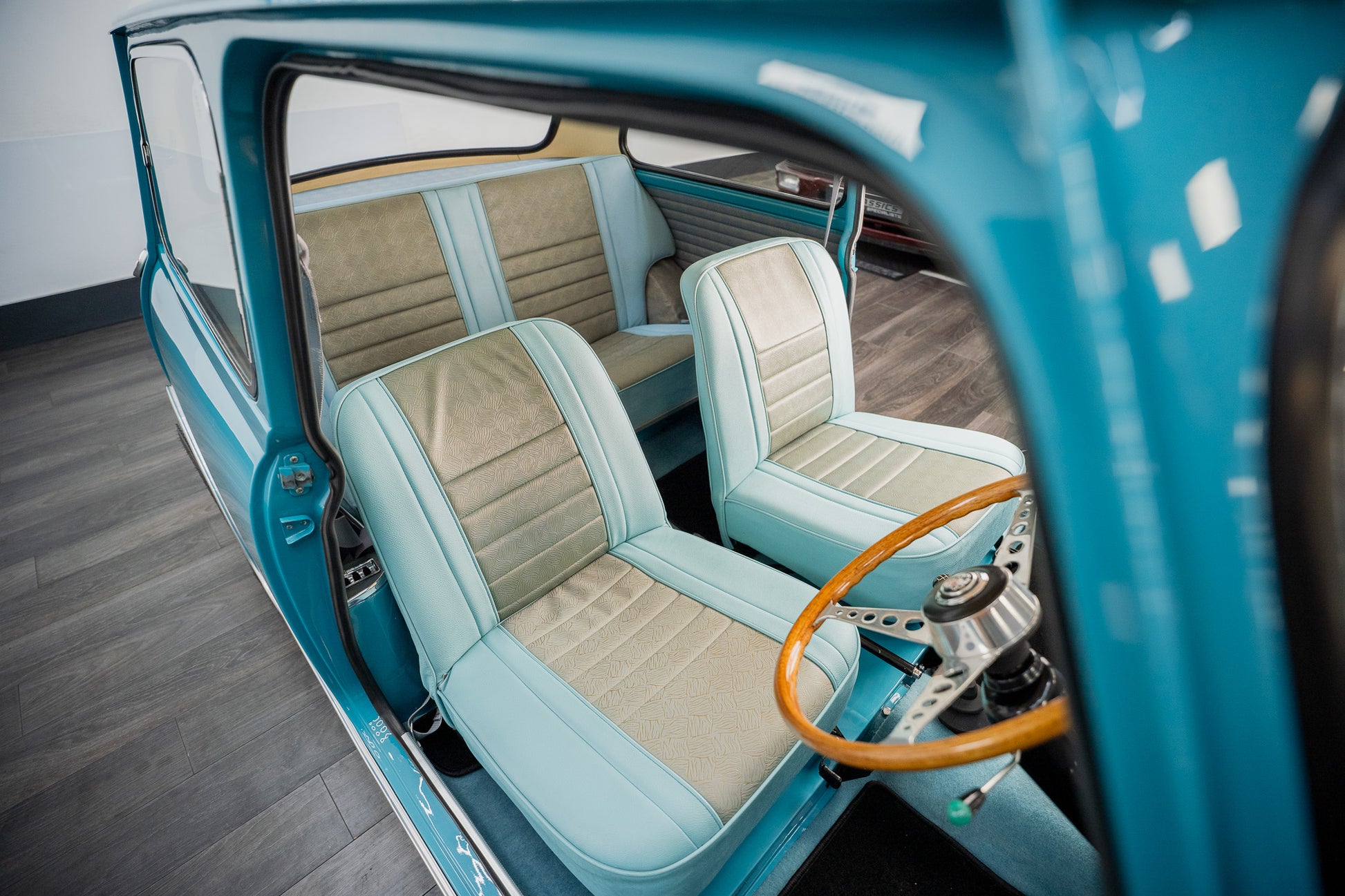 Expense was not an issue including ‘NOS’ Hydrolastic displacers fitted along with all consumables where required. Finished in Austin ‘Surf Blue’ body paint along with traditional ‘Old English’ white paintwork to the roof