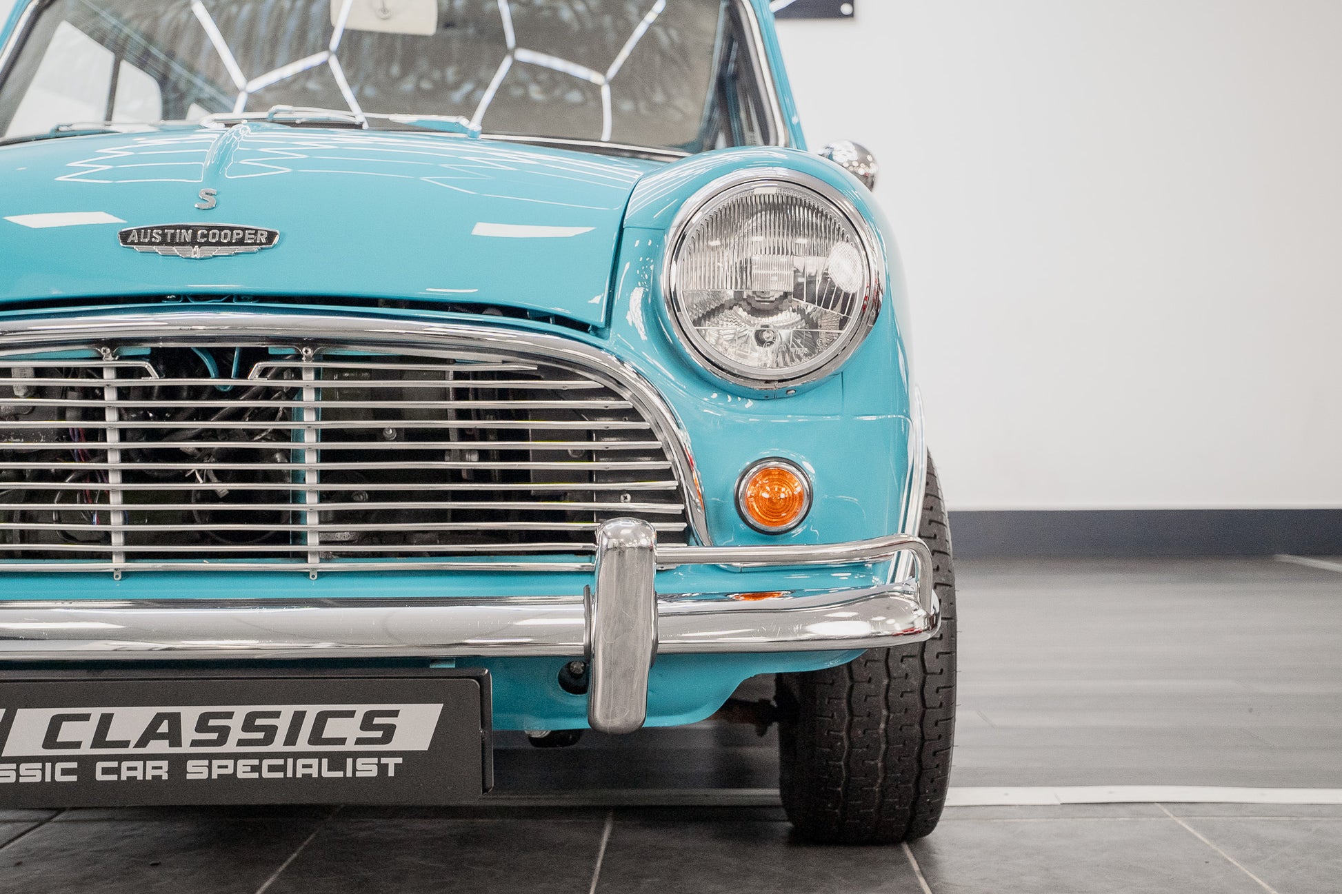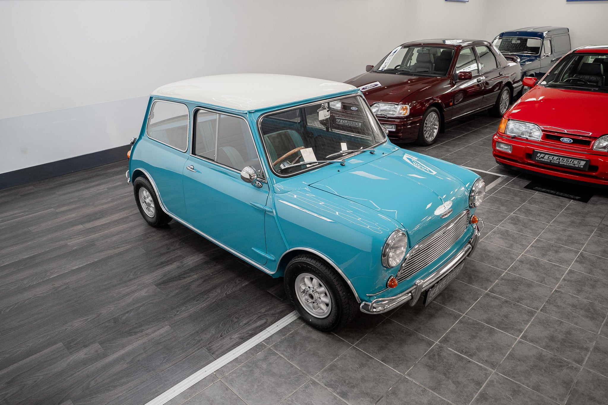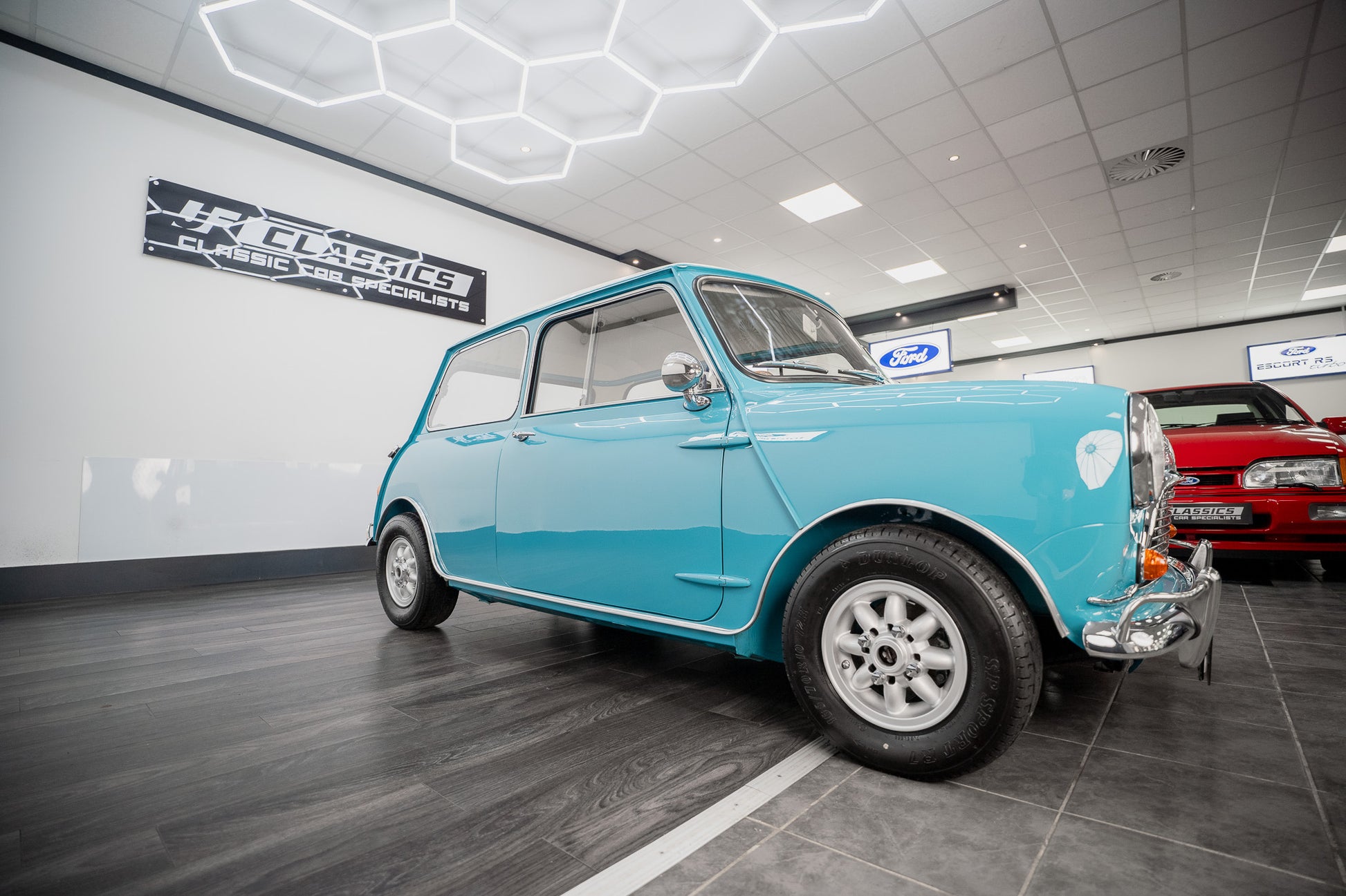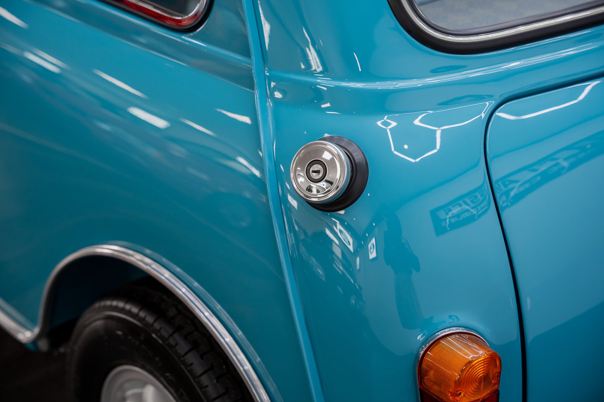 Expense was not an issue including ‘NOS’ Hydrolastic displacers fitted along with all consumables where required. Finished in Austin ‘Surf Blue’ body paint along with traditional ‘Old English’ white paintwork to the roof
