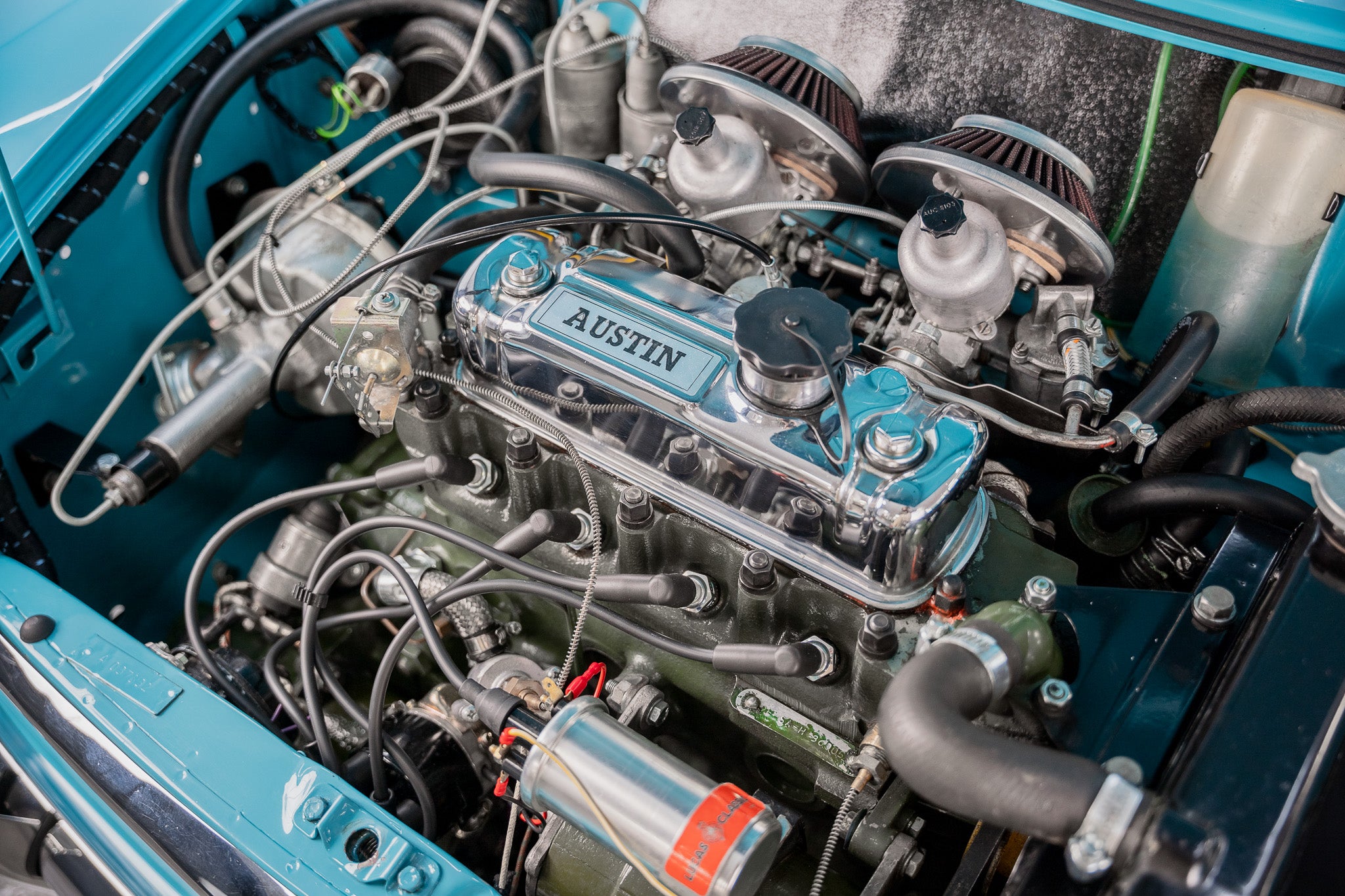 A Bill Richards engine burbles away under the bonnet housing twin carburettors
