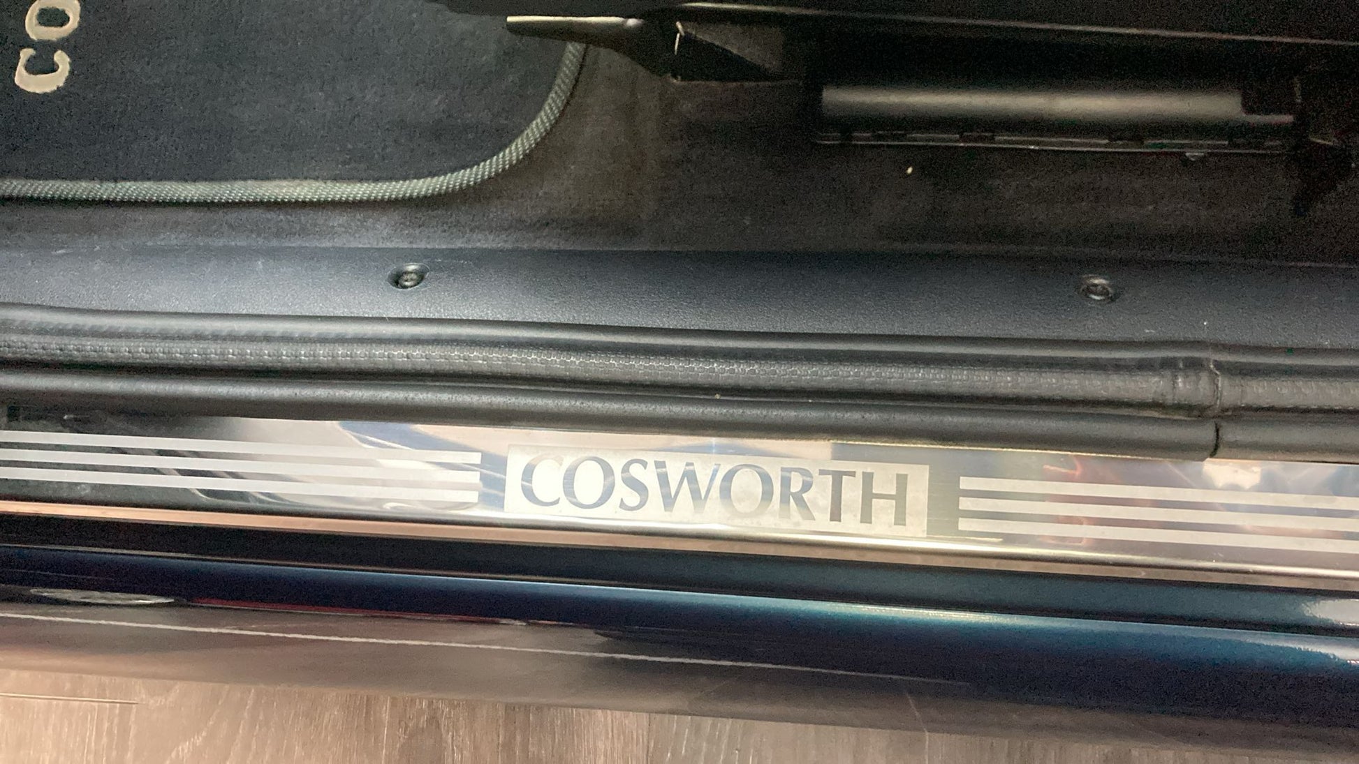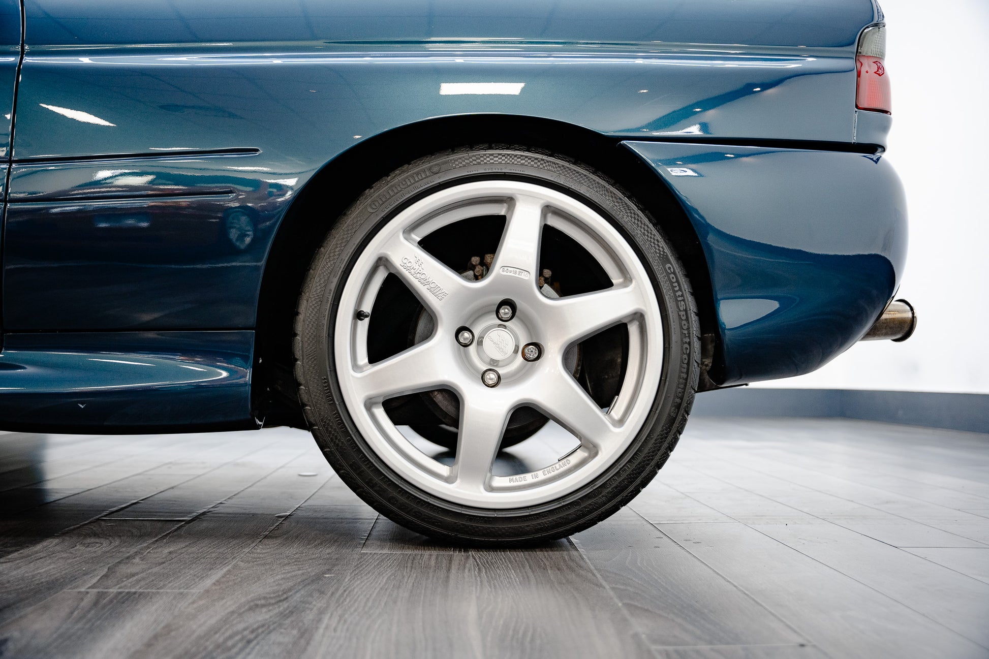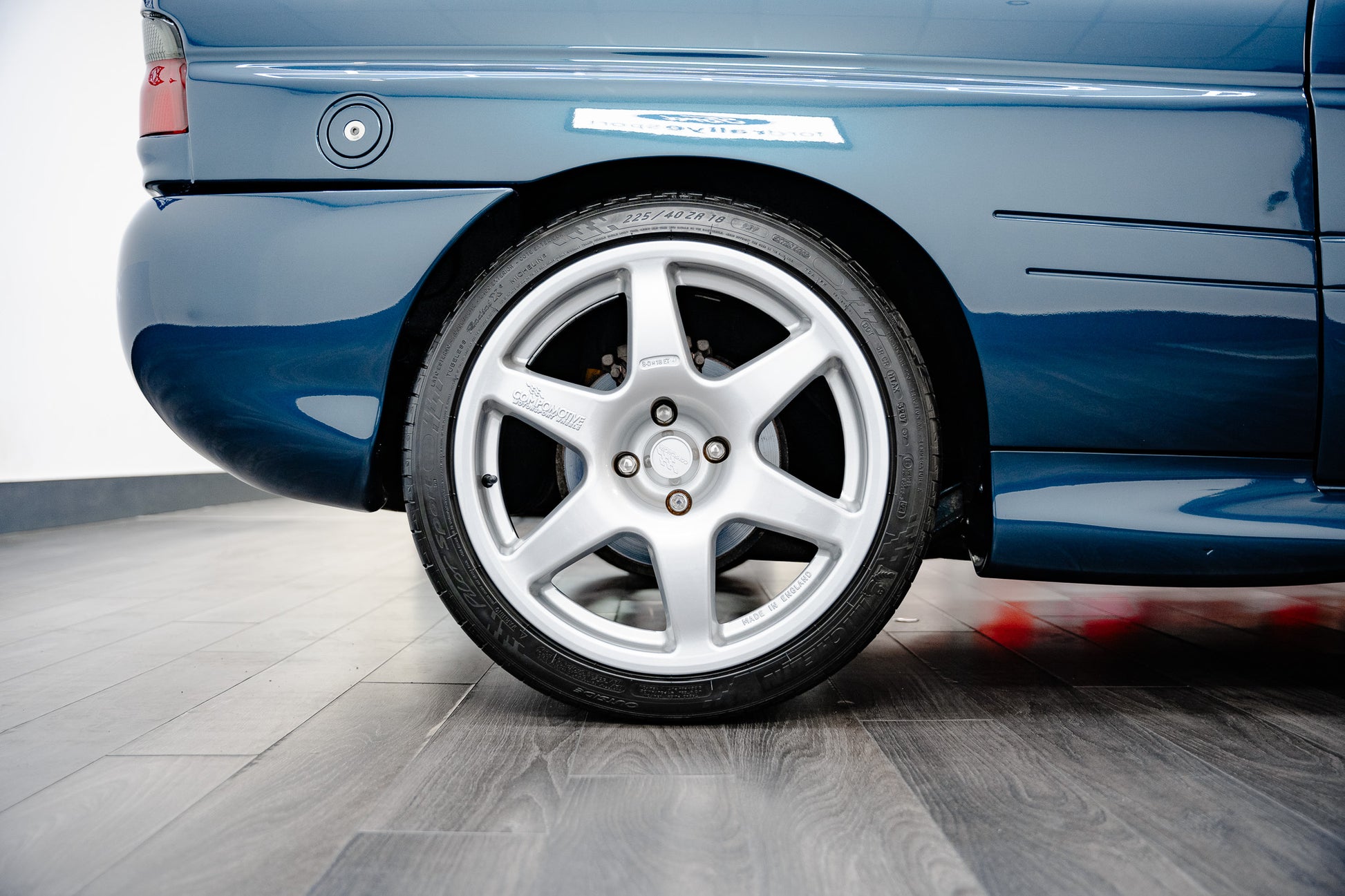 This Ford Escort Rs Cosworth sits on a stunning set of 18-inch silver 6-spoke Compomotive Motorsport alloy wheels each in immaculate condition with no curb marks or blemishes. These highly sought-after wheels not only complement the car’s aggressive stance but also underline its motorsport heritage.