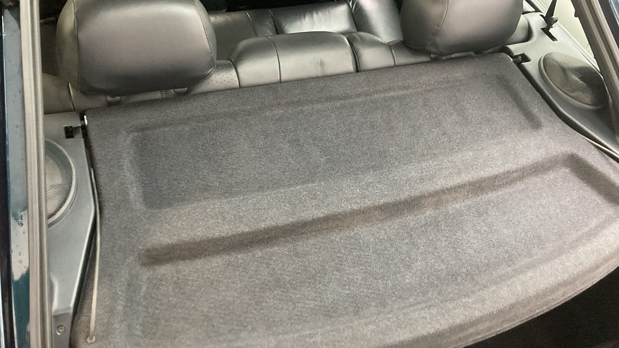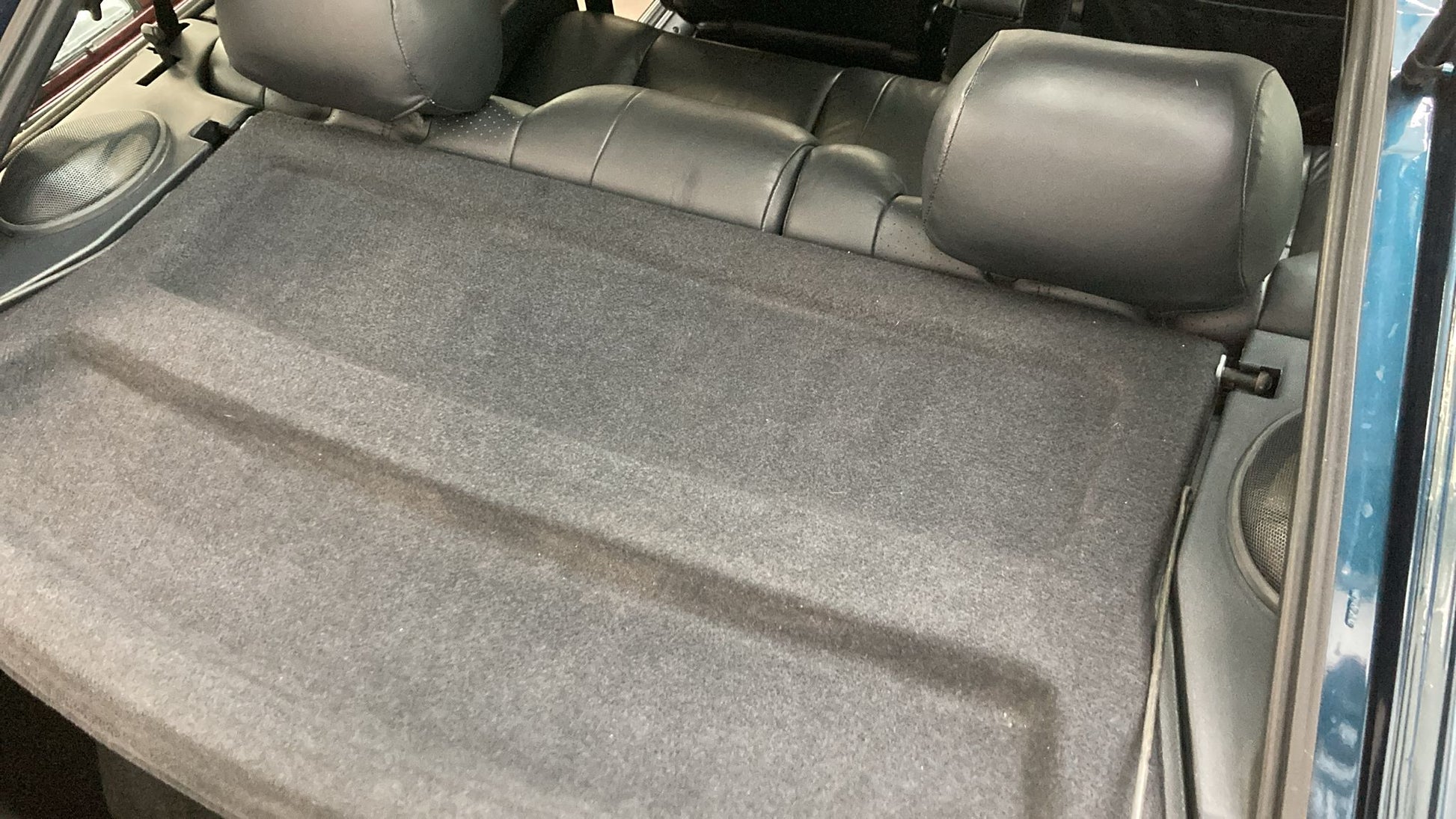 The door cards are presented in the very best of condition, combining factory black plastics with a slither of perforated leather trim, complemented by dark grey carpeted door pockets all free from warping, sagging, or marking. Beneath your feet, the dark grey carpets remain excellent, having been protected from new by overmats, and still accompanied by the original intact rear parcel shelf, a rare survivor on cars of this type.
