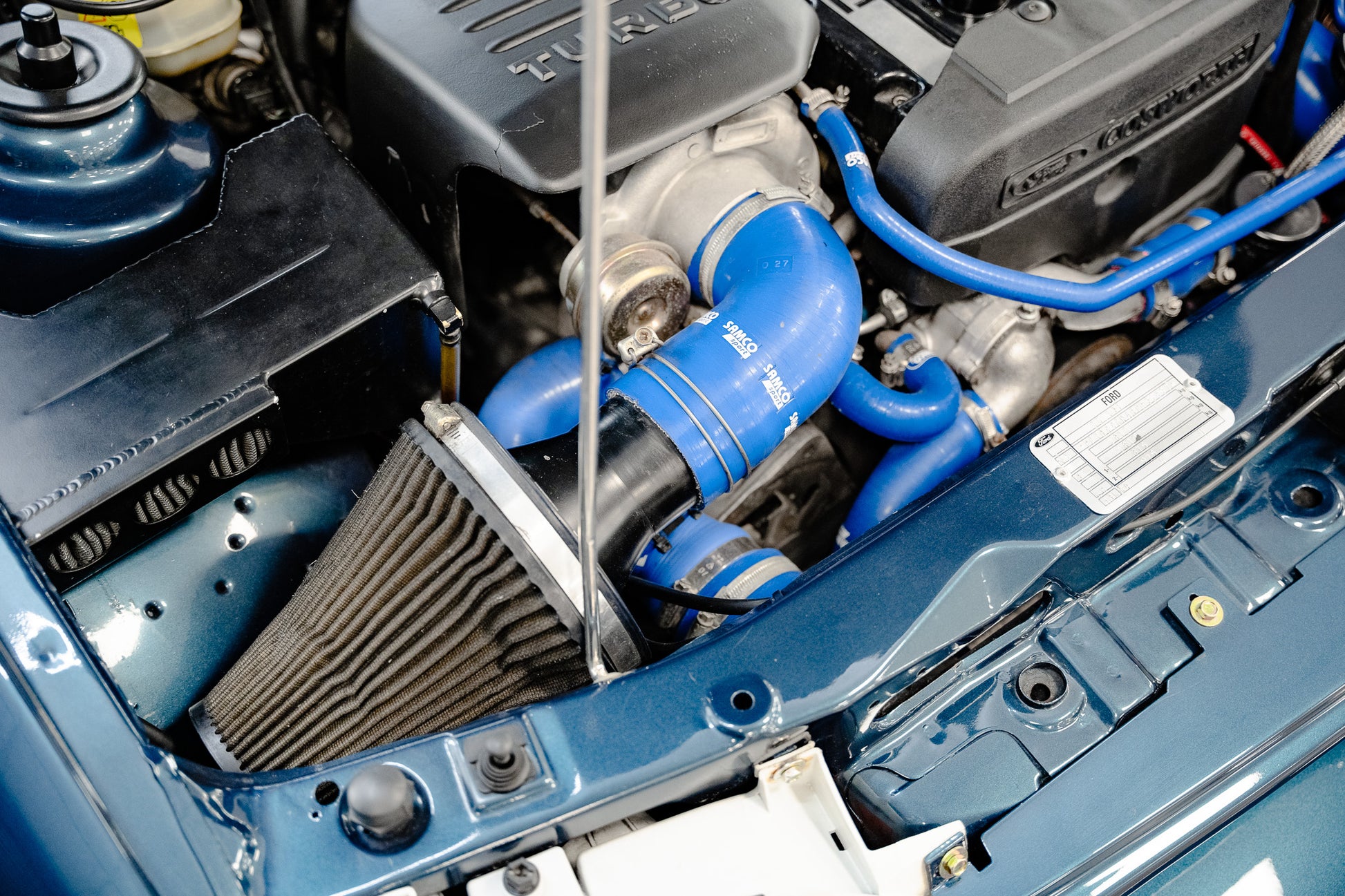 Larger Intercooler, Bailey Header Tanks, Dump Valve, Cone Air Filter, Swirl Pot and Samco Silicone hoses throughout
