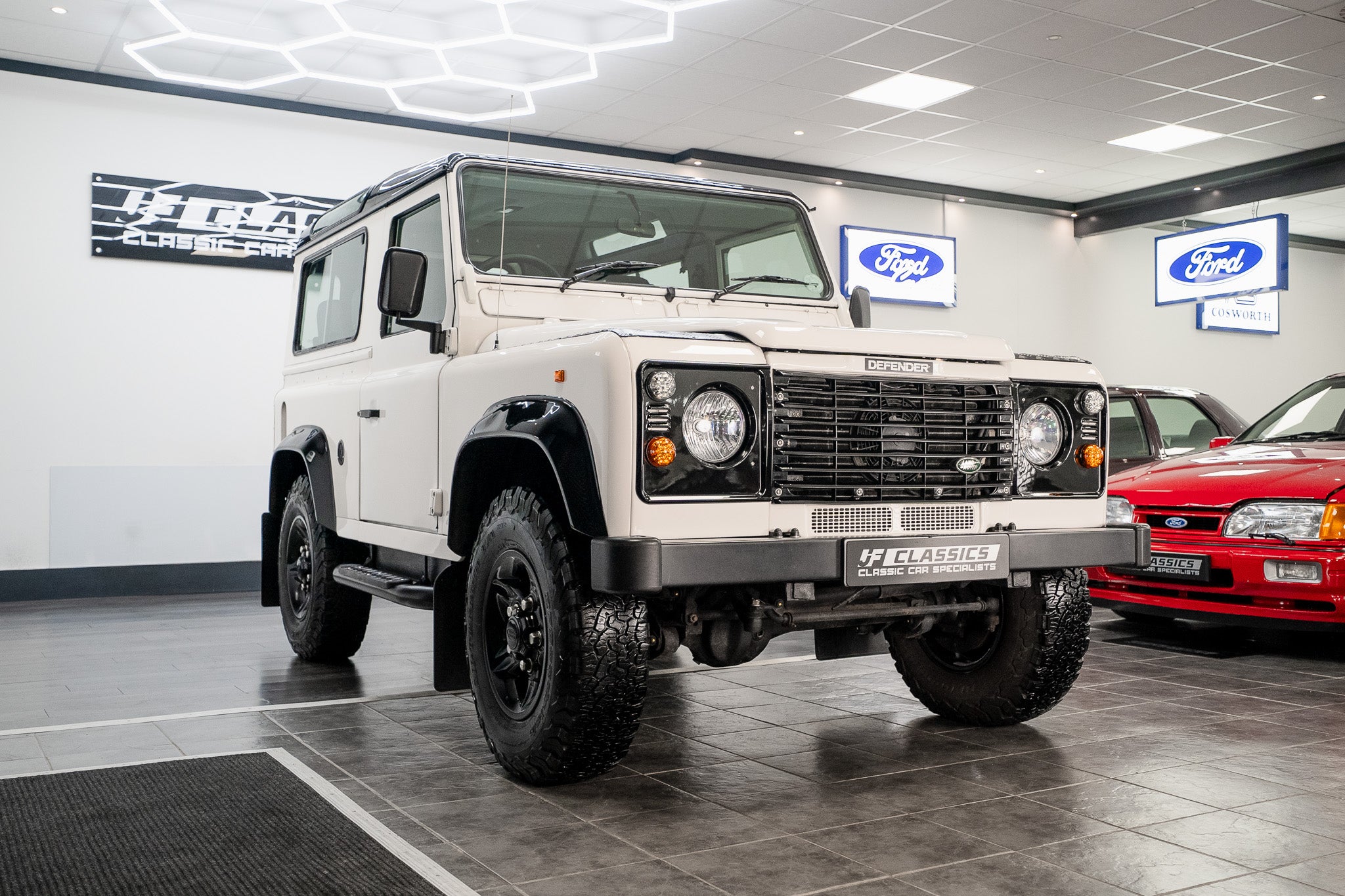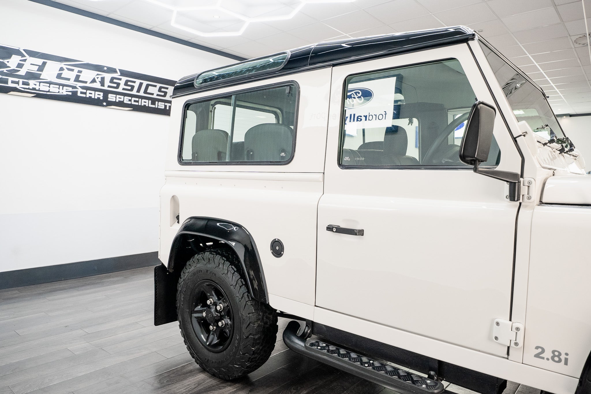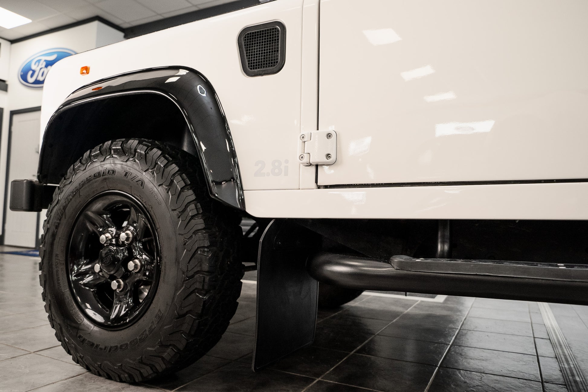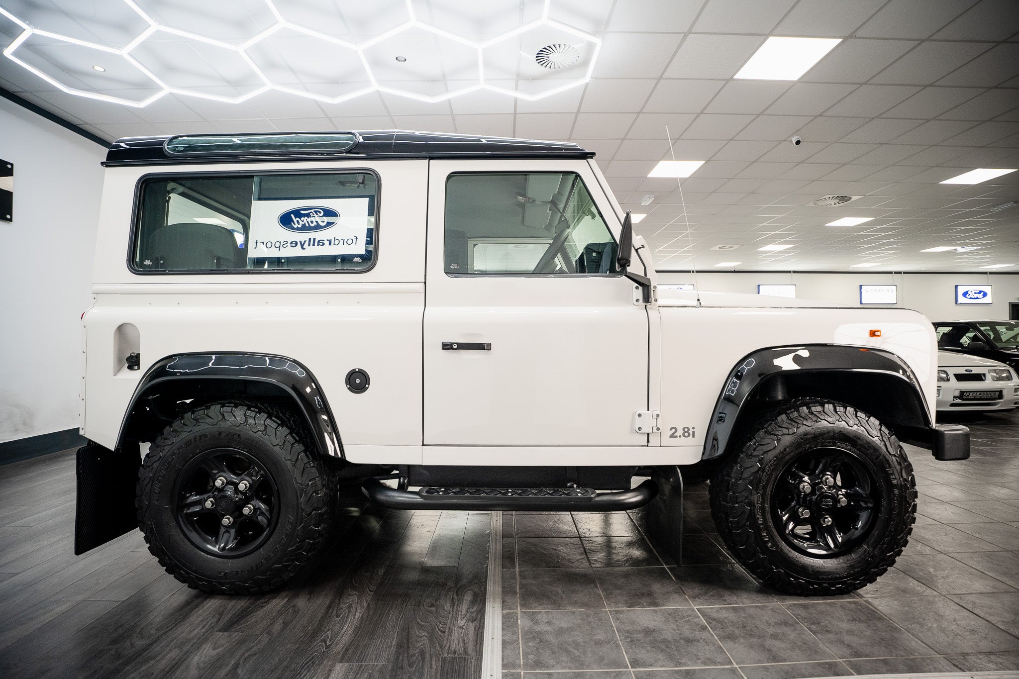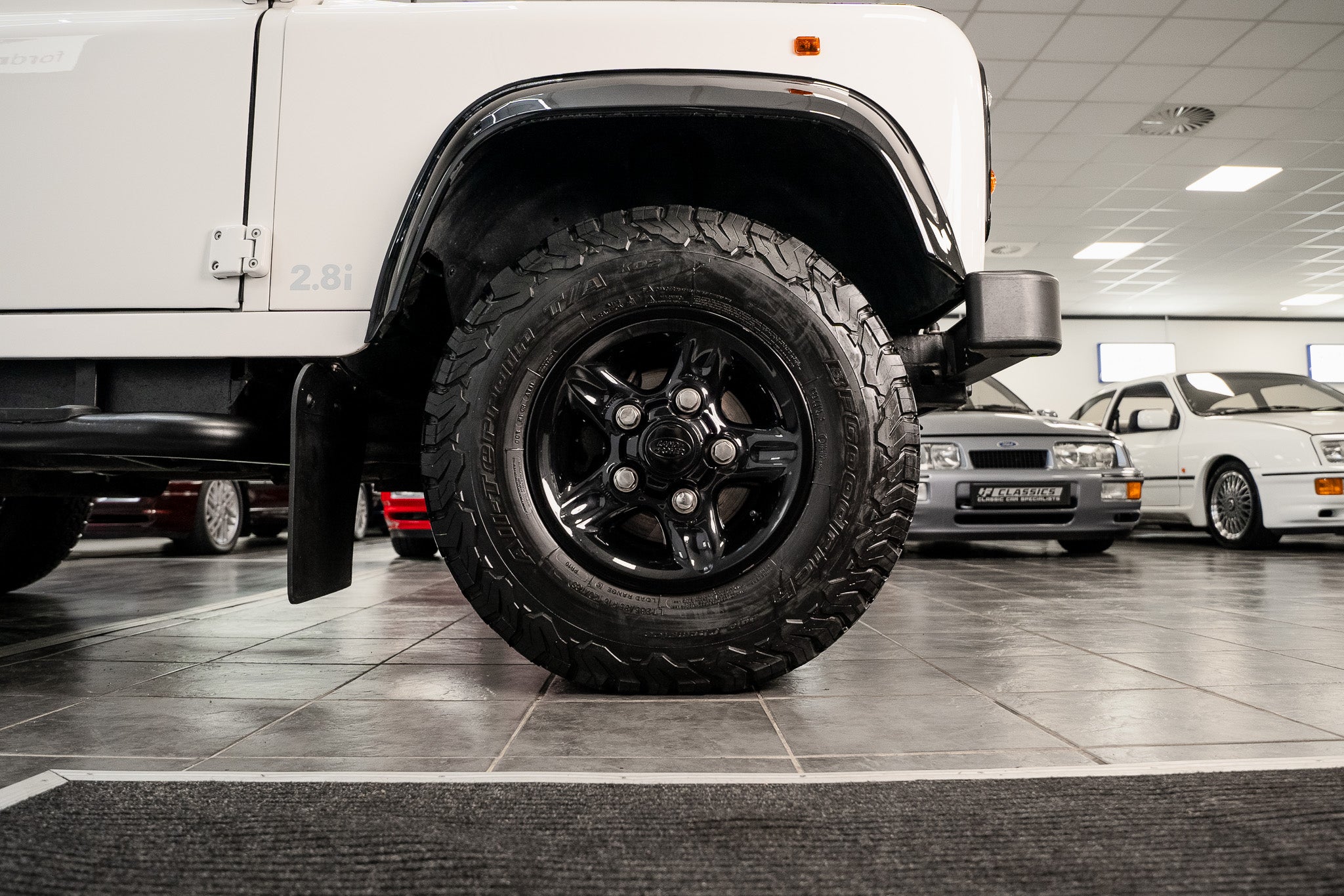 The 2.8i power plant produced significantly more power than contemporary Defender petrol units, giving the short-wheelbase 90 a lively, responsive character while retaining its rugged off-road credentials. Unique brackets, uprated driveline components, and specialist adaptation work were utilised to ensure full compatibility.