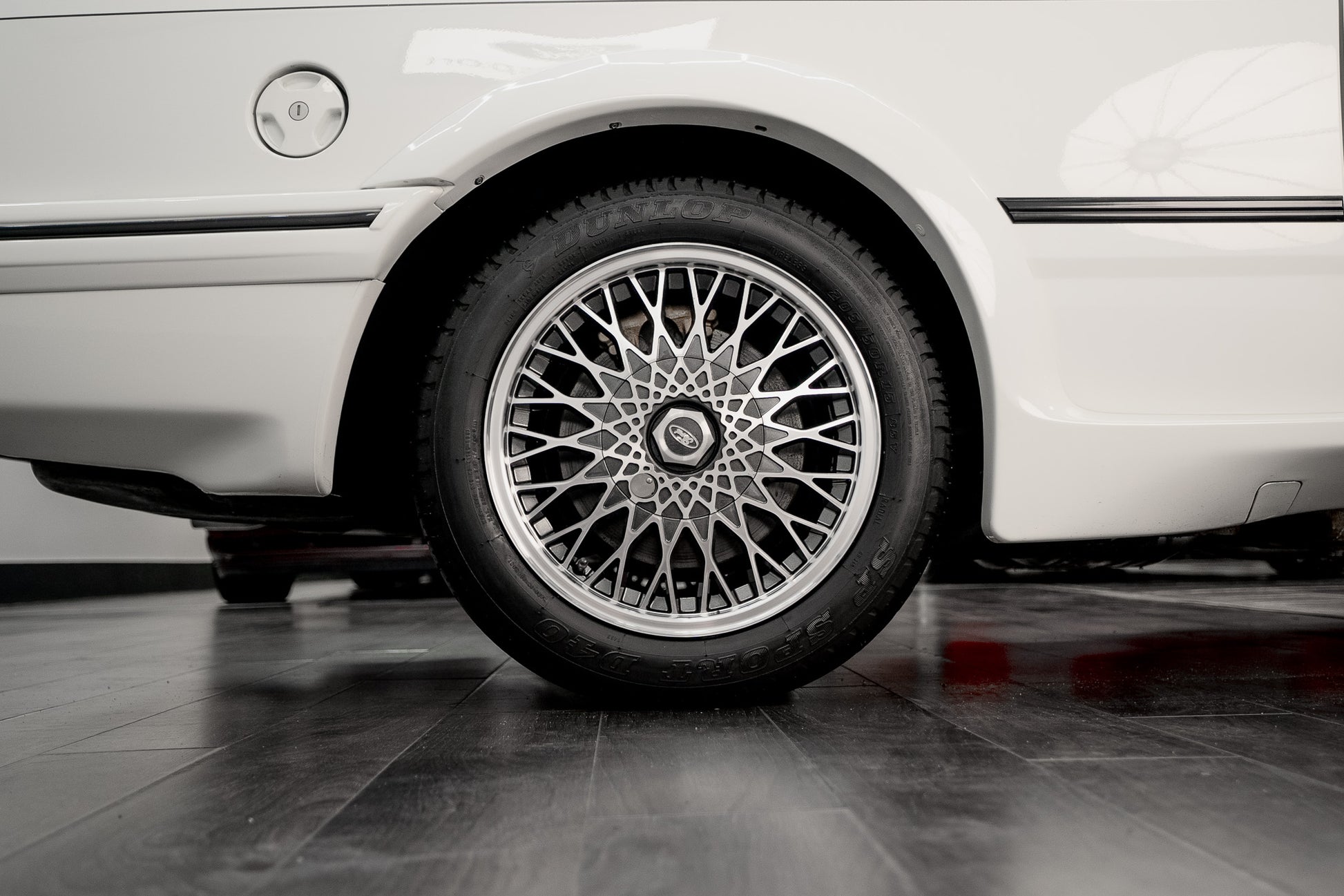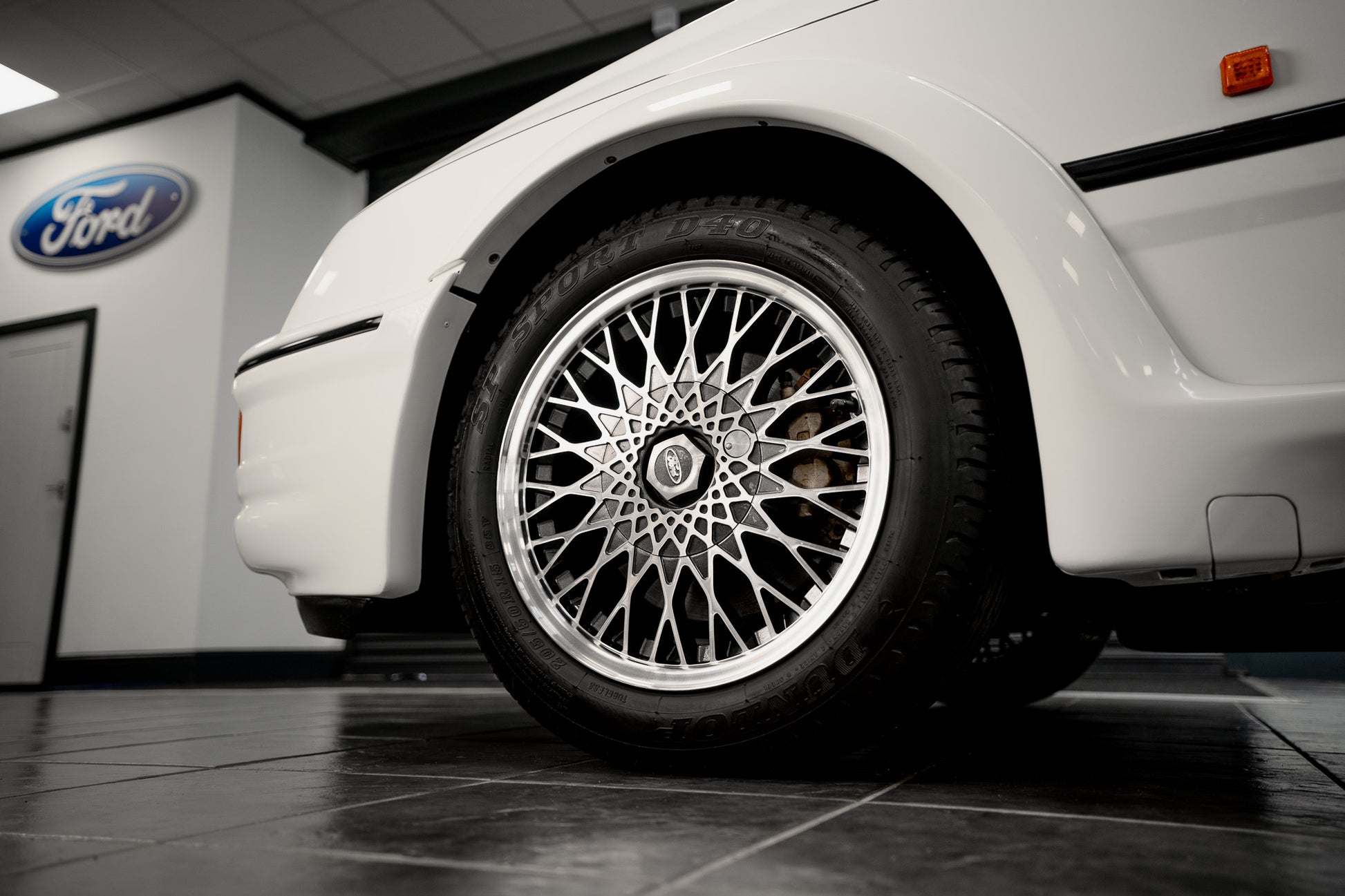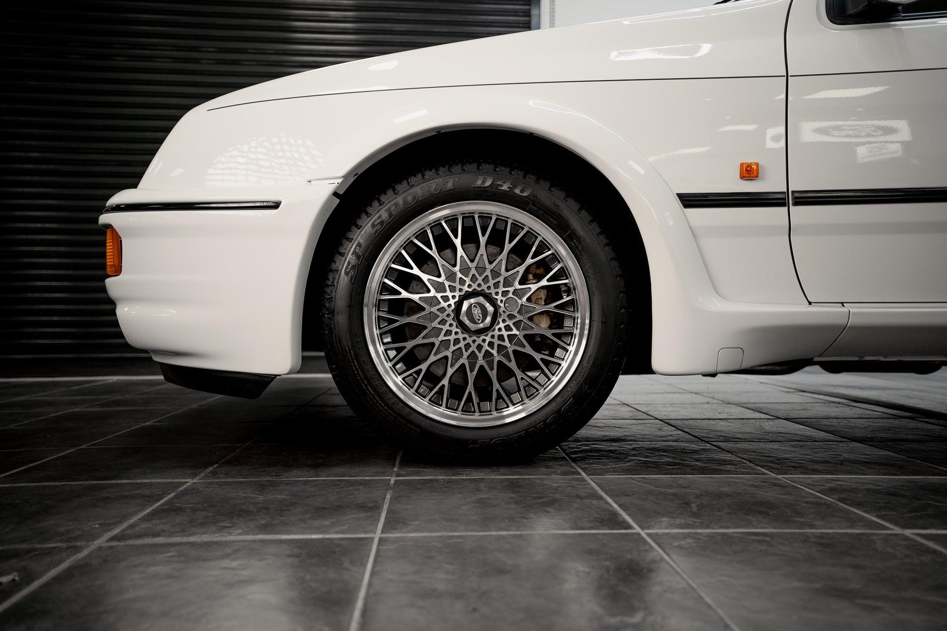 This Sierra RS Cosworth sits on its correct factory alloy wheels, all of which present in excellent, well-preserved condition and remain true and free from damage. The wheels are fitted with the original Dunlop D40 tyres, a highly desirable period detail that further reinforces the car’s exceptional originality and collector-grade status.