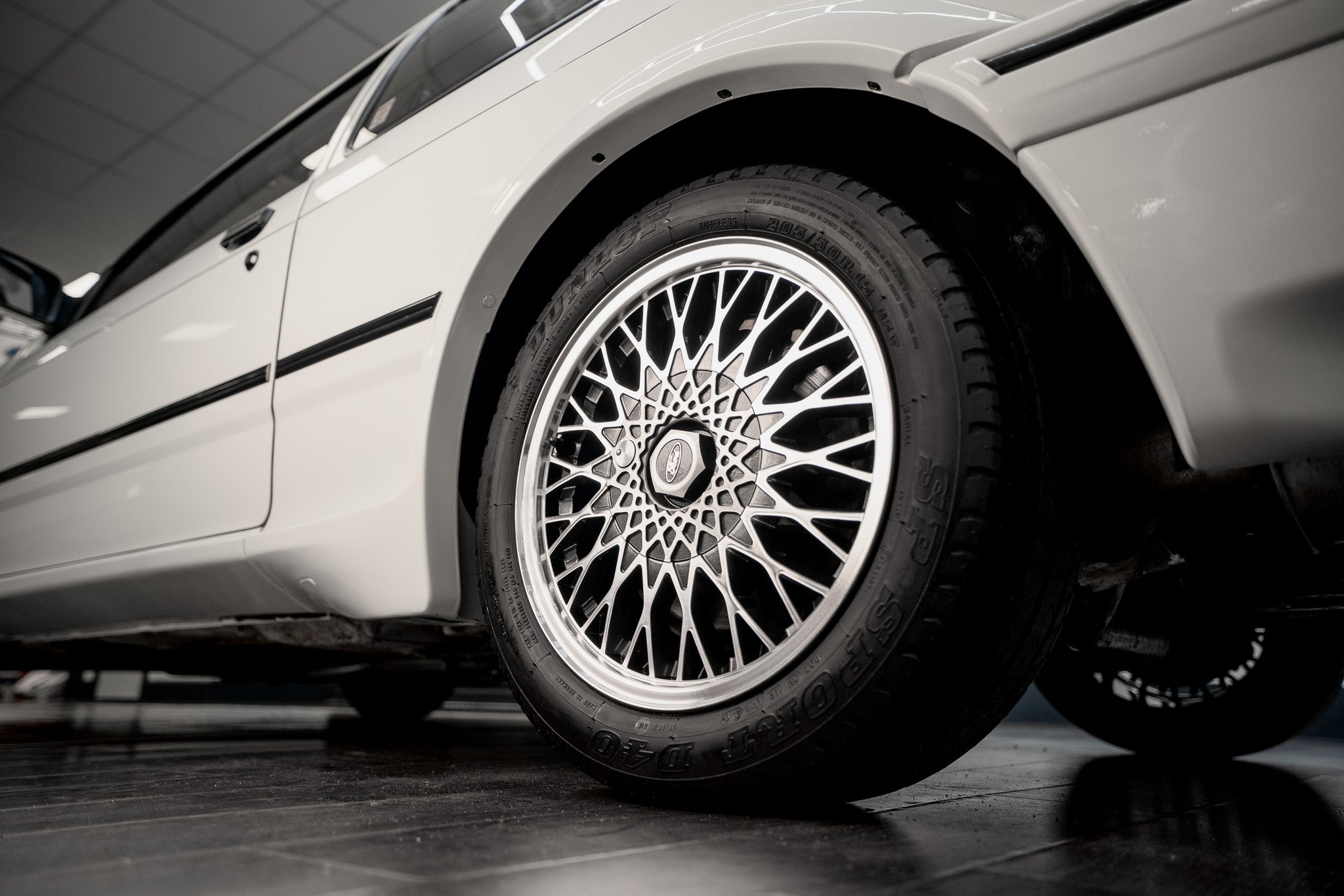 While the Dunlop D40s remain an important part of the car’s provenance and visual authenticity, it should be noted that, if the vehicle is to be used on public roads, we strongly recommend replacing the tyres with modern-day equivalents for safety and performance reasons. The original tyres should be retained for display and originality purposes.