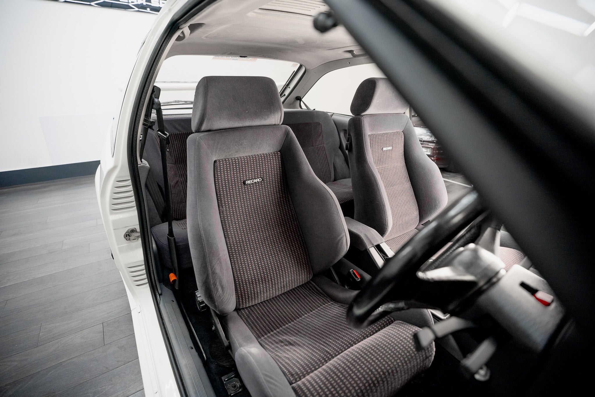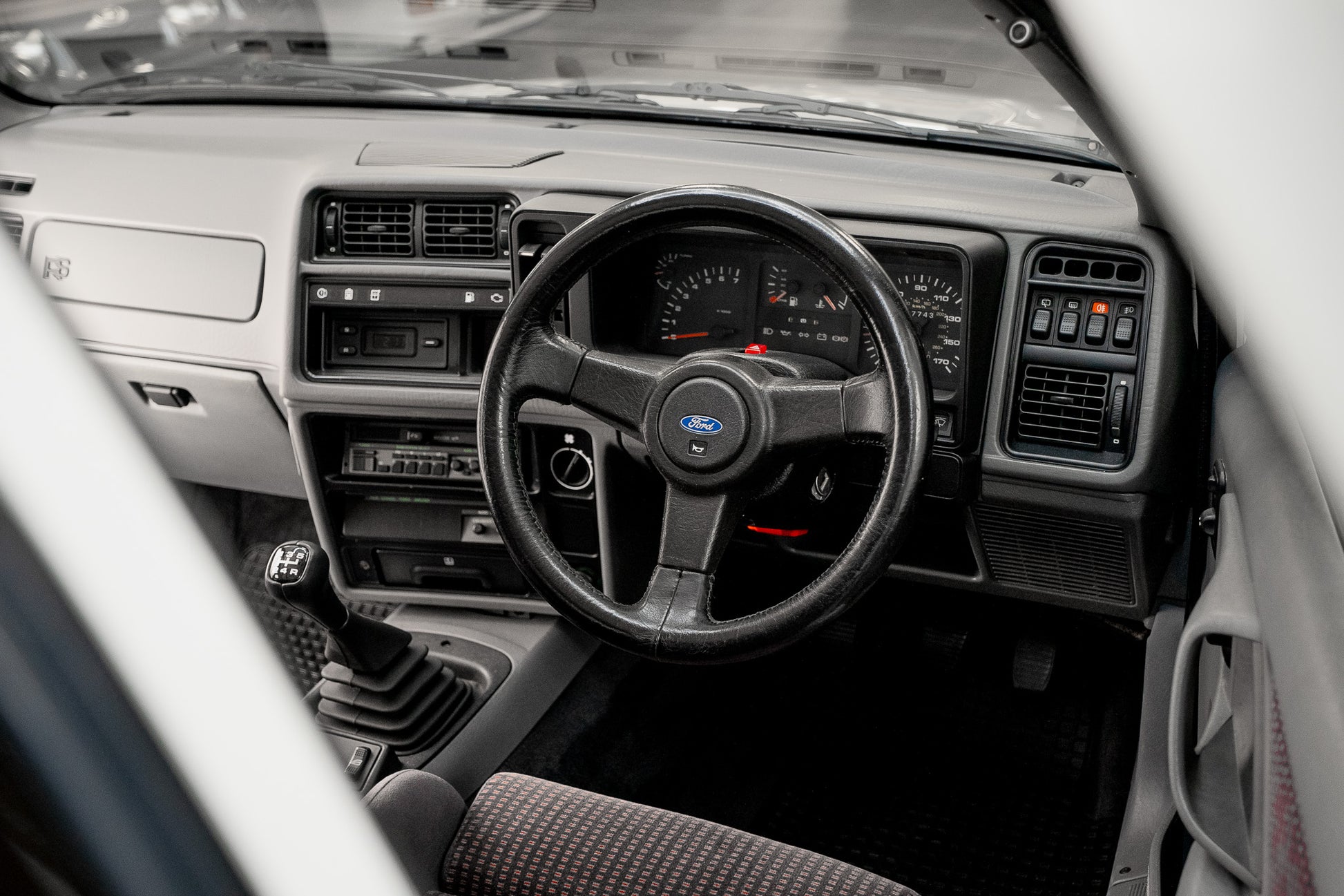 The interior of this Sierra RS Cosworth is a standout feature and perfectly reflects the car’s exceptionally low mileage and careful preservation. The cabin is finished with the correct Ford Roma Grey Recaro sports seats, which remain in excellent condition front and rear. The front seats retain firm, supportive bolsters that hold you securely in place, while the rear seating is equally well preserved, showing none of the wear typically associated with age.