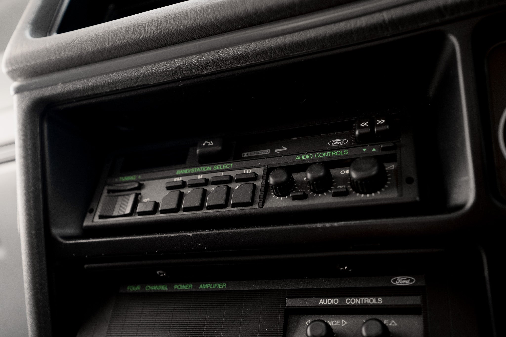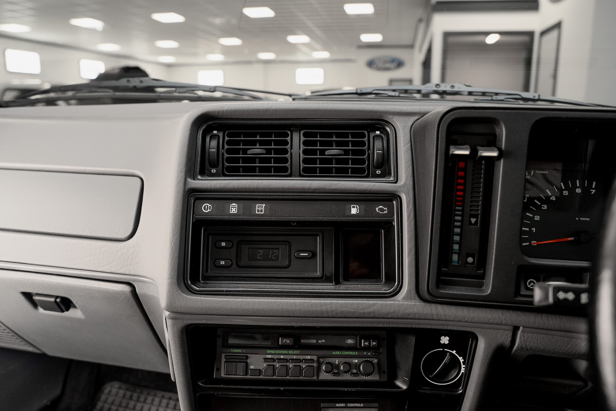 All controls and switchgear operate exactly as intended, including the original Ford audio system and separate amplifier. The LCD warning display for bulb failure and open doors functions correctly, with all warning elements illuminating and extinguishing as designed.