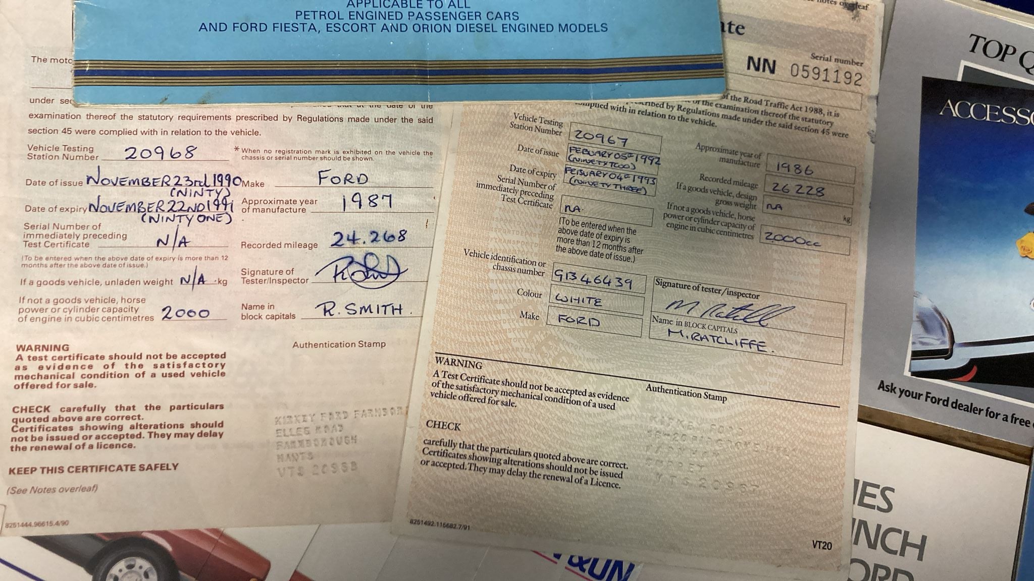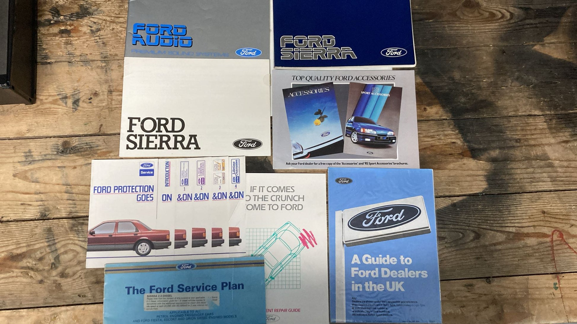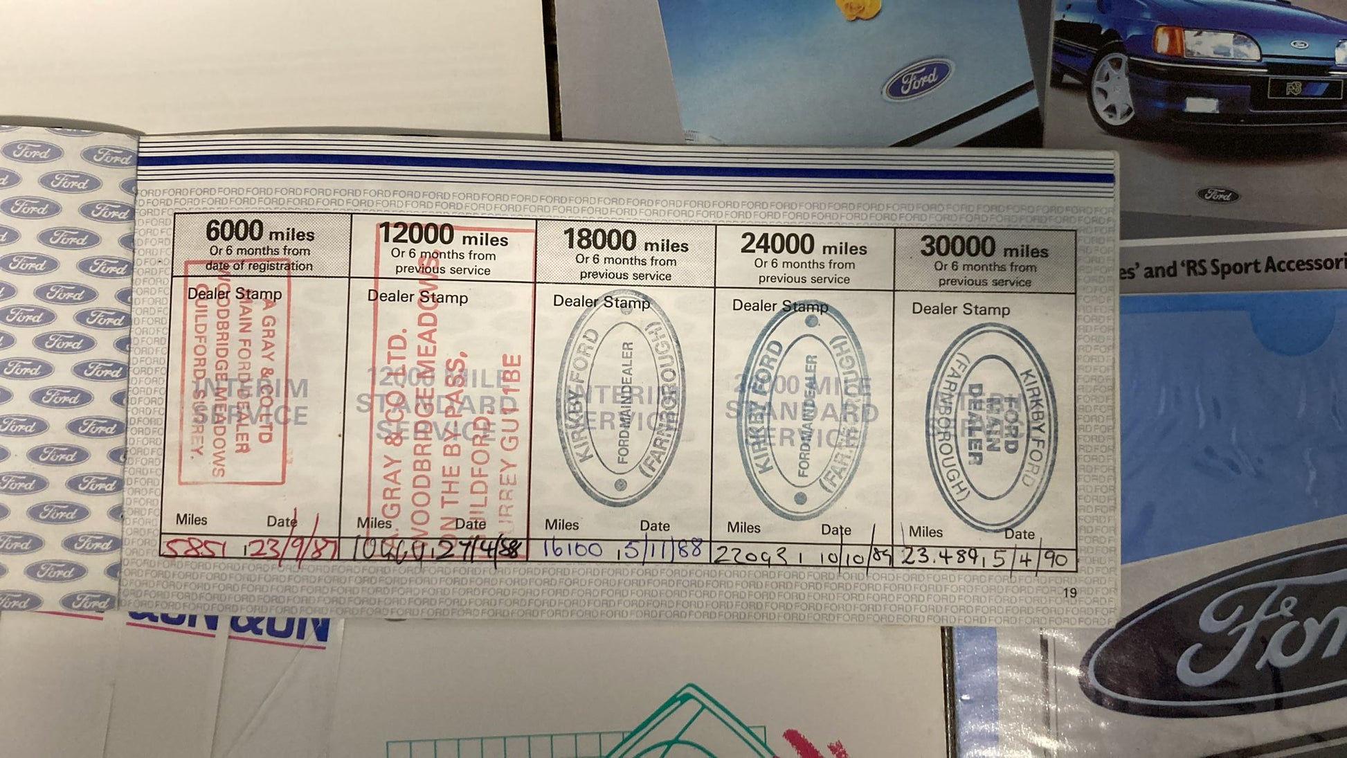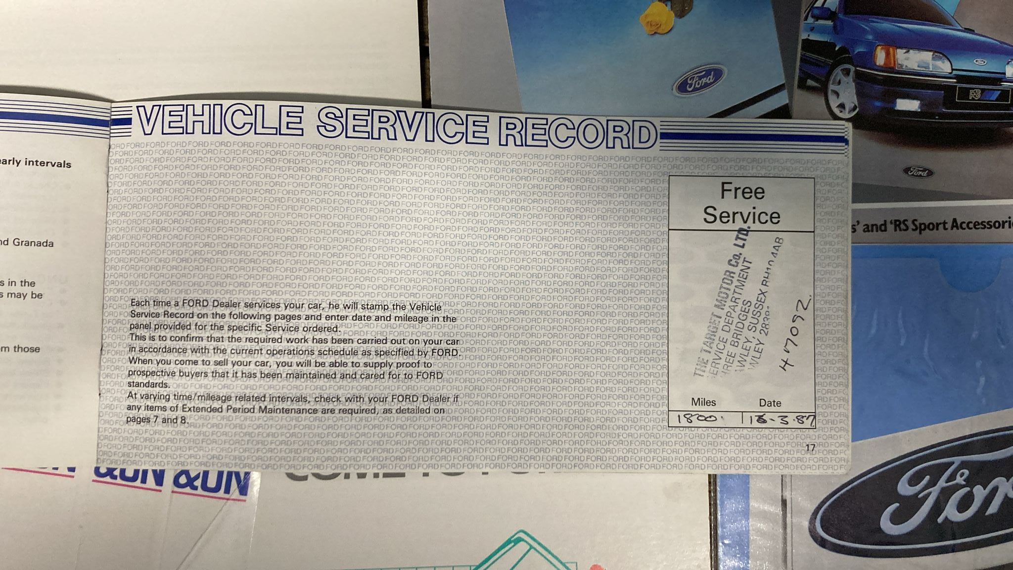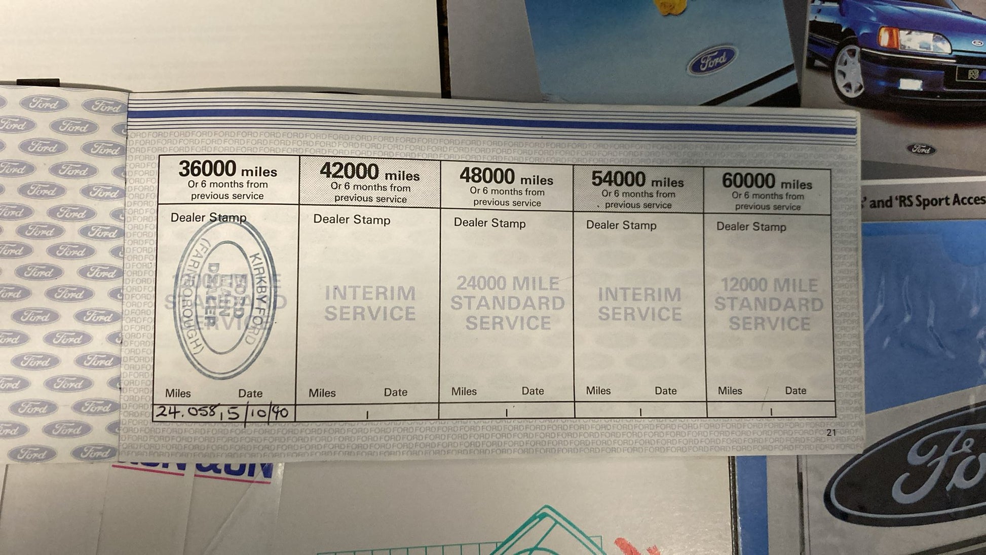Complete with original dealer pack containing Owners booklet, Accident repair guide, Audio manual, Accessories brochure, Ford dealer directory and the all important original service booklet with the following entries: