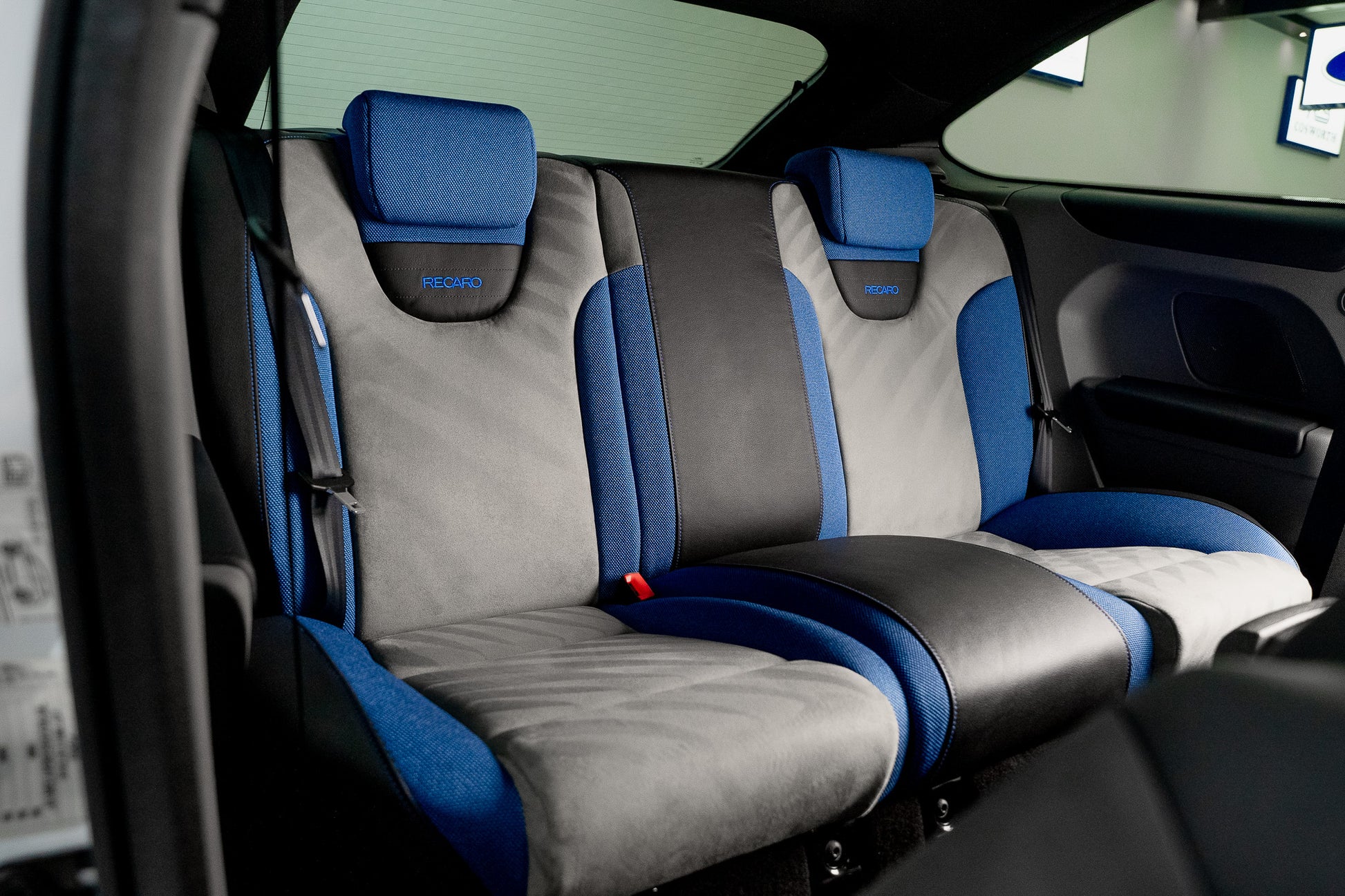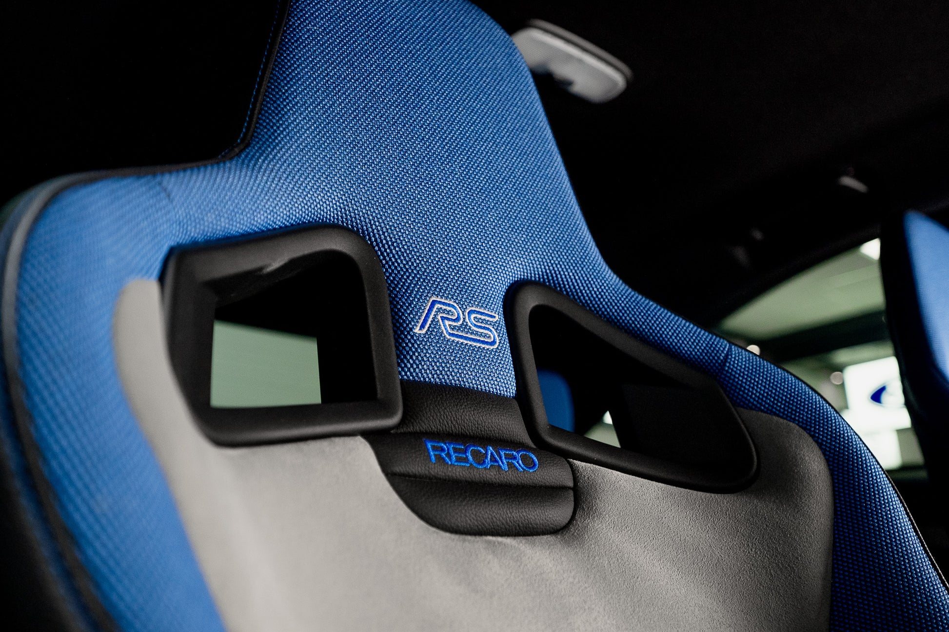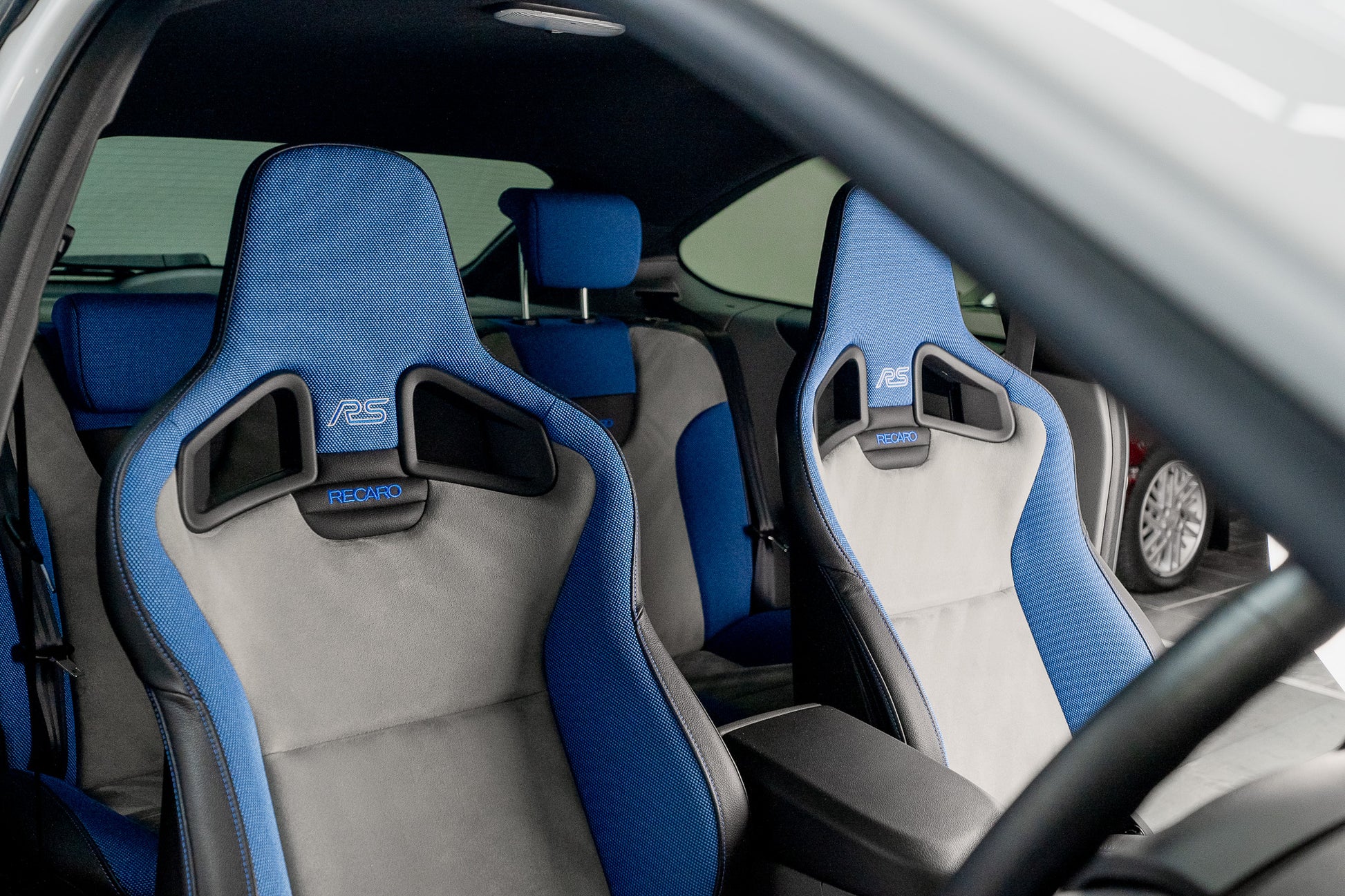 You are first greeted by the extraordinary Recaro Race Bucket seats, their deep bolsters finished in black and blue with immaculate grey Alcantara centre sections. The iconic Recaro and RS emblems, detailed with blue stitching, remain bright and unworn. Both front seats present virtually as new, with no softness to the bolsters, no sheen to the Alcantara and not even the faintest suggestion of use. The rear bucket-style seats match the fronts in design and condition tight, clean, and showroom fresh.