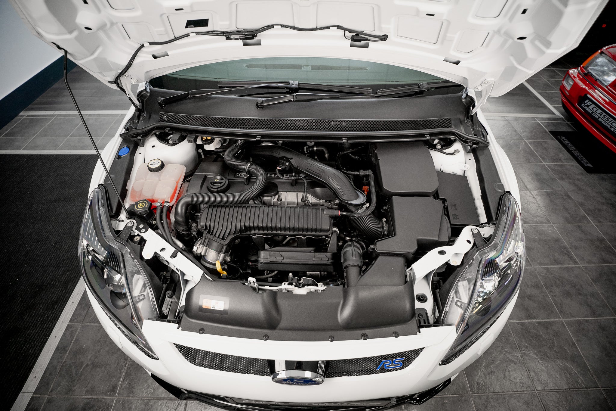 Lifting the bonnet reveals an engine bay that is nothing short of exemplary factory-correct, beautifully preserved, and remarkably clean throughout. This is exactly how a true low-mileage collector-grade Focus RS should present.