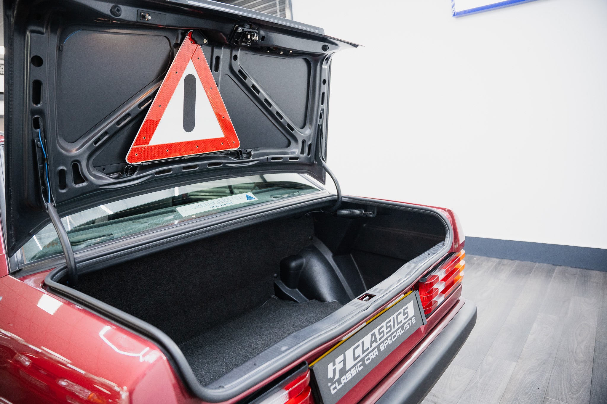 In the boot, the car is complete with its matching alloy spare wheel, reinforcing the originality of the package. Accompanying this is the original, unused jack and factory toolkit, neatly stowed and further testament to the vehicle’s careful ownership and low mileage.