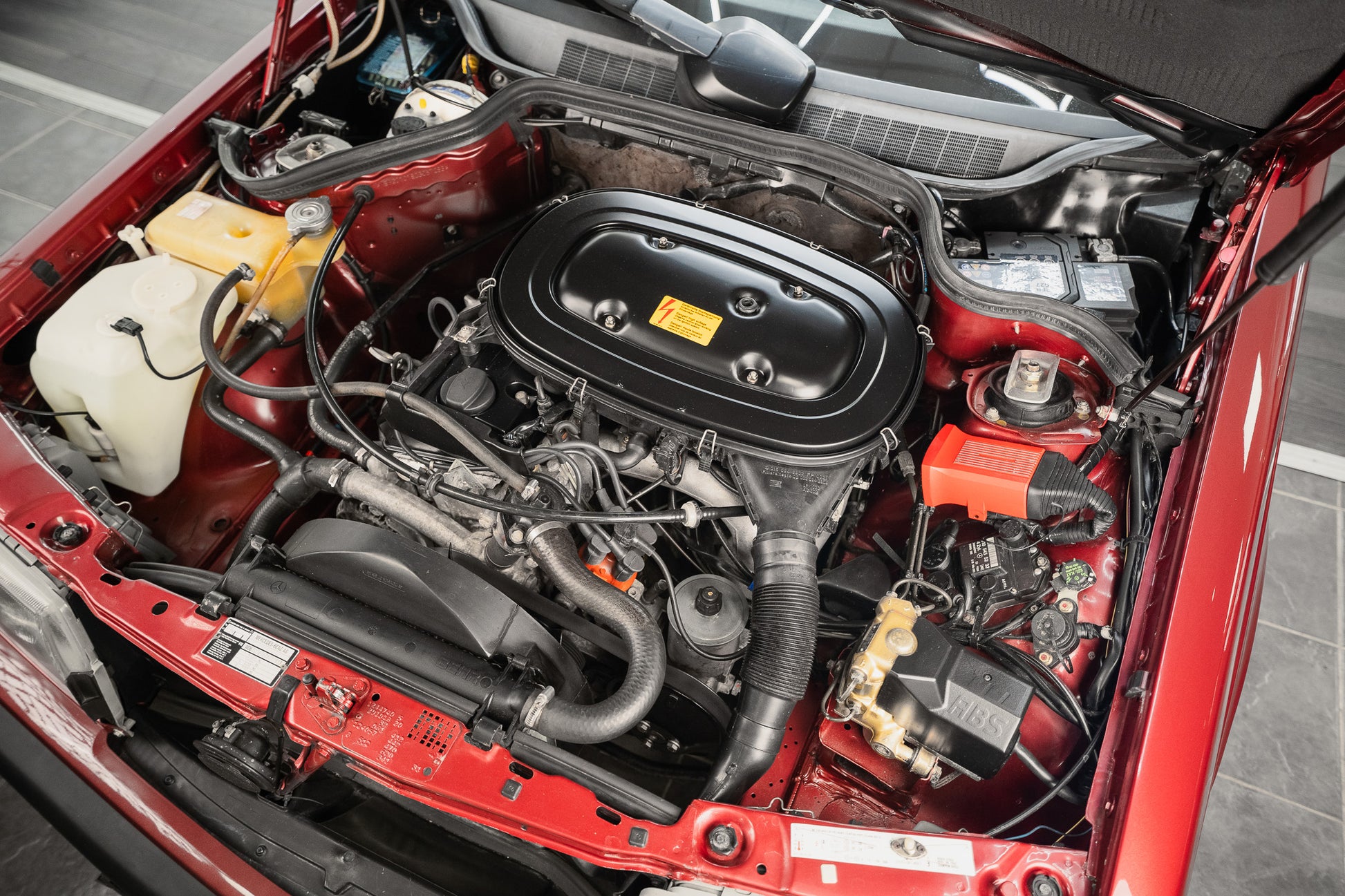 Overall, the exterior of this Almandine Red 190E reflects the hallmark qualities of early-1990s Mercedes engineering precision, durability, and understated sophistication presented here in a condition befitting its remarkably low mileage and careful ownership