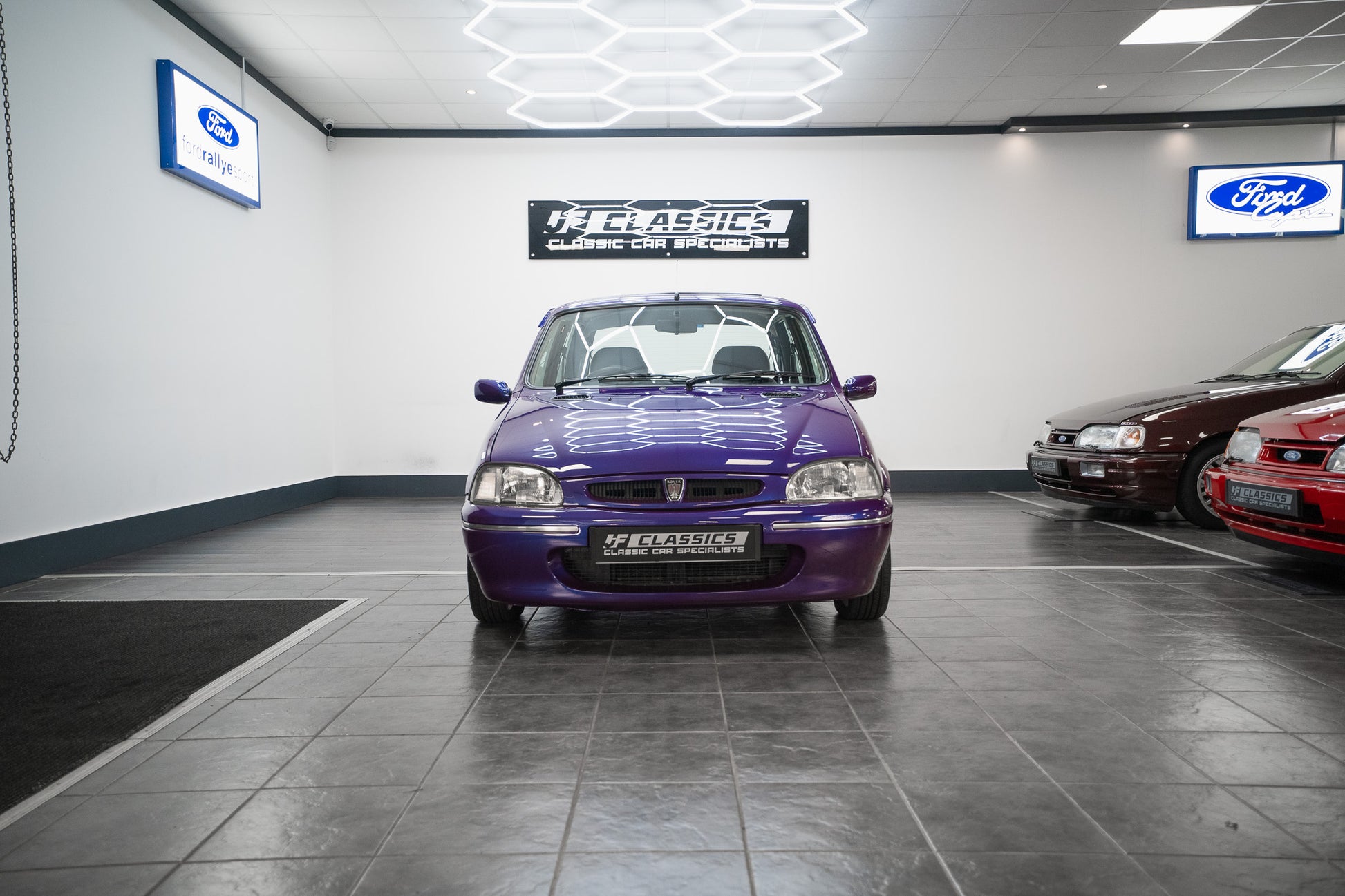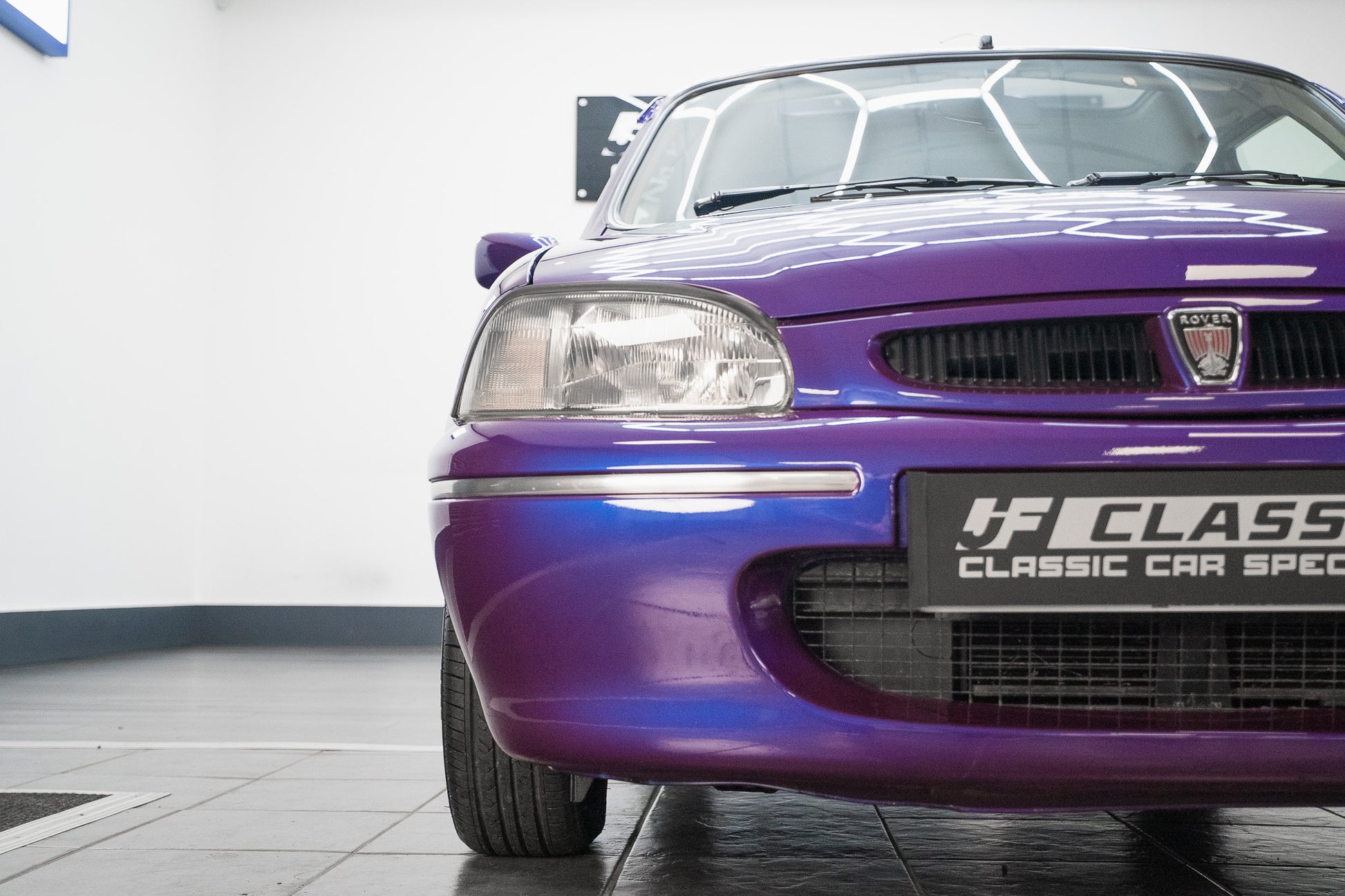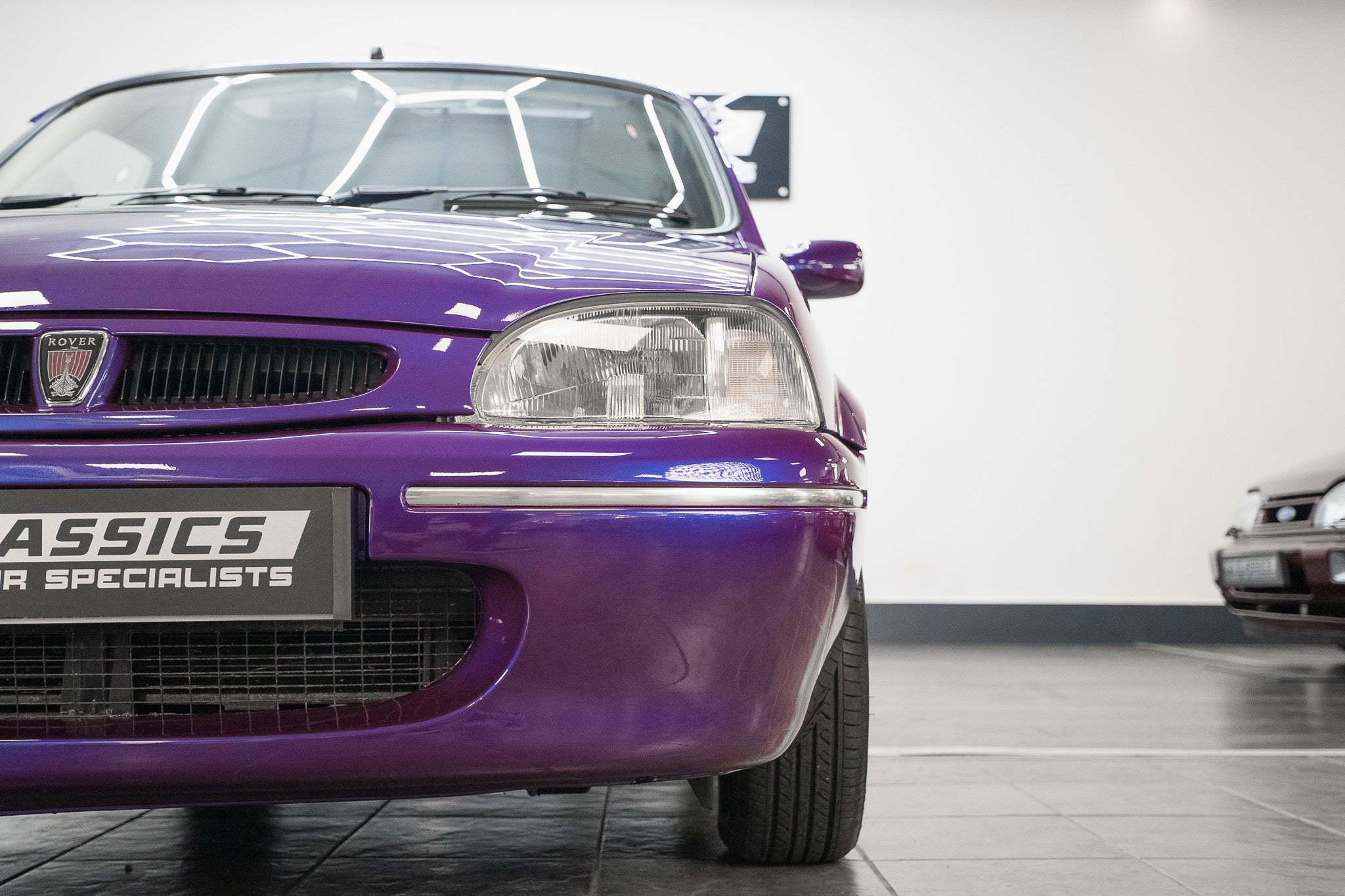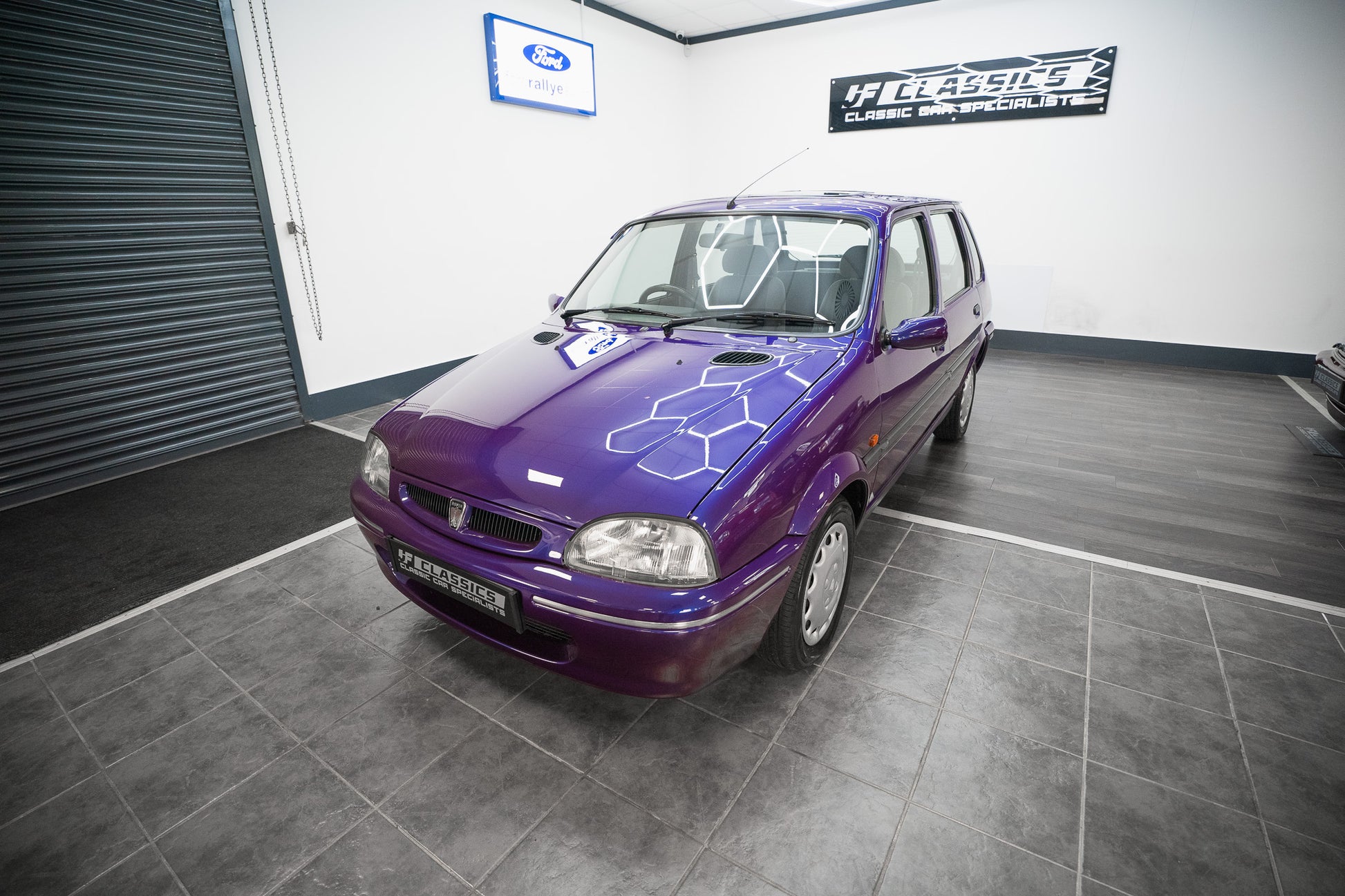 The exterior design is a wonderful reminder of mid-’90s British styling compact, boxy, and full of character. The Amaranth Metallic paintwork is nothing short of breathtaking, boasting a deep, lustrous gloss across all panels, exactly as it left the factory. Panel gaps are pin-sharp and consistent, and every surface retains a mirror-like shine that exudes careful ownership and indoor storage throughout its life.