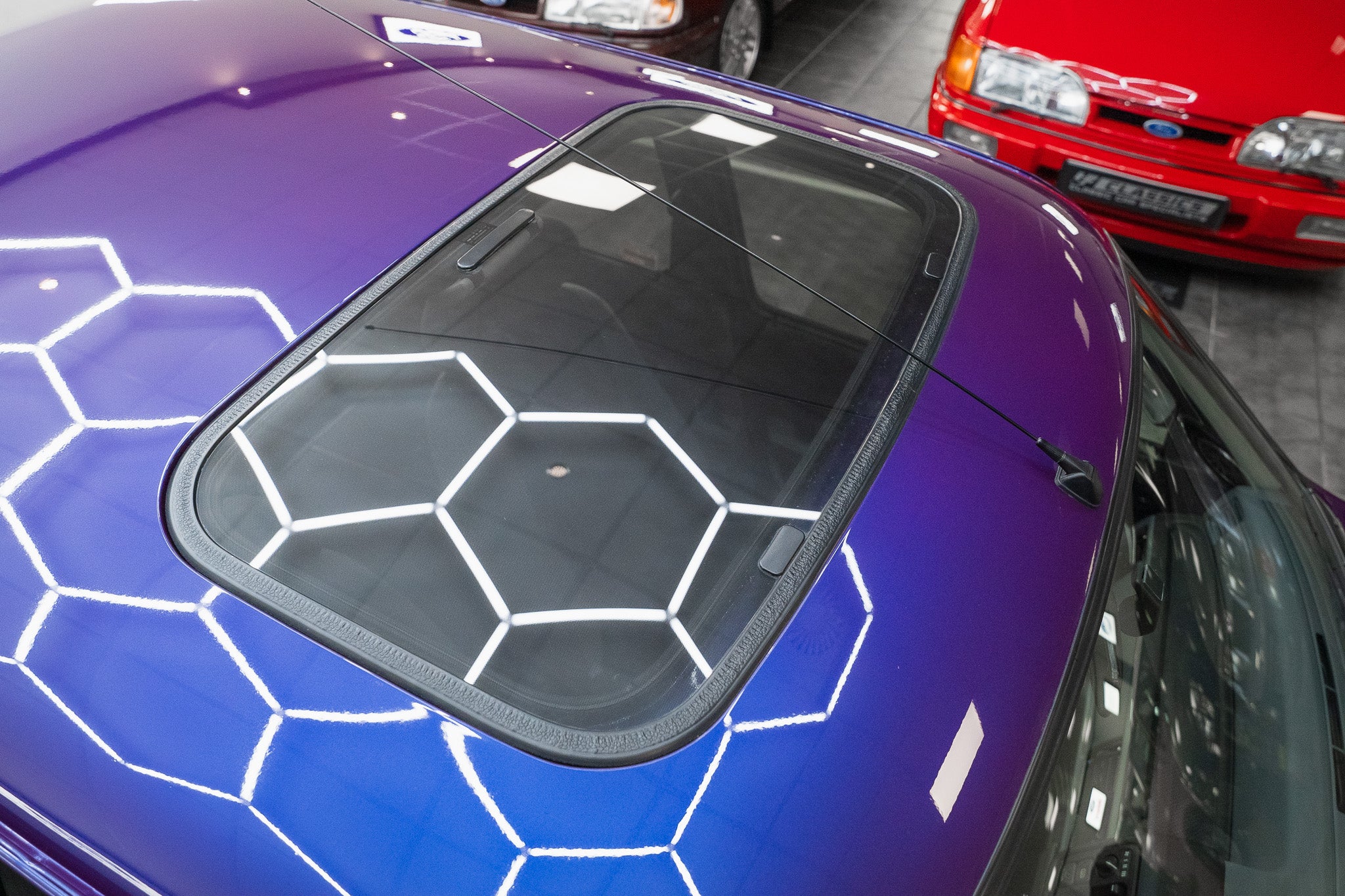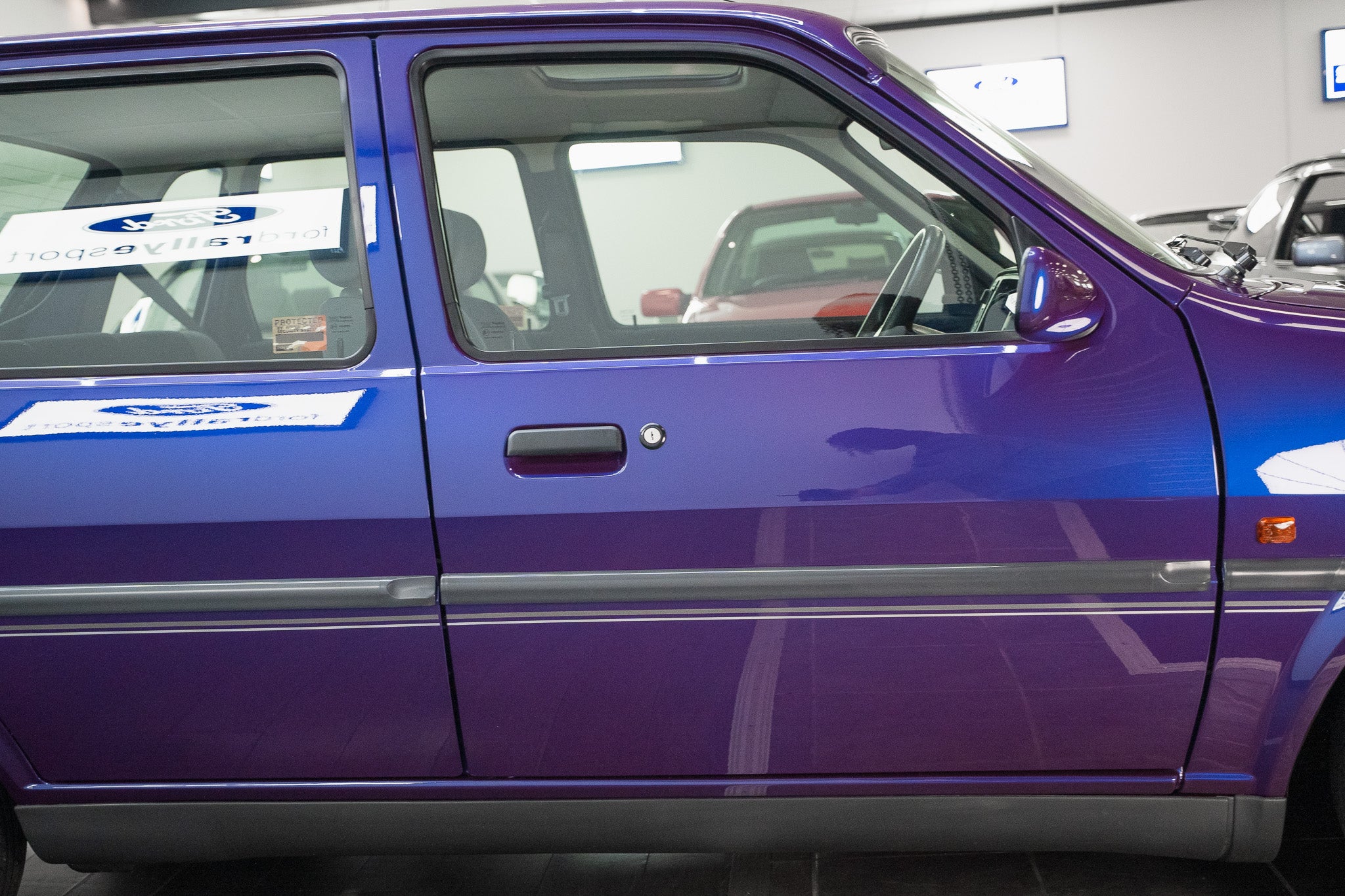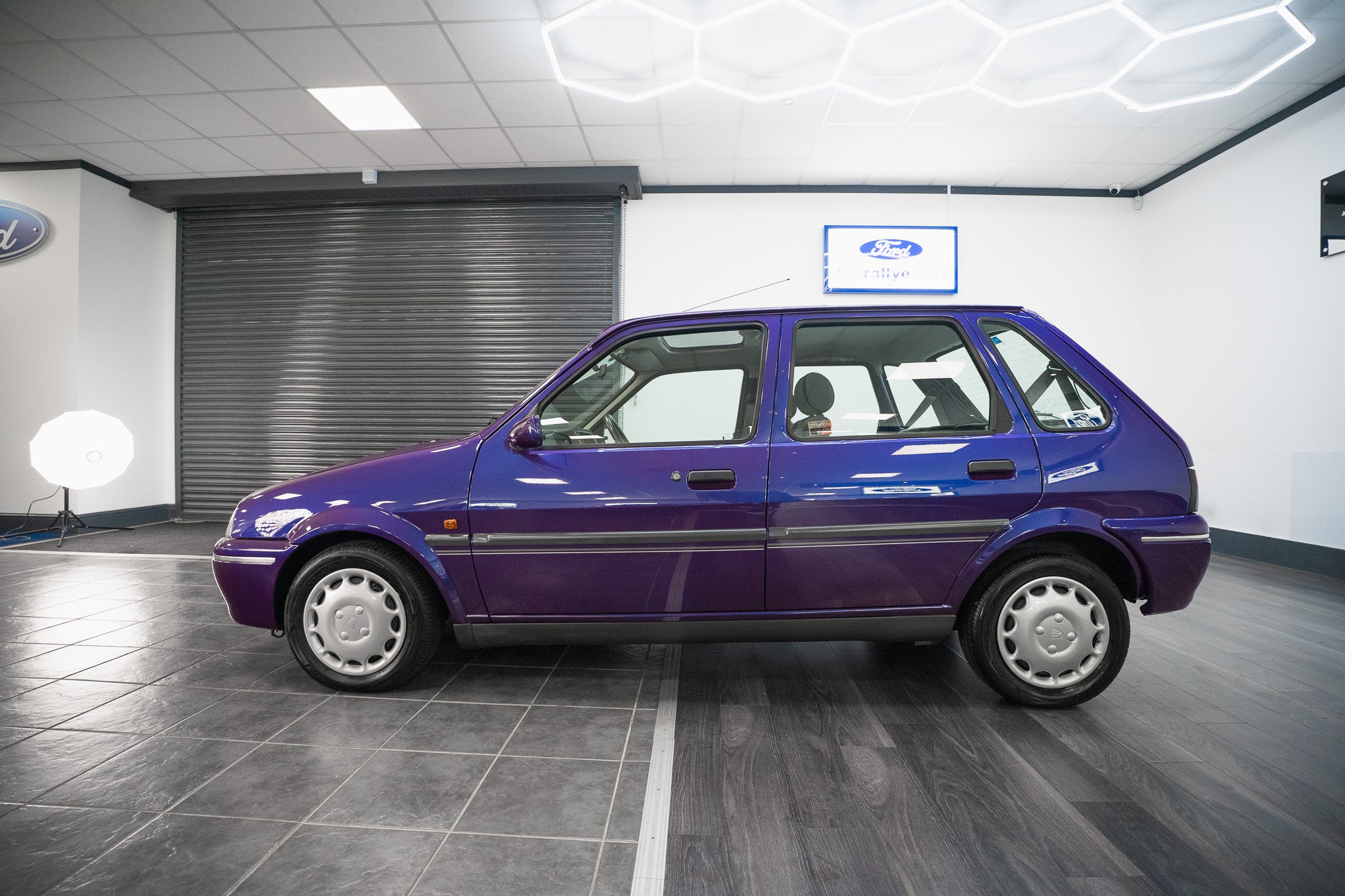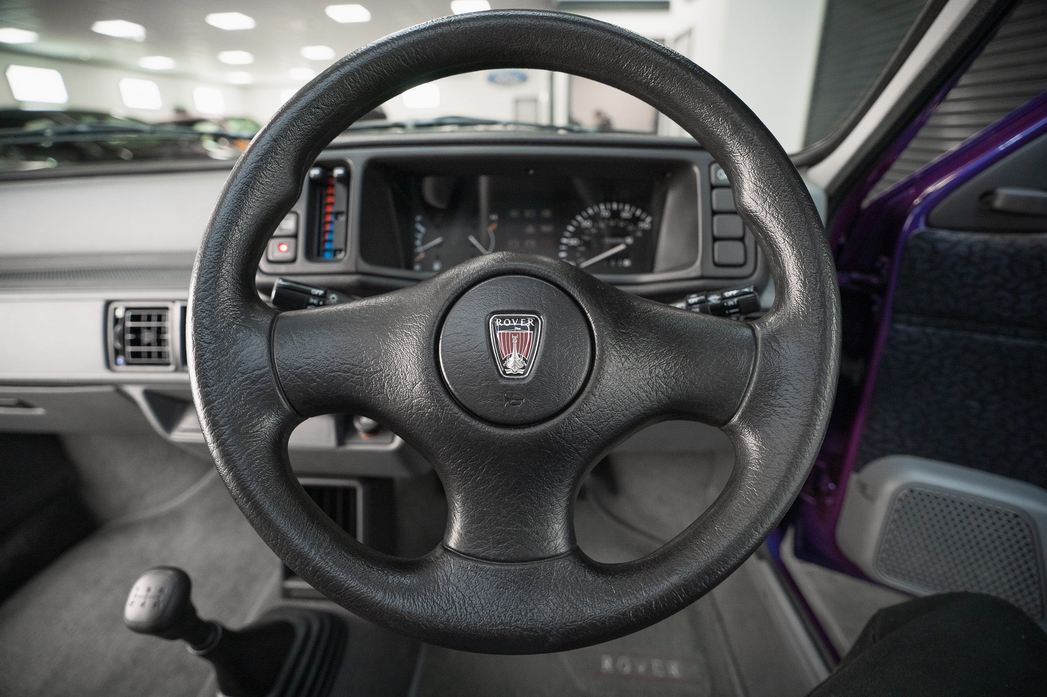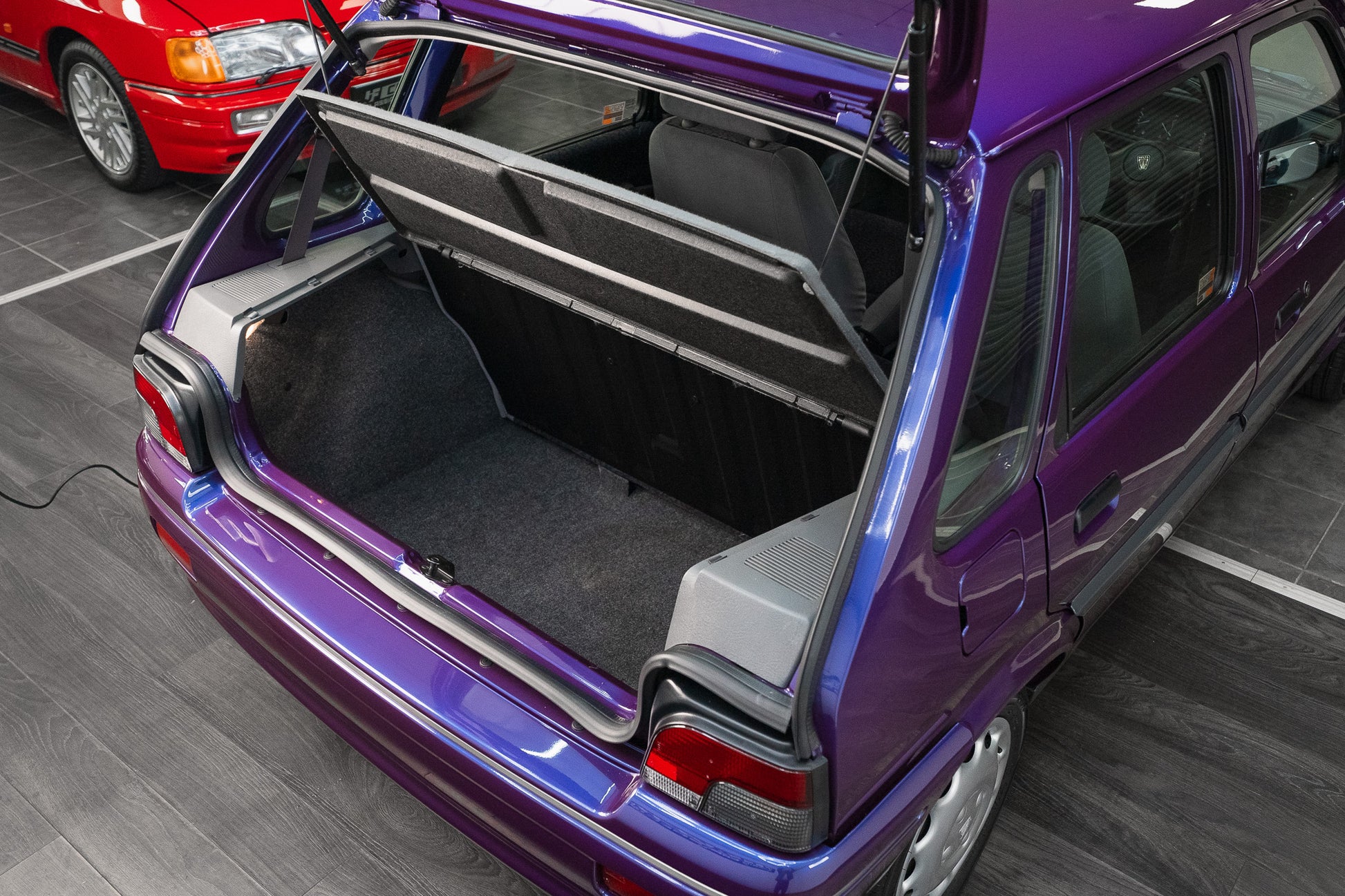 The exterior design is a wonderful reminder of mid-’90s British styling compact, boxy, and full of character. The Amaranth Metallic paintwork is nothing short of breathtaking, boasting a deep, lustrous gloss across all panels, exactly as it left the factory. Panel gaps are pin-sharp and consistent, and every surface retains a mirror-like shine that exudes careful ownership and indoor storage throughout its life.