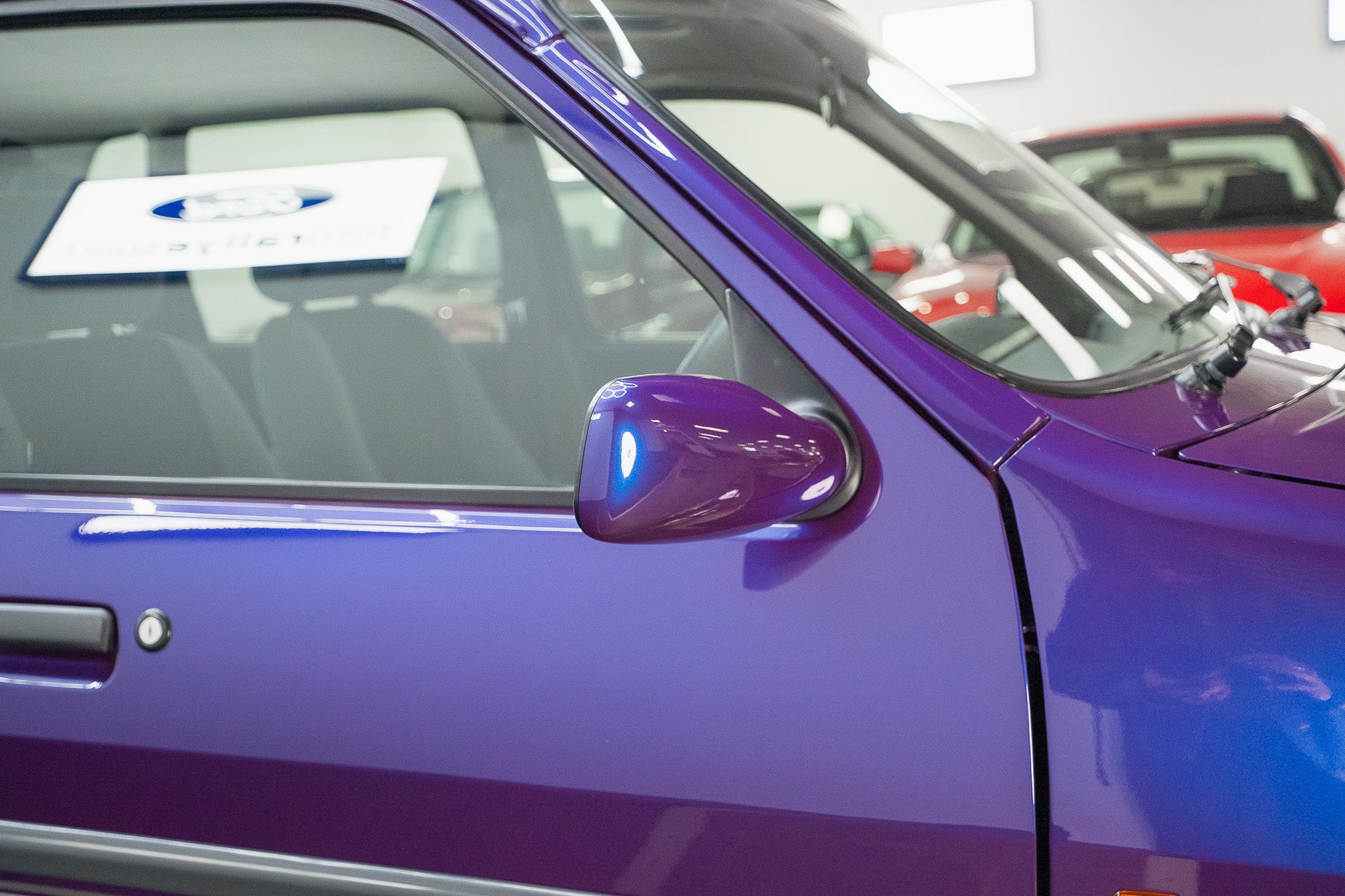 The manually adjusted mirrors, again colour coded, are fresh, bright, and unmarked.