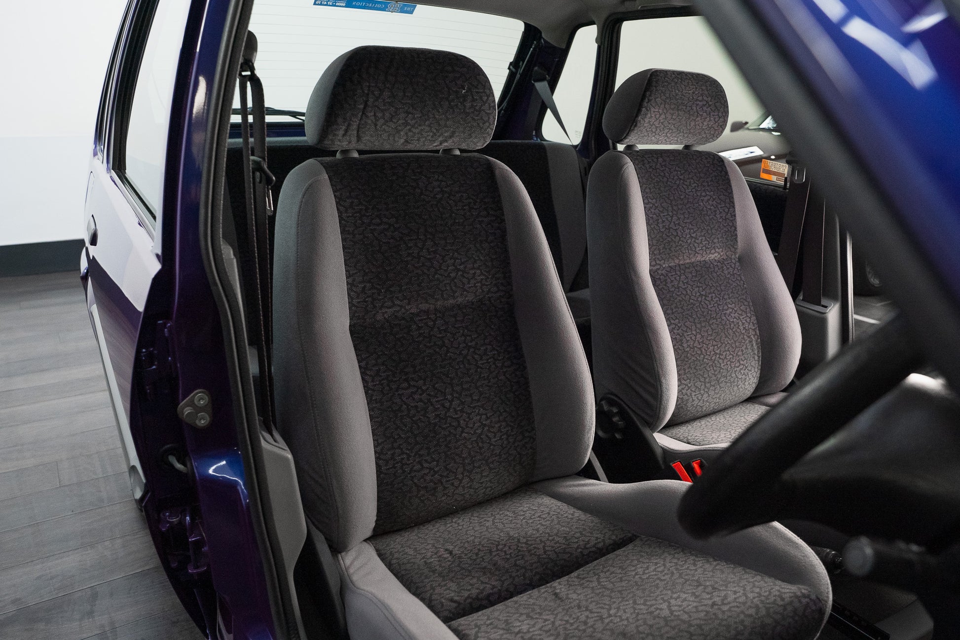 Fitted with a matching set of 155/65 R13 tyres, each tyre displays ample tread depth and uniform wear across all four corners, delivering a supple, confident ride and quiet road manners. Sidewalls remain free from cracks or flat spots, providing clear evidence of careful storage and minimal use throughout the car’s life.