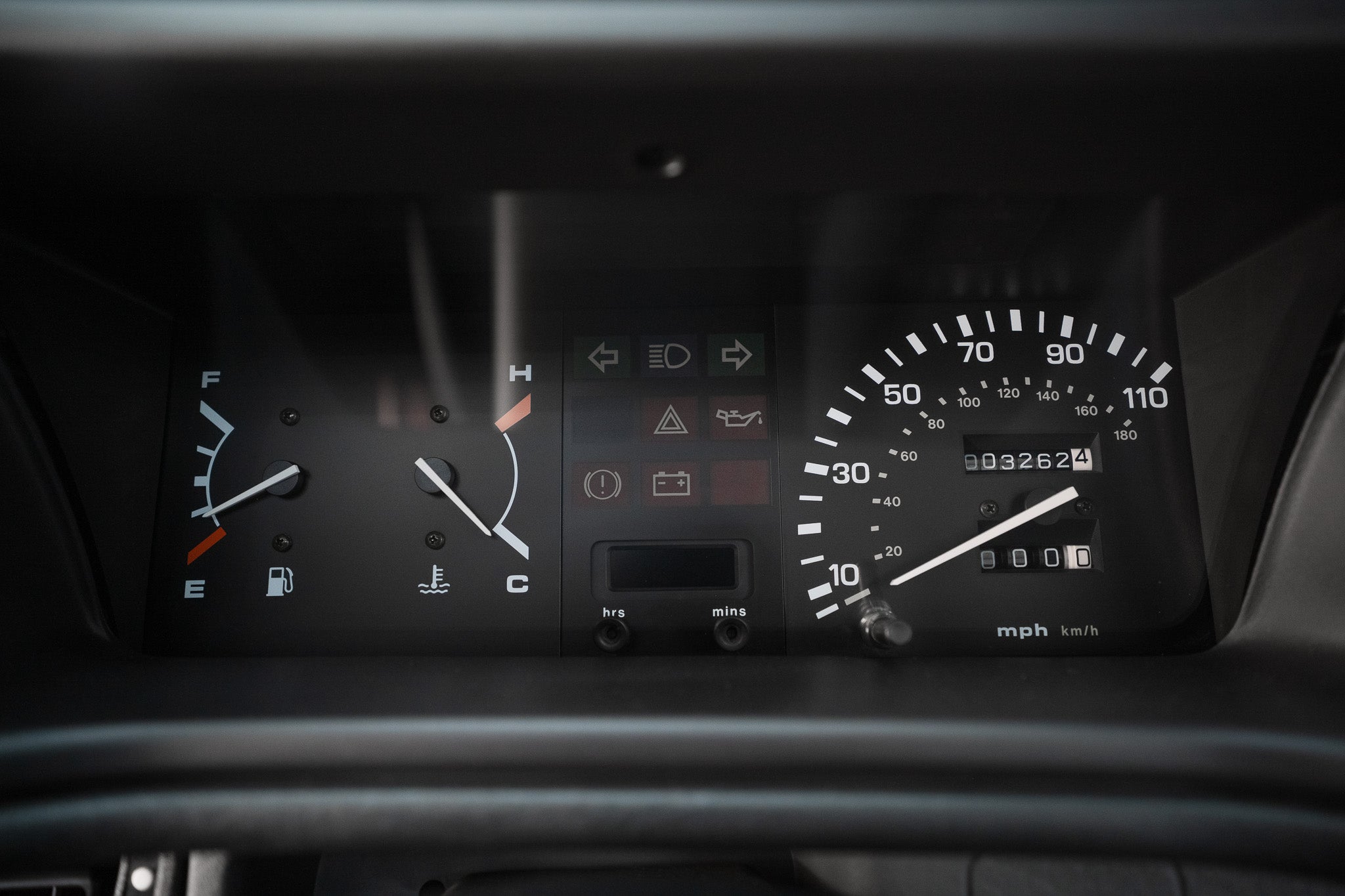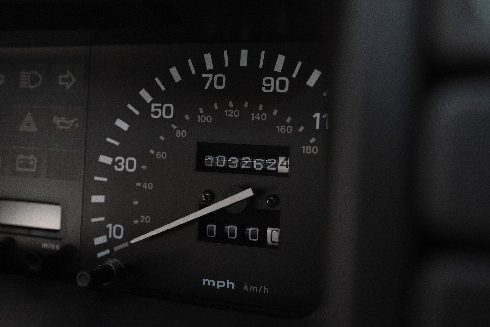 The three-spoke black steering wheel presents as new, its grain and texture untouched by age or wear exactly what you’d expect from a car that’s covered just 3,262 miles from new. The speedometer proudly displays this remarkable figure, a testament to the car’s cherished and sheltered existence.