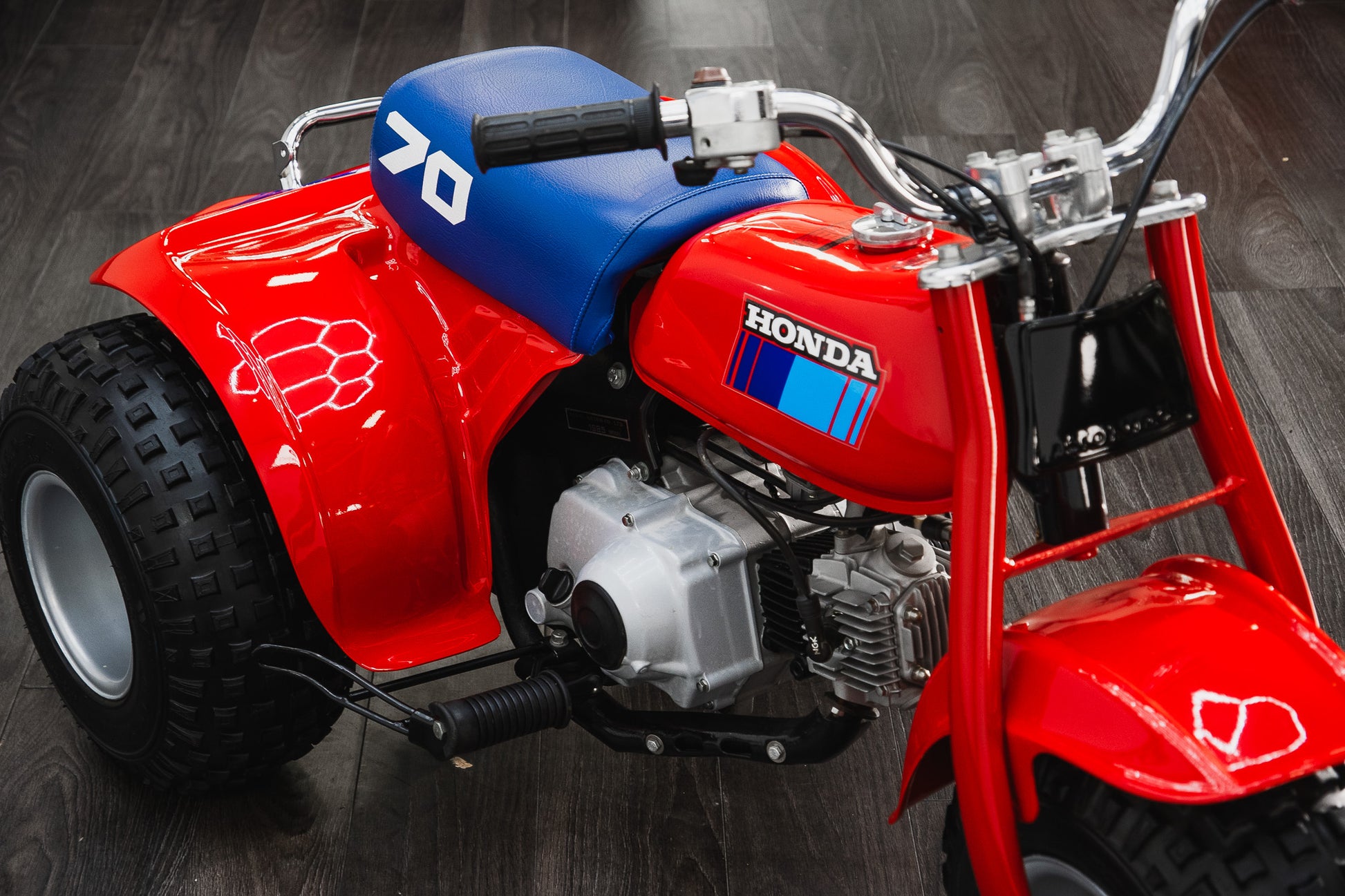 By 1983 the ATC70 was nearing the end of its production run (1978–85) and has since become highly collectible. This particular machine presents in beautiful condition the Honda Scarlet Red paintwork gleams with no fading or oxidation and all plastic body panels are bright, crisp and free from markings and scuffs