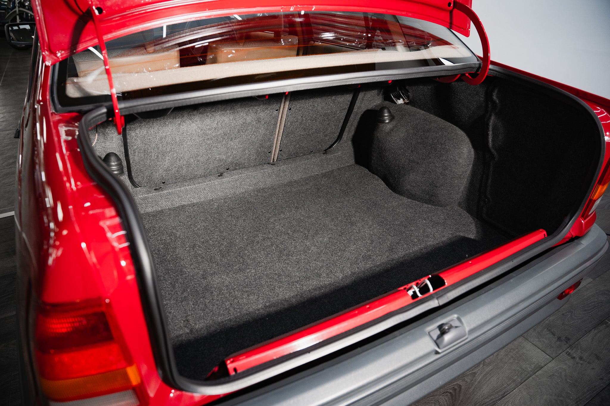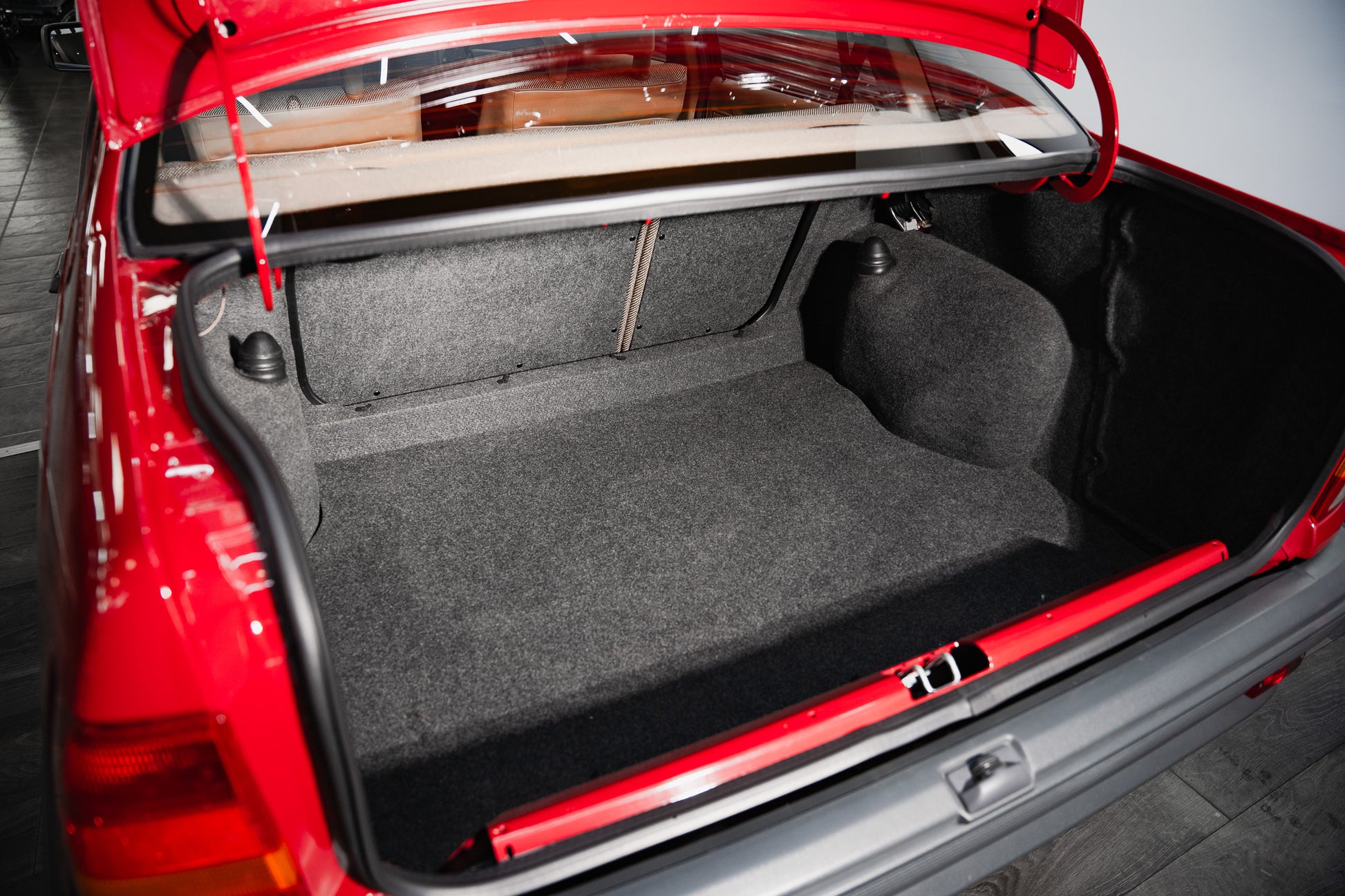 The centre console area continues the theme of minimal wear, with both the gear lever and handbrake presenting beautifully, consistent with the vehicle’s exceptionally low mileage. Underfoot, the light tan carpeting remains in very good order, having been protected from new by original factory over mats in both the front and rear. Above, the light grey headlining is taut, clean, and free from any marks or sagging.