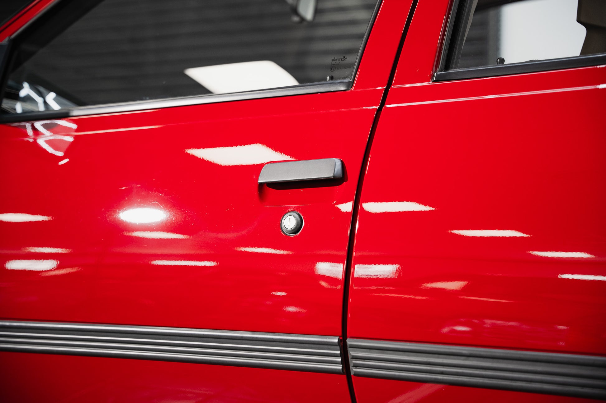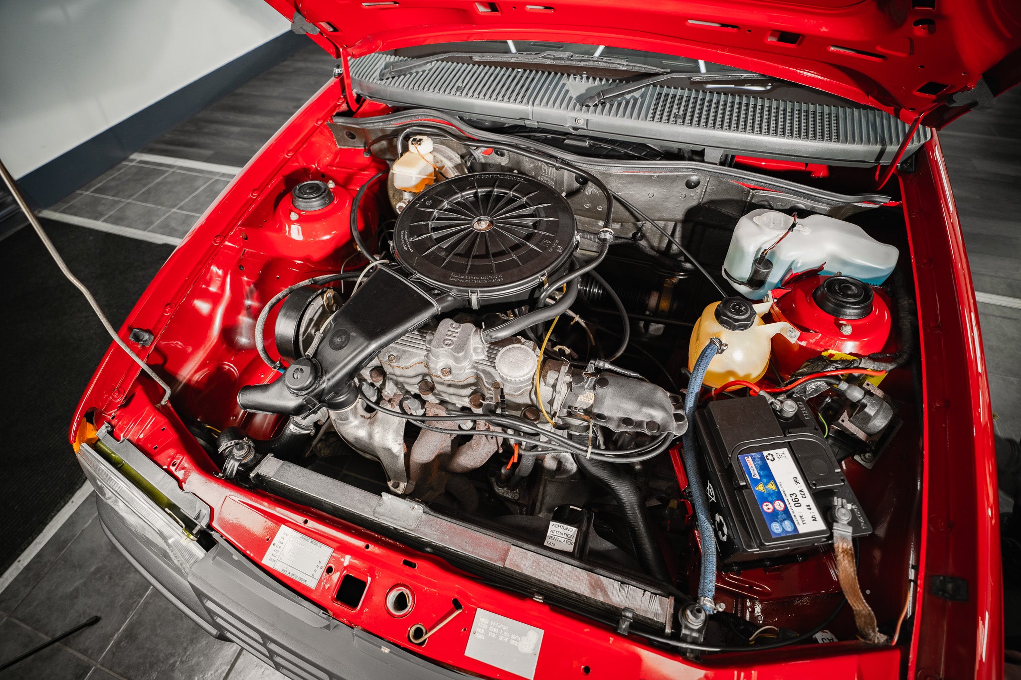 Finished in its factory-correct Vauxhall Mexico Red (Paint Code 71L), this 1986 Belmont L presents in a manner that immediately reflects its exceptionally low mileage and careful ownership. The paintwork carries a deep, even gloss from front to rear, with a uniform finish across every panel, beautifully highlighting the clean, understated lines of this classic 1980s saloon.