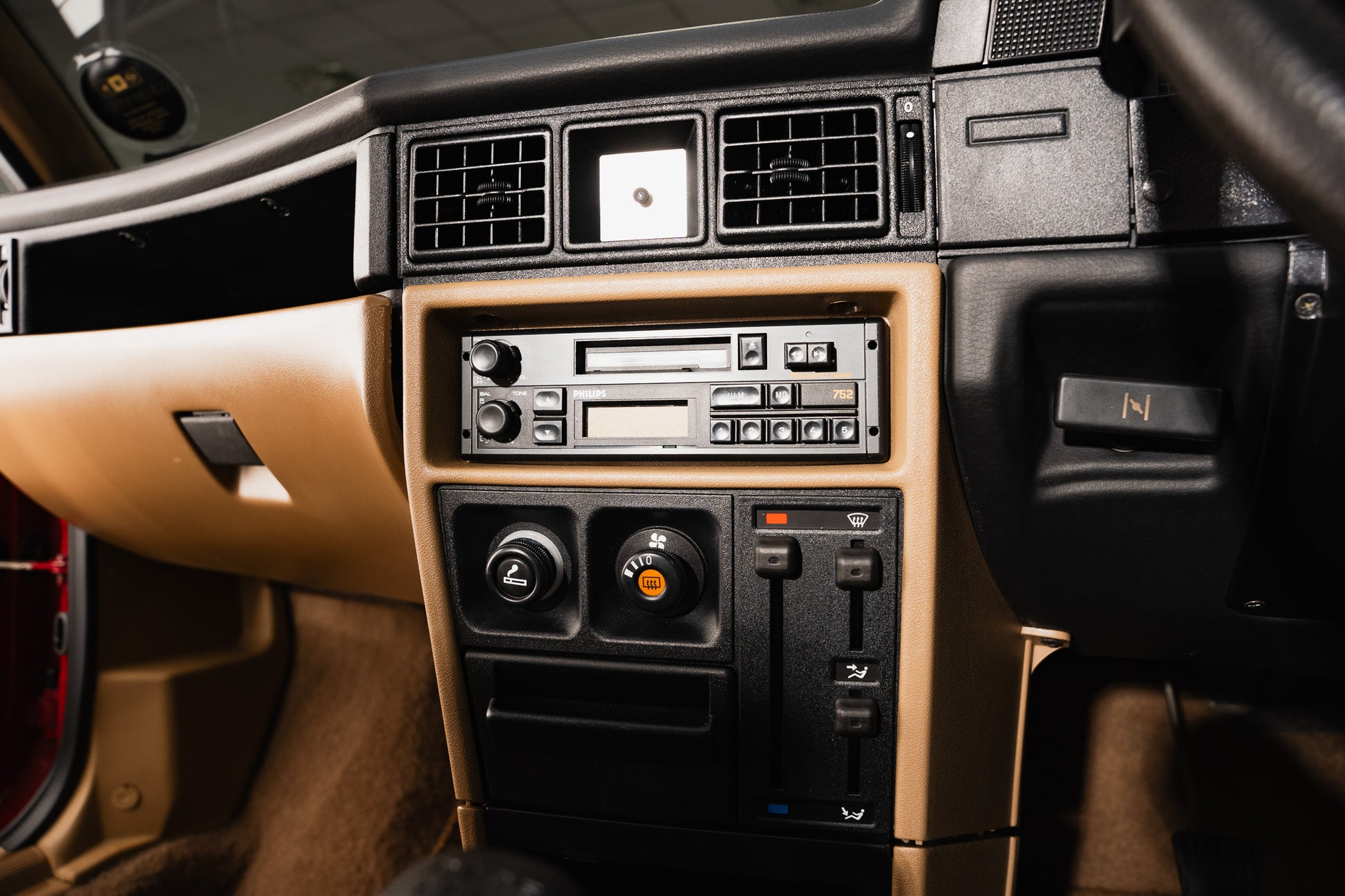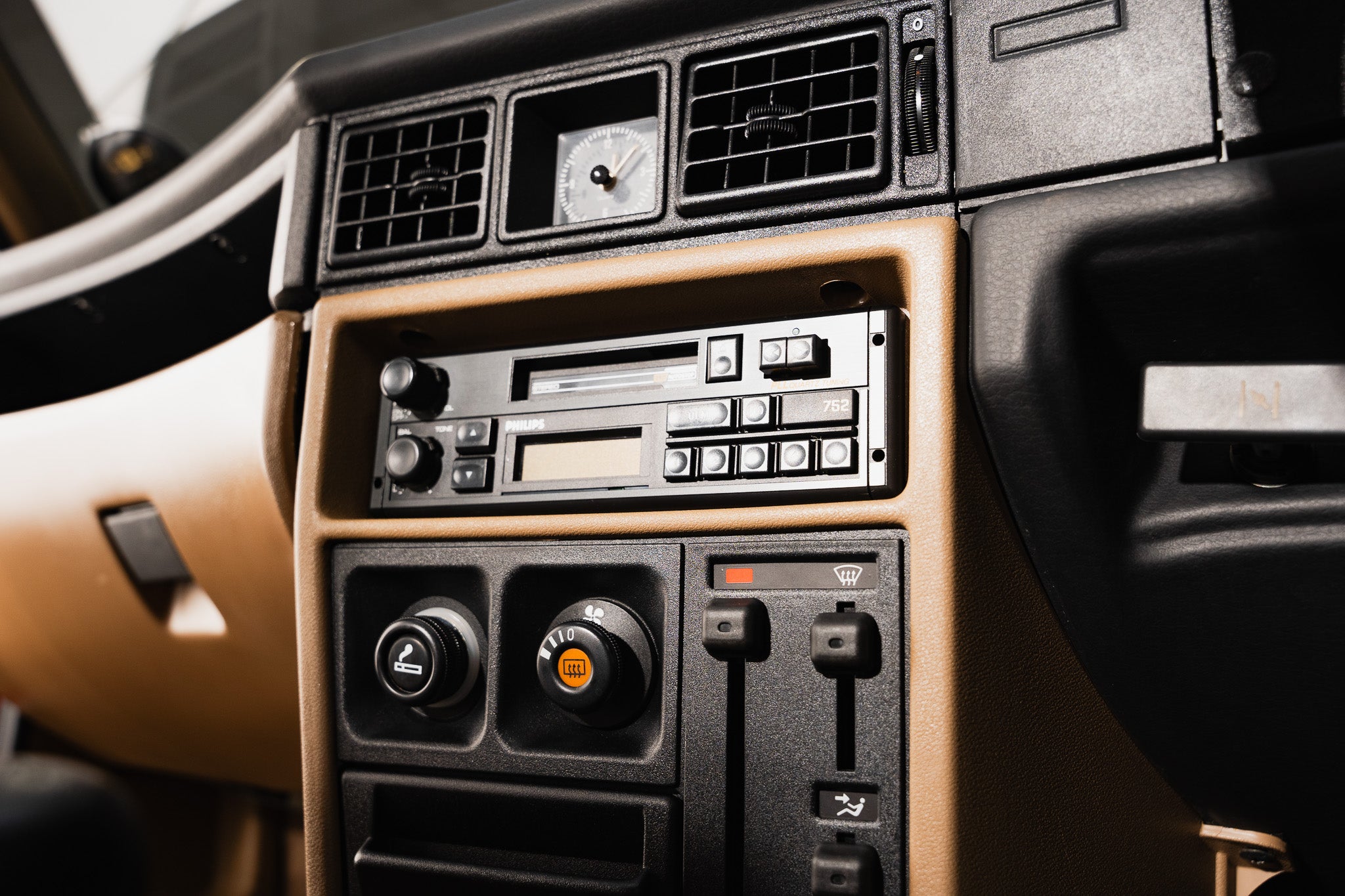 The original Philips 752 push-button radio cassette remains fitted, unmarked, and fully operational, adding to the car’s authenticity. The cigarette lighter and ashtray appear unused, further highlighting the careful ownership this vehicle has enjoyed. Heating and ventilation are controlled via a three-speed rotary fan switch, incorporating a heated rear screen function, alongside smooth-operating slider controls for temperature and airflow.