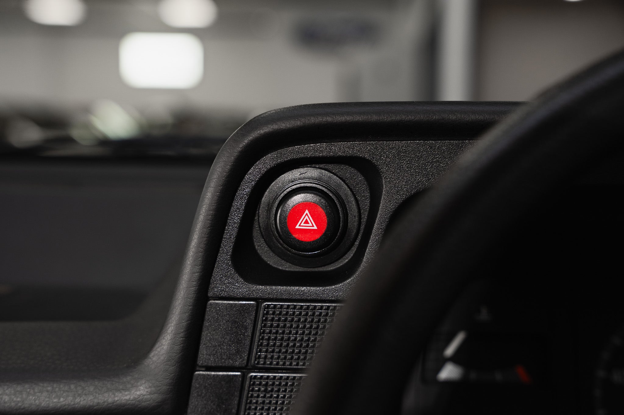 The interior follows a cohesive two-tone theme, with a dashboard finished in a combination of black and light tan, maintaining the period-correct aesthetic. The layout is refreshingly simple yet entirely purposeful. To the passenger side, the glovebox is neatly integrated, with an adjustable heater vent positioned just above. Centrally mounted, a quartz analogue clock provides a subtle focal point, flanked by additional directional air vents.