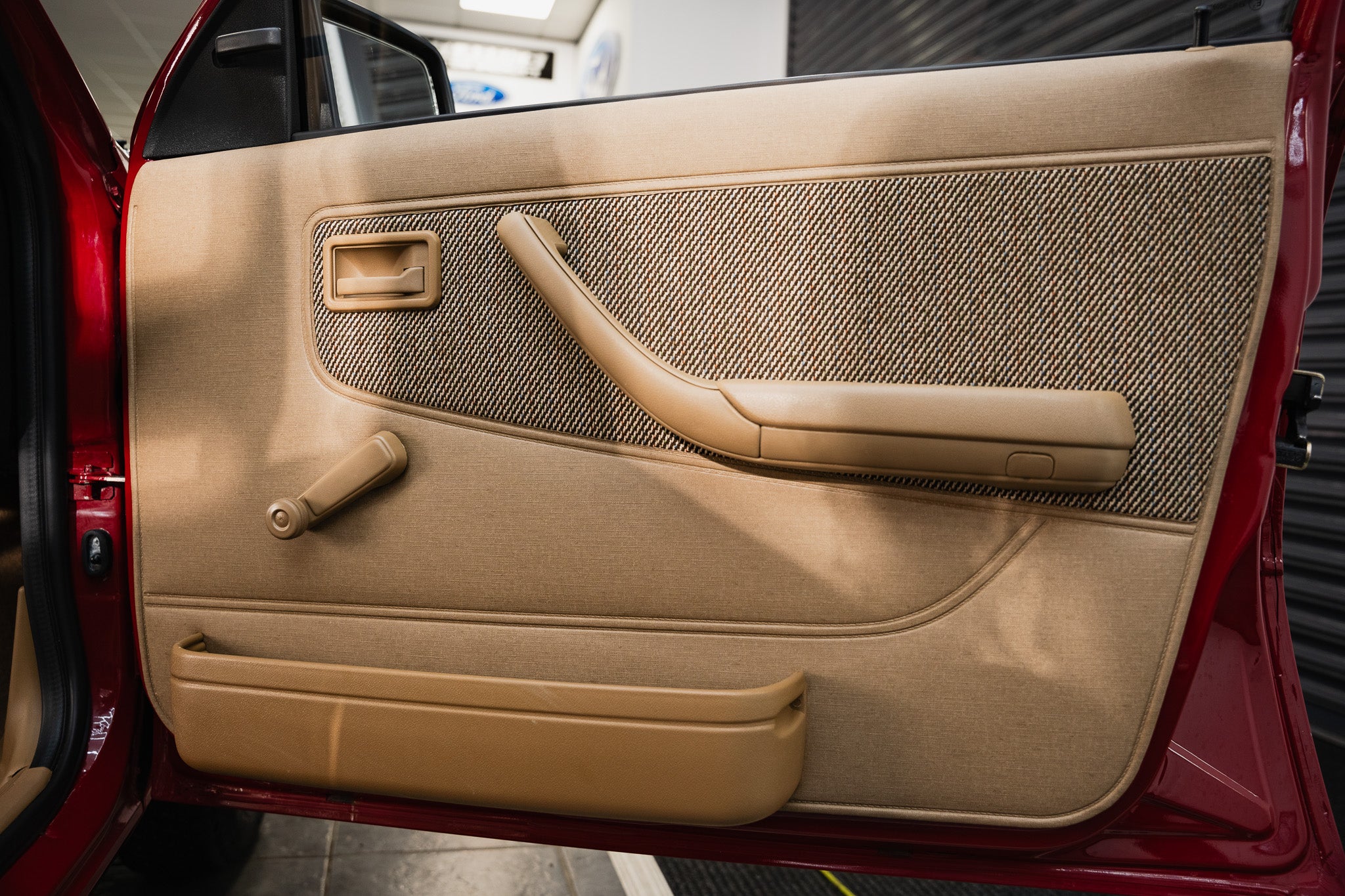 The contrasting grey textured bumpers remain in superb condition, free from marks or distortion, and retain their original finish. Along each flank, the grey protective side mouldings sit perfectly straight and flush, maintaining the car’s clean and uncluttered profile.