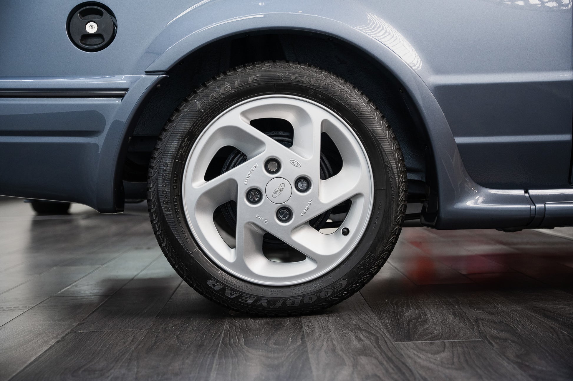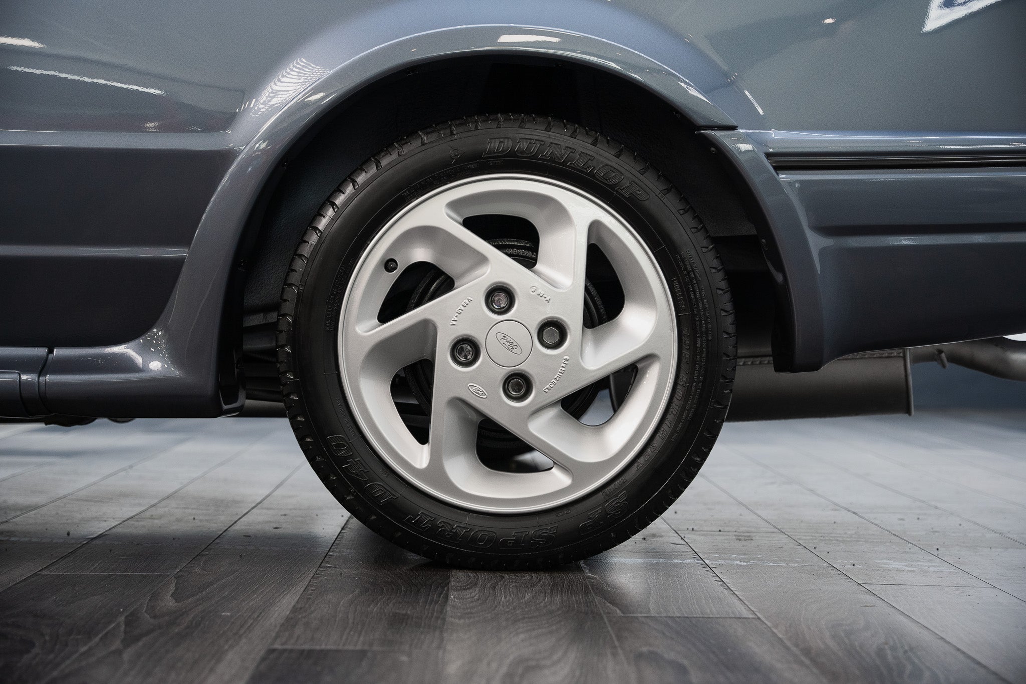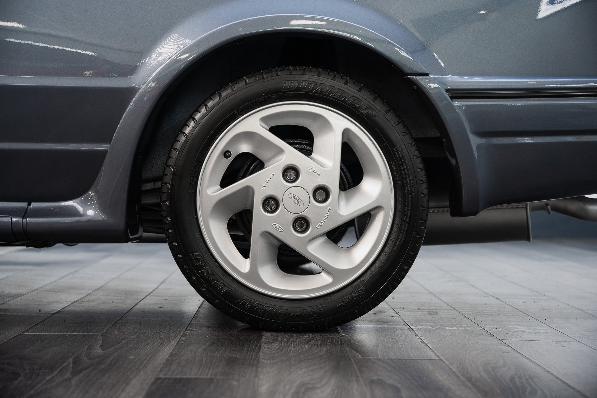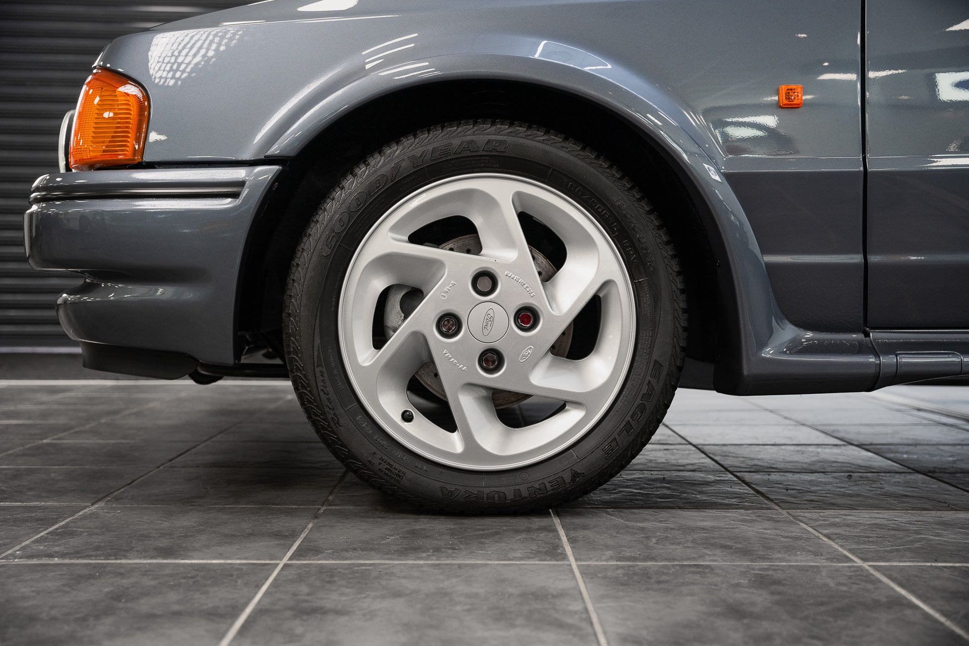 Finished in its factory correct Ford Mercury Grey, this 1989 Escort RS Turbo Series 2 presents in exceptional condition throughout. The paintwork displays a deep, even gloss across every panel, beautifully accentuating the sharp creases and purposeful lines that define the RS Turbo’s unmistakable 1980s silhouette. The metallic finish remains vibrant and consistent, reflecting careful ownership and sympathetic preservation.