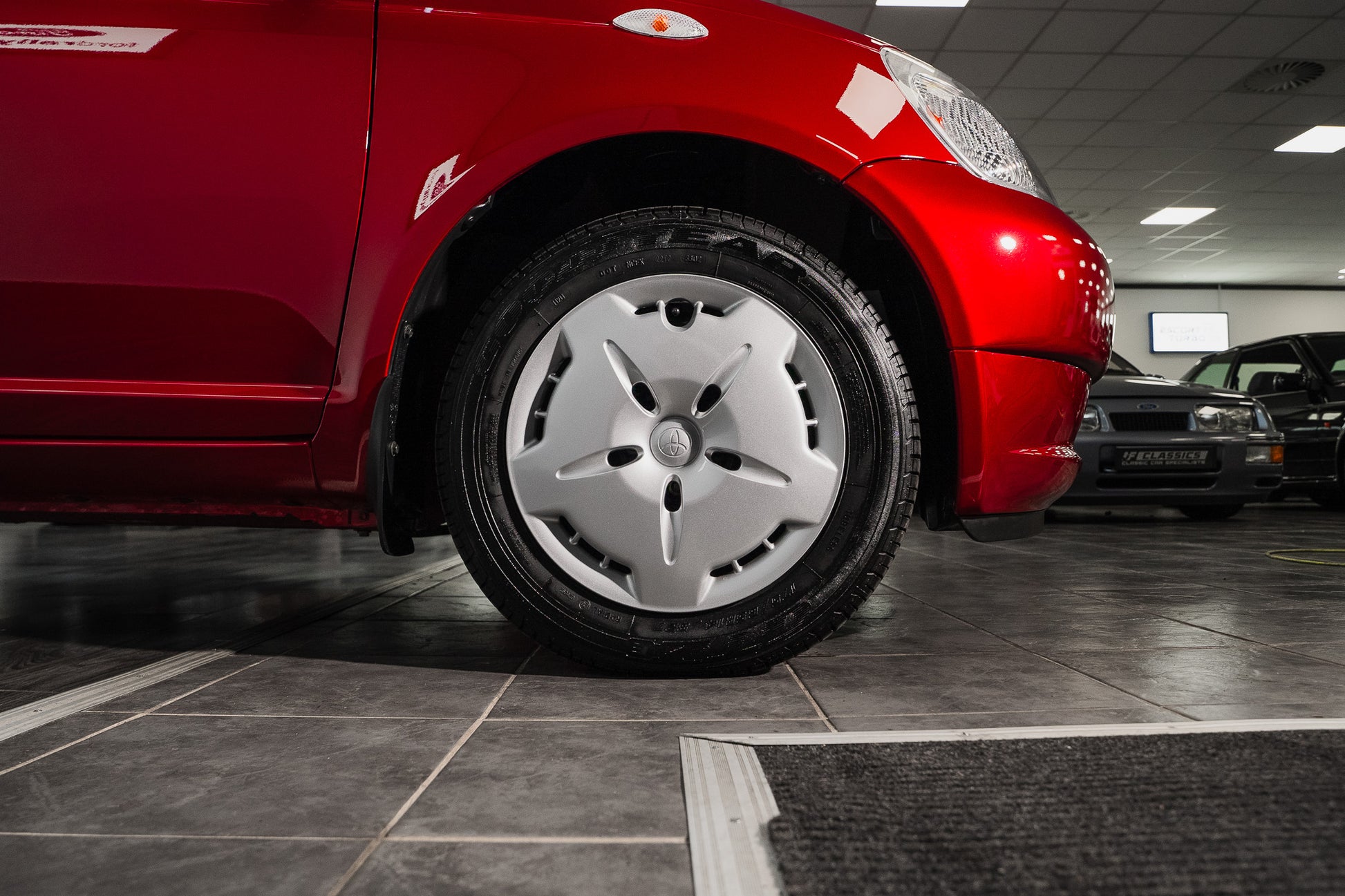 All four wheels are fitted with tyres that are effectively as new, having seen only minimal use consistent with the car’s exceptionally low mileage. Tread depth is excellent across the set, and wear is perfectly even, offering reassurance both in terms of safety and originality.