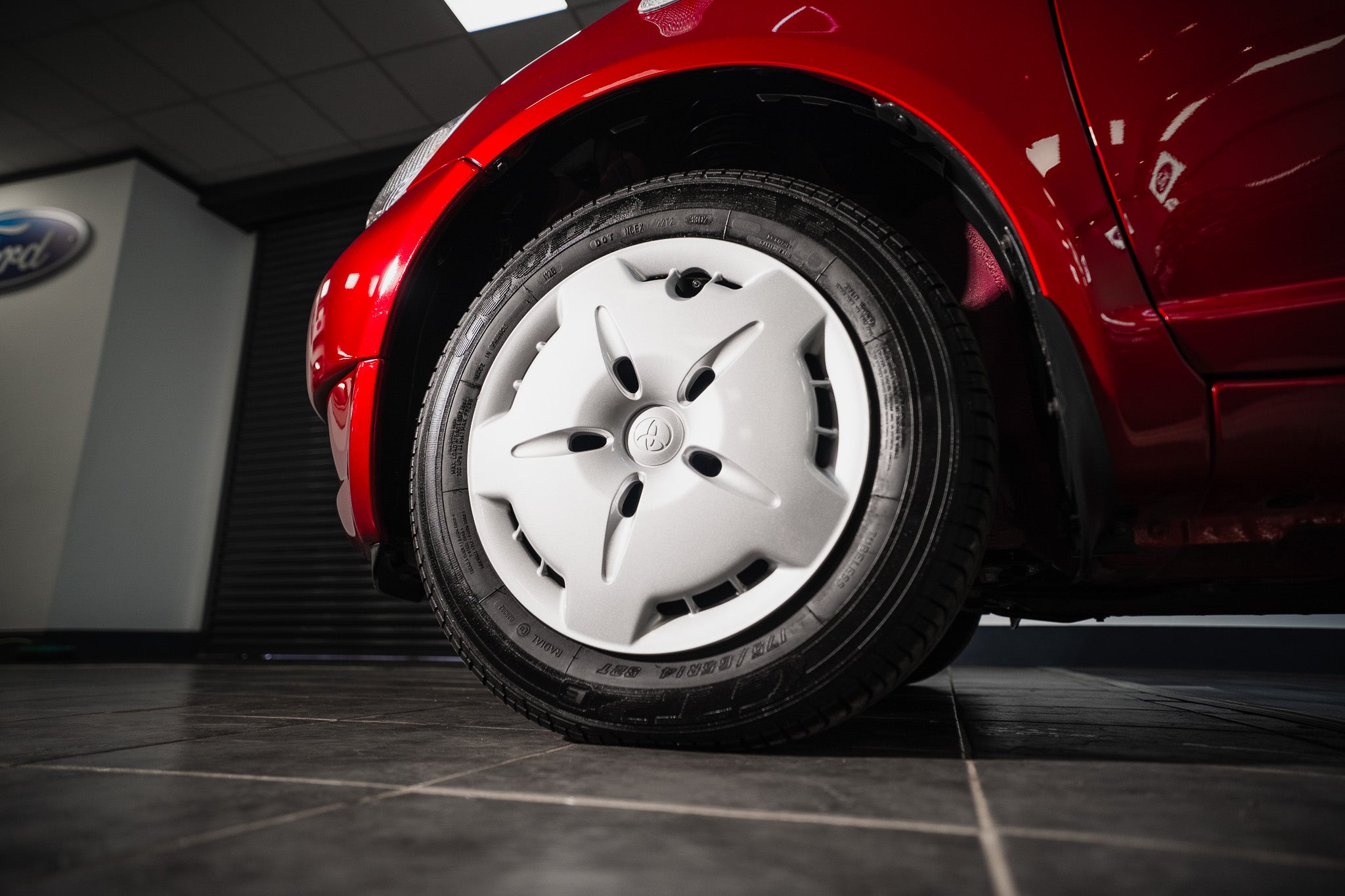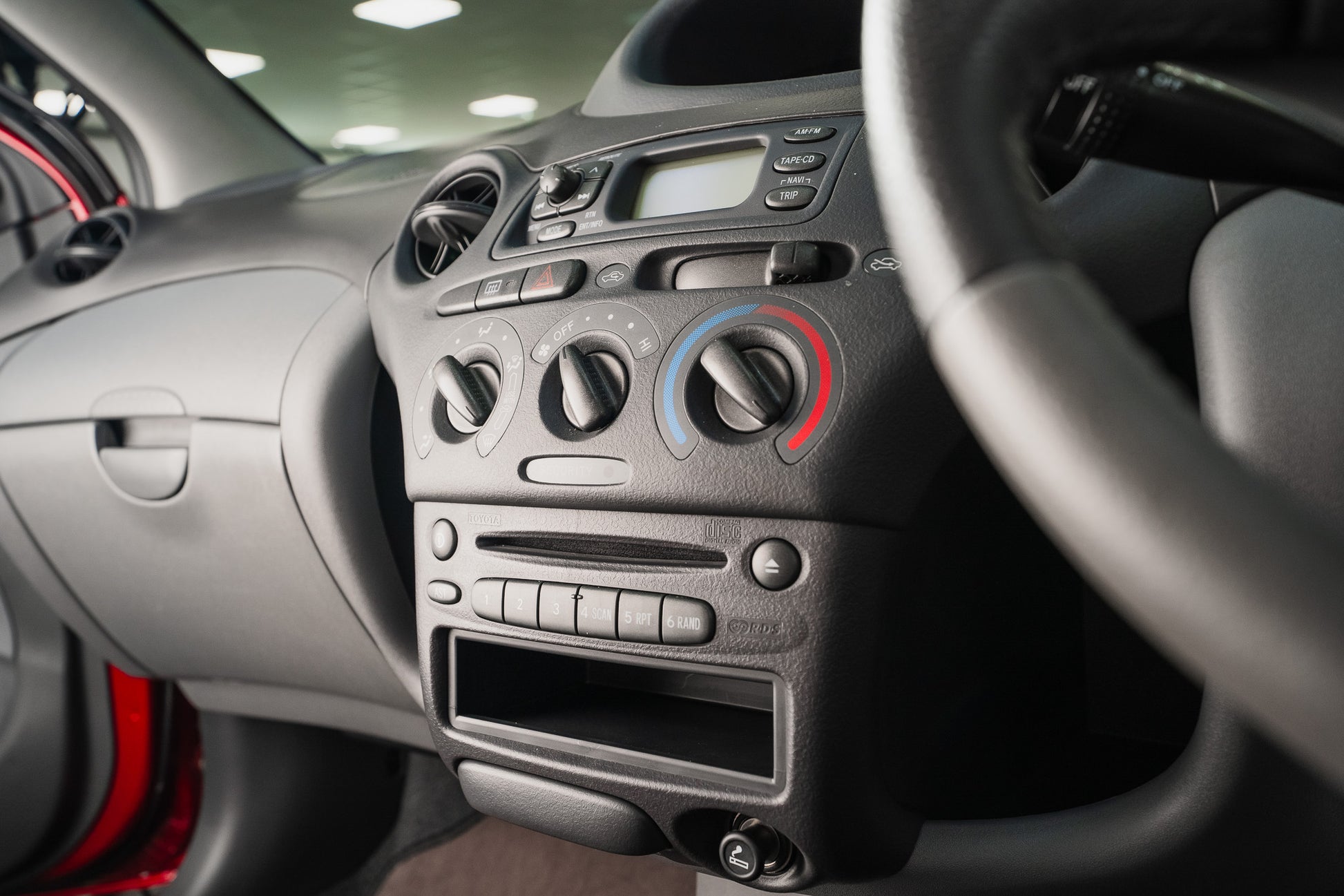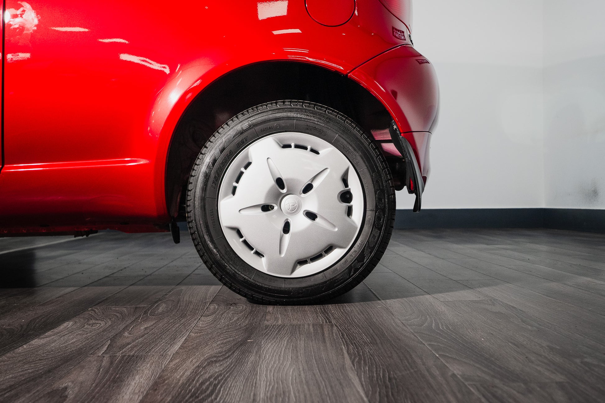 This Yaris remains exactly as it left the factory, sitting on its original steel wheels, each fitted with the correct factory silver Toyota hub caps. The hub caps themselves present in superb condition, retaining their original finish with no cracks, or discolouration a rare detail that further reinforces the car’s untouched nature.