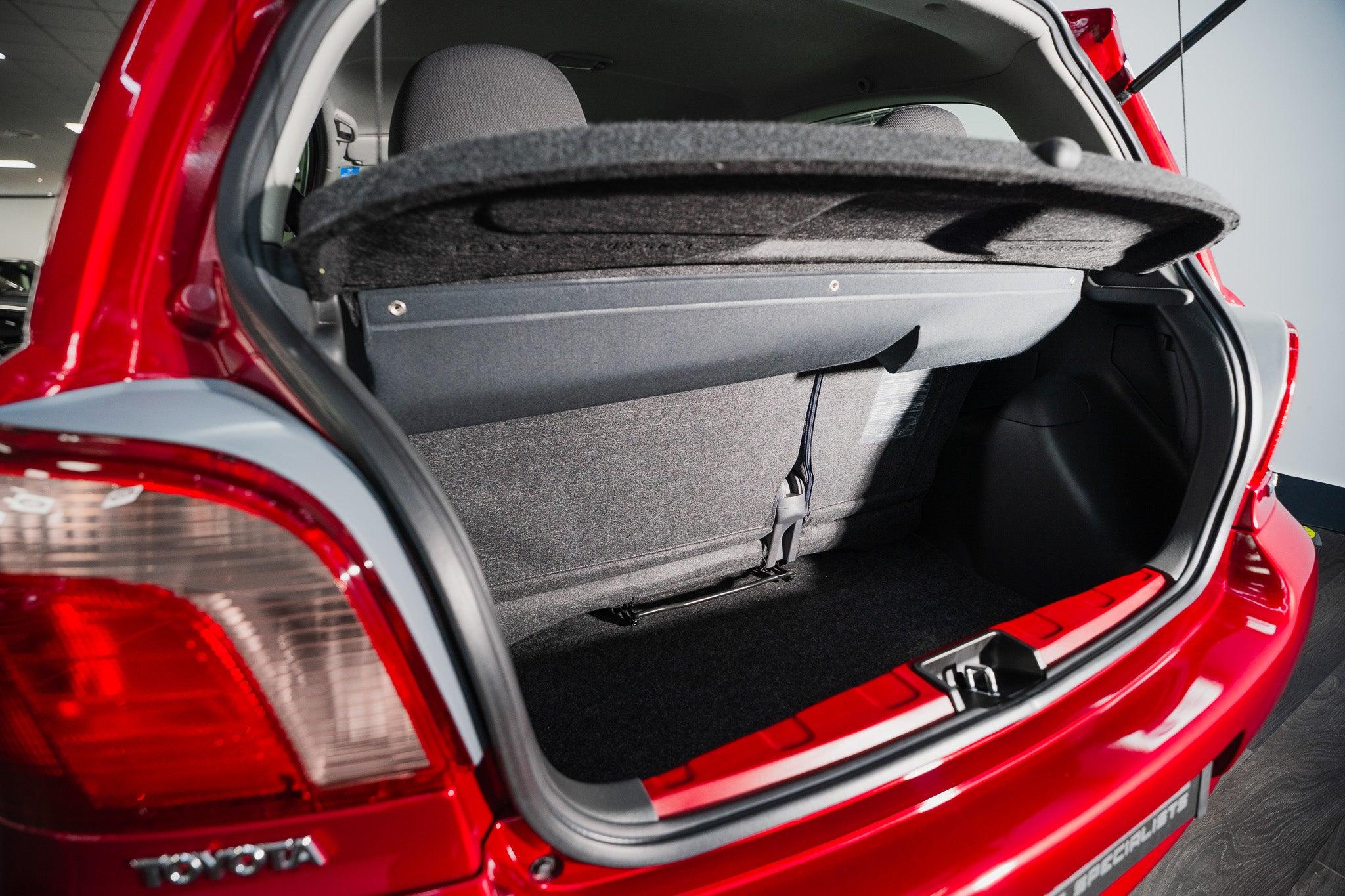 Below, the colour-coded interior carpets remain in as-new condition, having been protected from day one by genuine factory ‘Yaris’ over mats, which themselves present with minimal signs of use. The overall cleanliness and preservation of the flooring further highlight the careful ownership this vehicle has enjoyed.