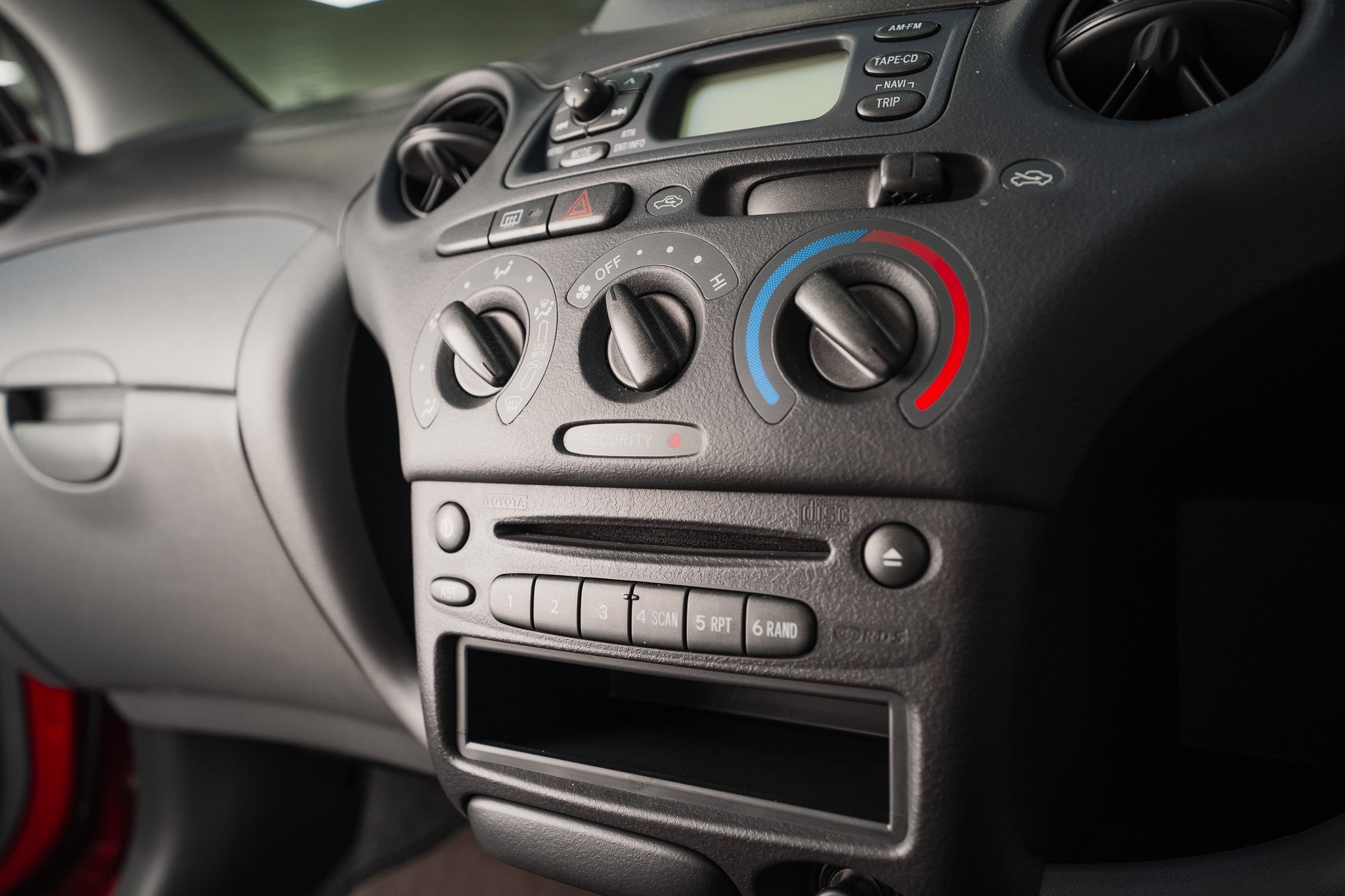 The original dashboard remains in completely unmarked condition, free from any fading, scuffs, or deterioration. All factory features are present and operate exactly as intended, reinforcing the sense that this car has been preserved rather than simply used. The layout remains clean, functional, and unmistakably early-2000s Toyota, with a level of originality rarely encountered today.
