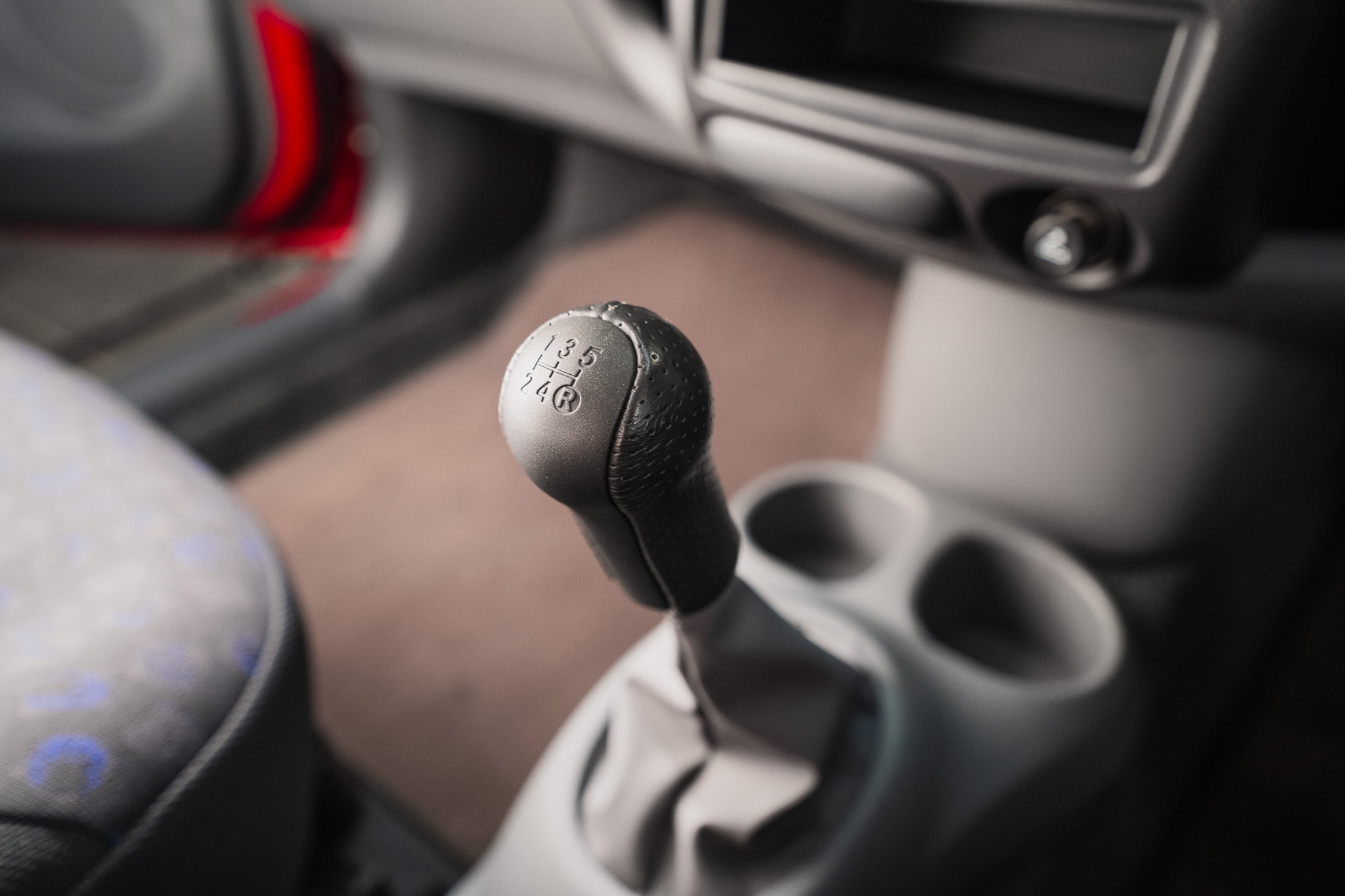 The steering wheel, five-speed manual gear lever, and handbrake all display no visible wear whatsoever, exactly as one would expect from a car with such remarkably low mileage. Surfaces remain clean, textures intact, and finishes unspoiled.