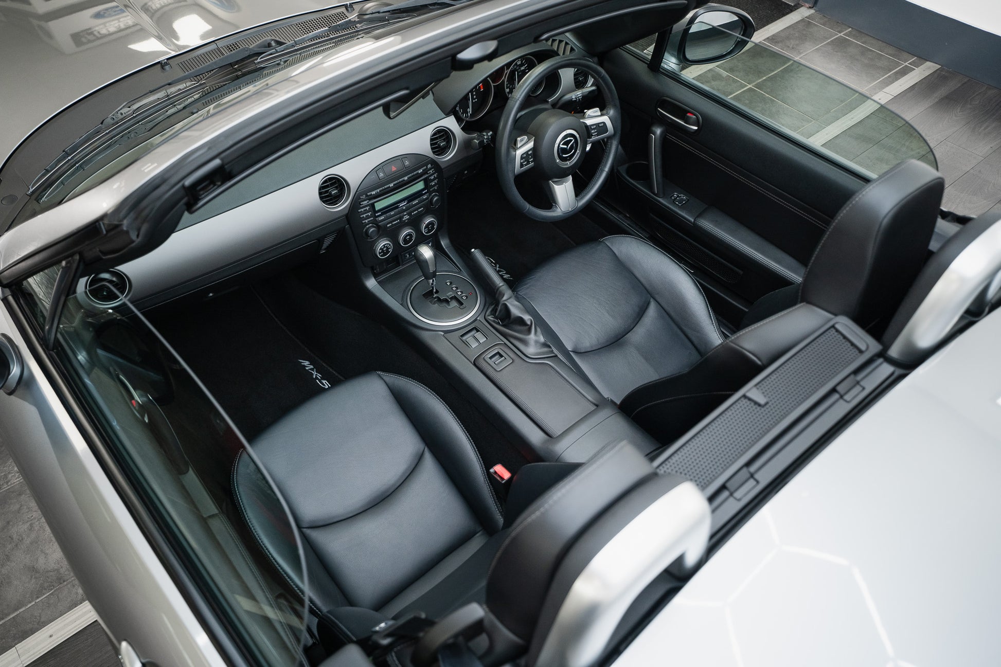 Upon entry, stainless steel sill protectors adorned with the MX-5 logo provide a subtle yet distinctive touch, setting the tone for the quality within. The seats are trimmed in black heated leather and remain in superb condition, showing no signs of wear, creasing, or deterioration. Both driver and passenger seats retain their original shape and support, offering comfort for longer journeys while maintaining a sporty feel.
