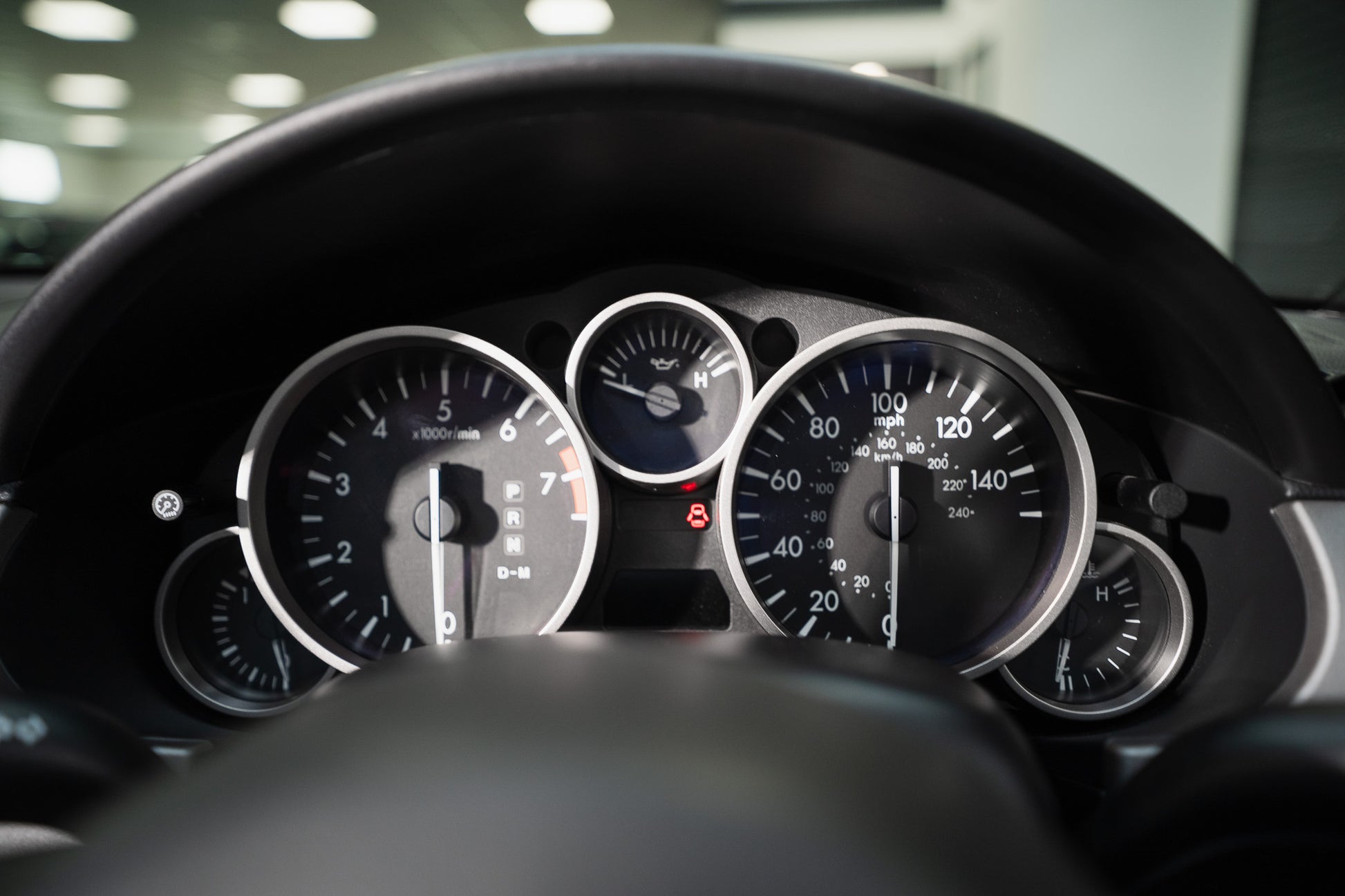 Ahead of the driver, the instrument binnacle is clear and well laid out, featuring a fuel gauge to the left, with the tachometer and speedometer centrally positioned. The odometer displays just 18,172 miles from new, further confirming the car’s low usage. To the right, the engine temperature gauge completes the cluster, with all displays functioning correctly and clearly visible.