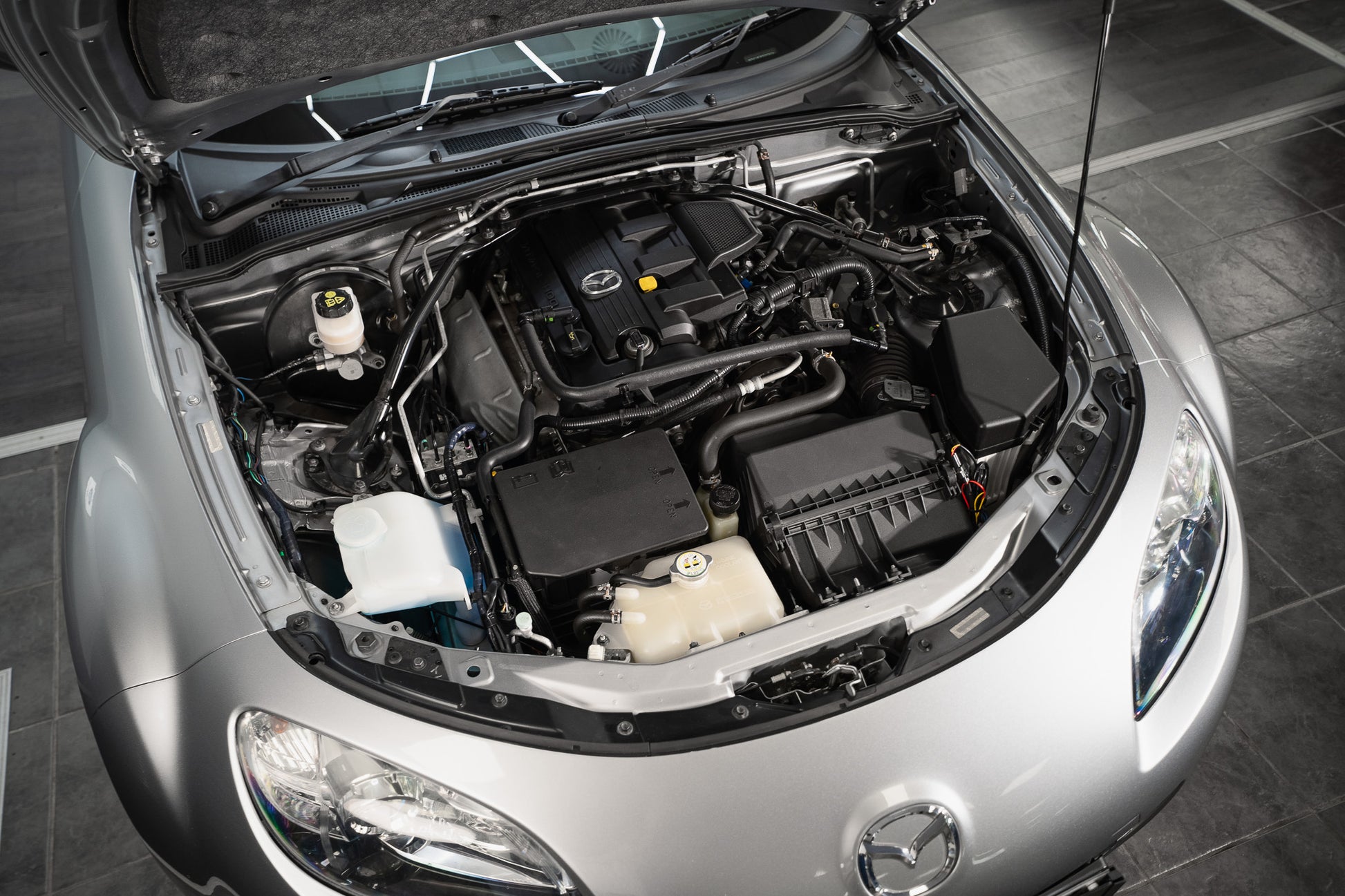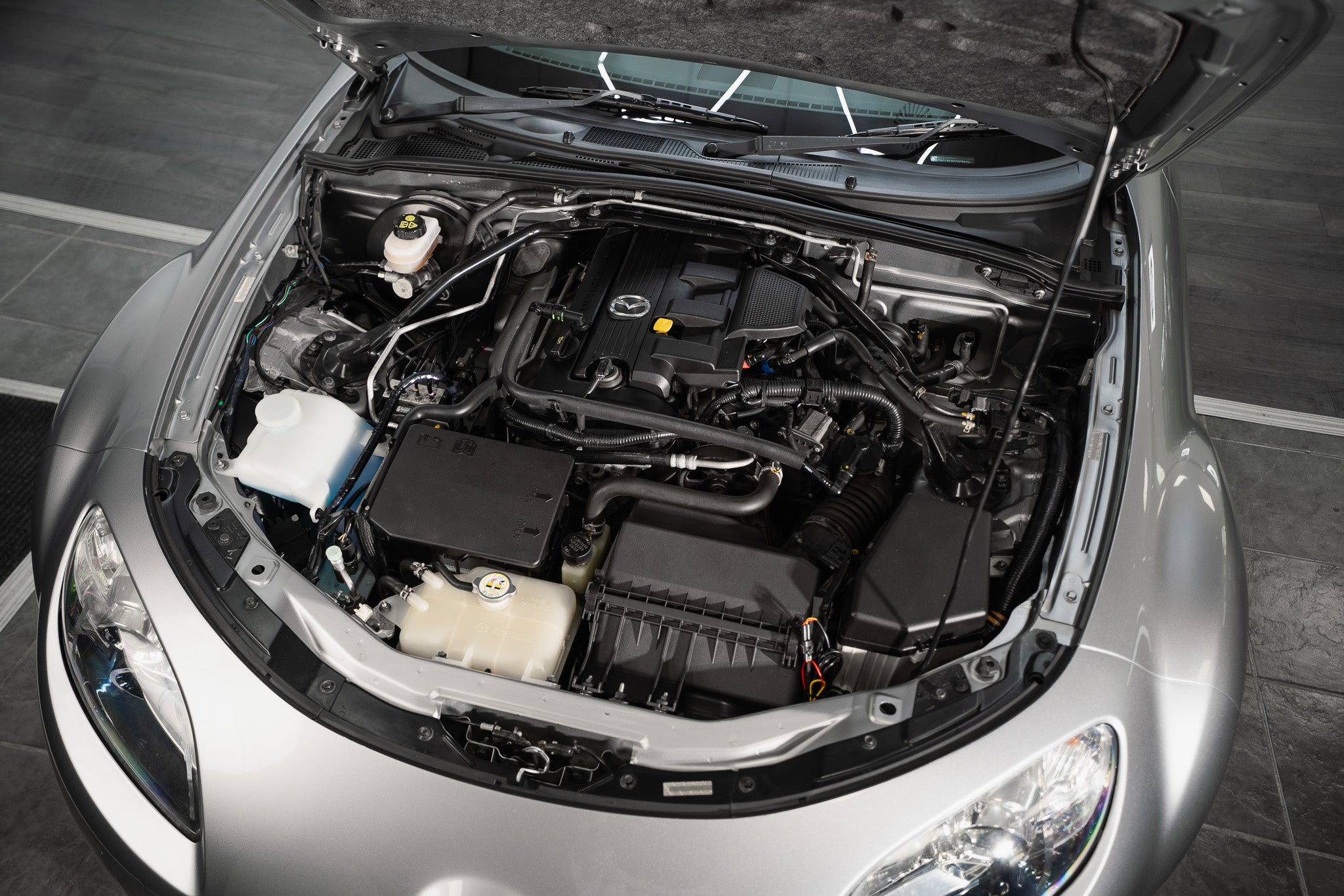This 2010 Mazda MX-5 is fitted with its original factory 10-spoke silver alloy wheels which present in excellent condition and complement the car’s clean, sporting appearance. The wheels are shod with premium tyres all round displaying ample tread