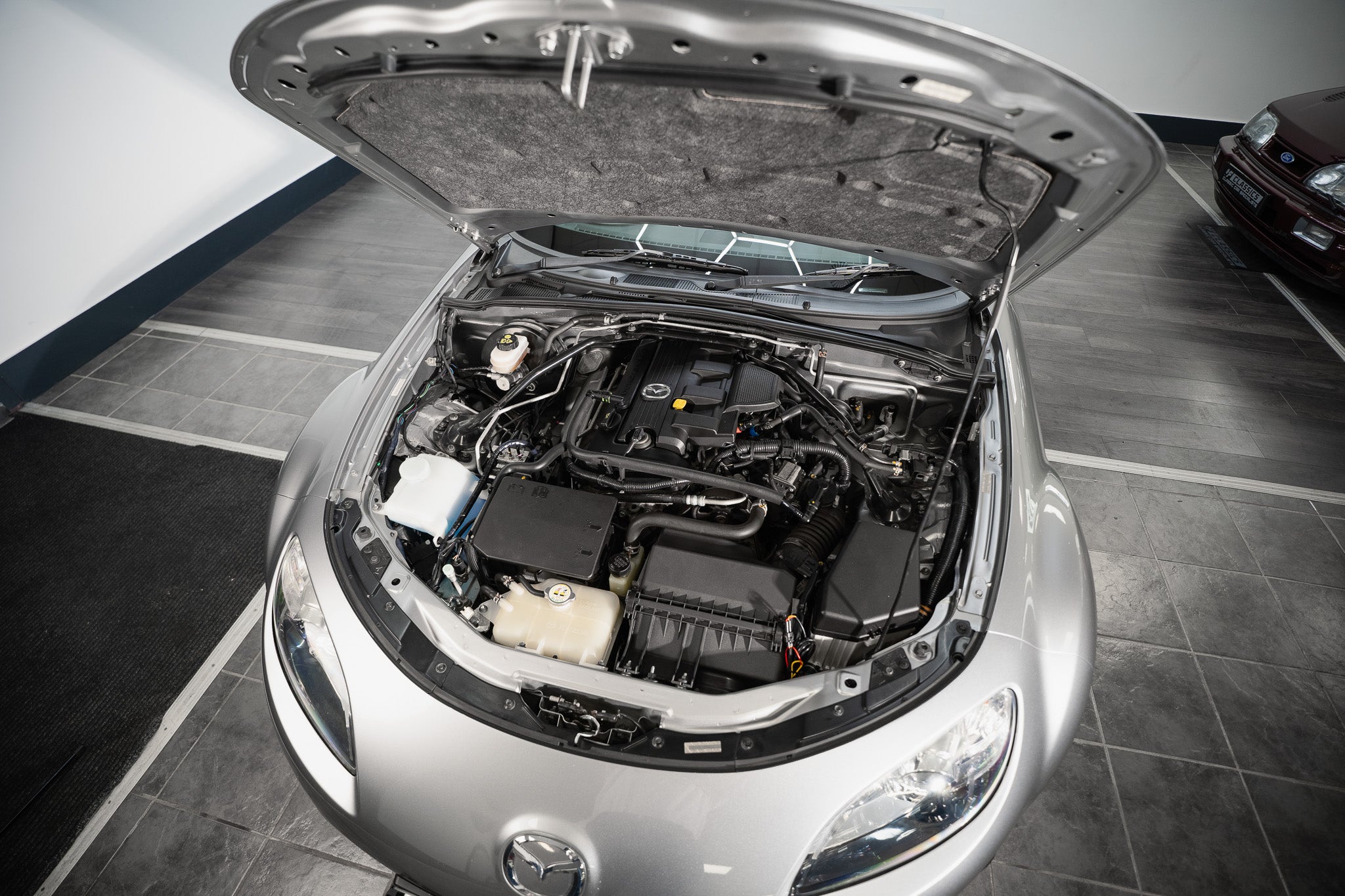 A key feature of this example is its electrically operated retractable hardtop roof, which functions smoothly and effortlessly, transforming the car from a closed coupe to an open-top roadster within moments. The system operates without fault, reinforcing the MX-5’s reputation for usability and reliability.
