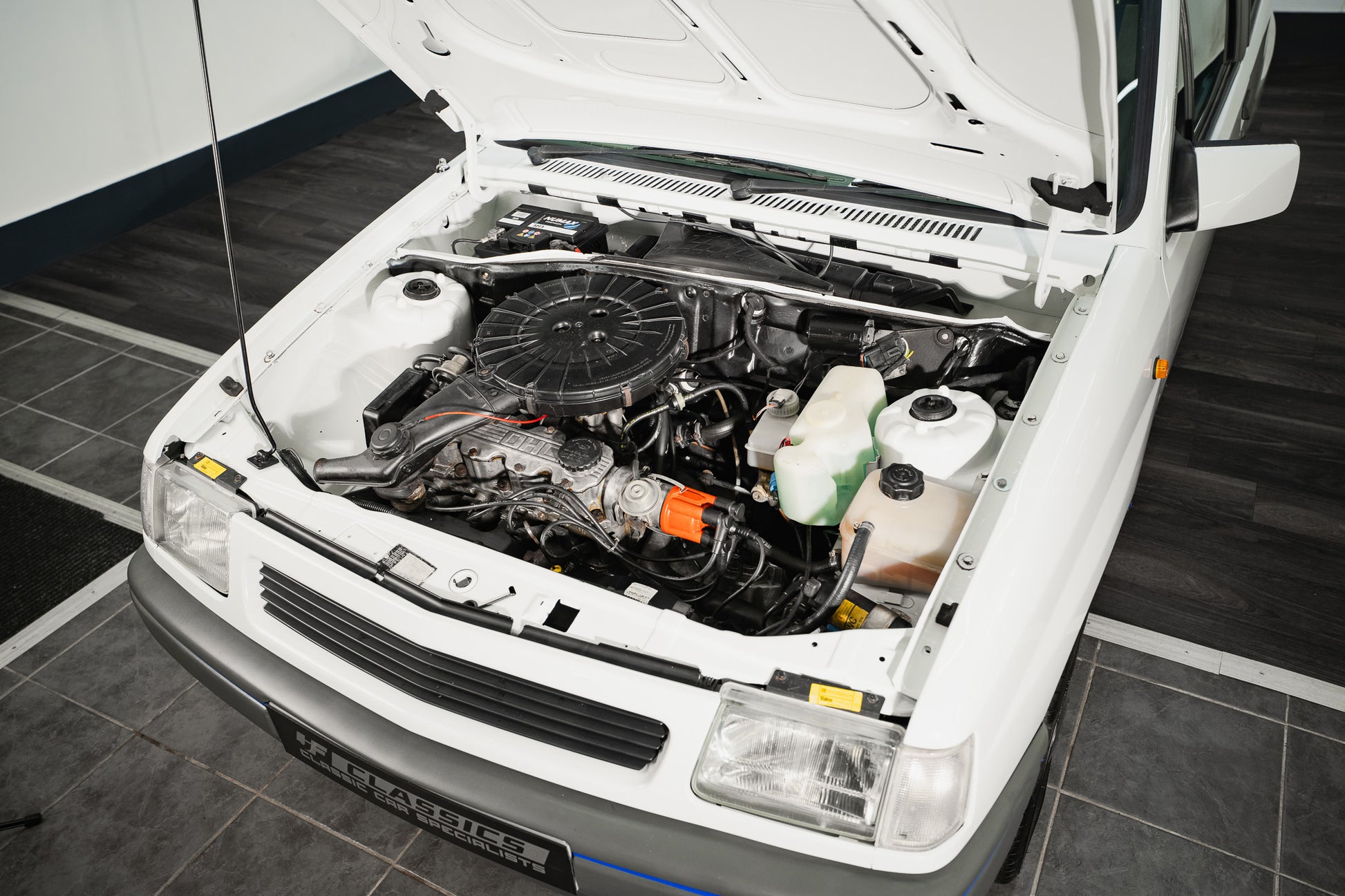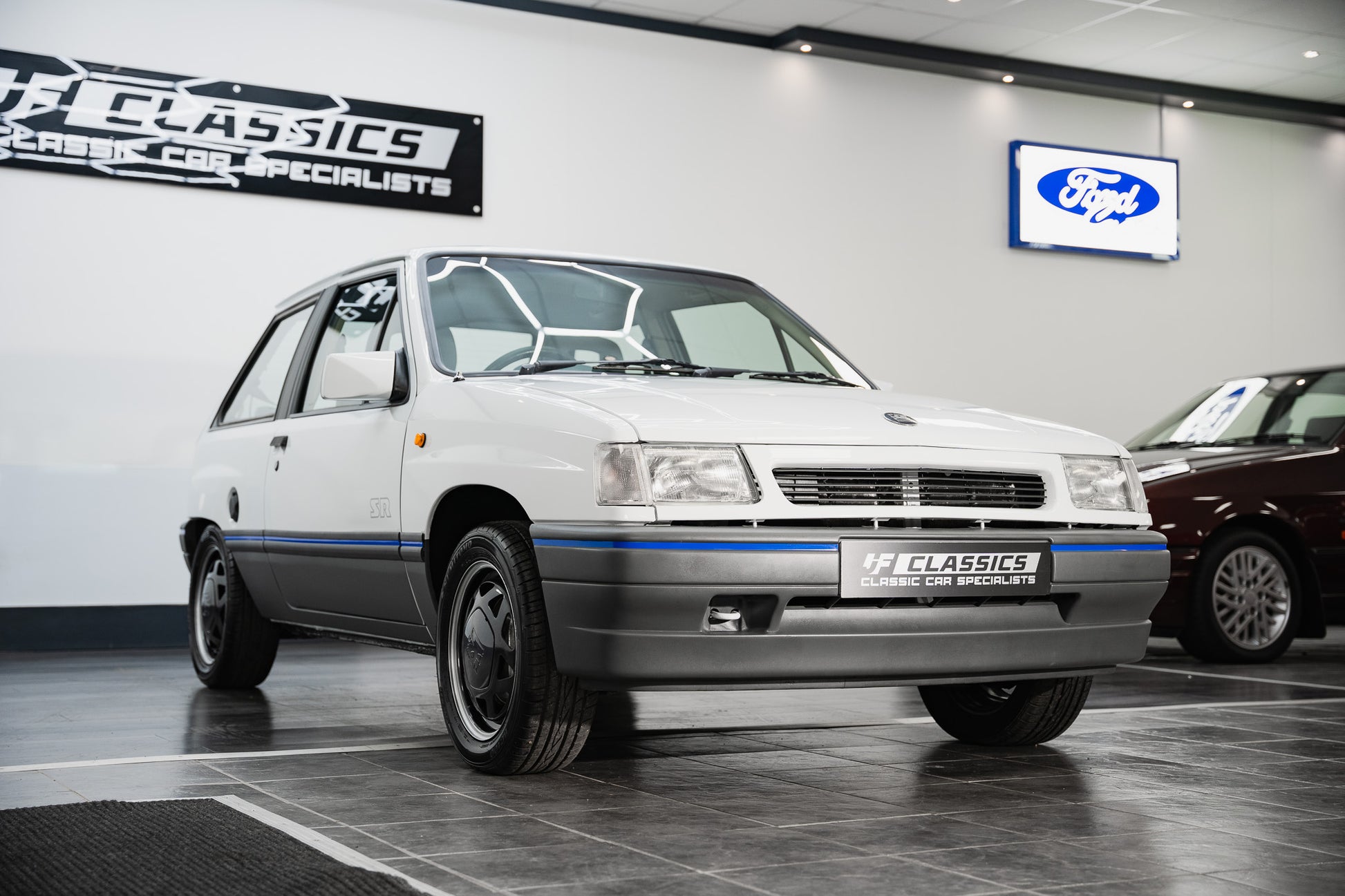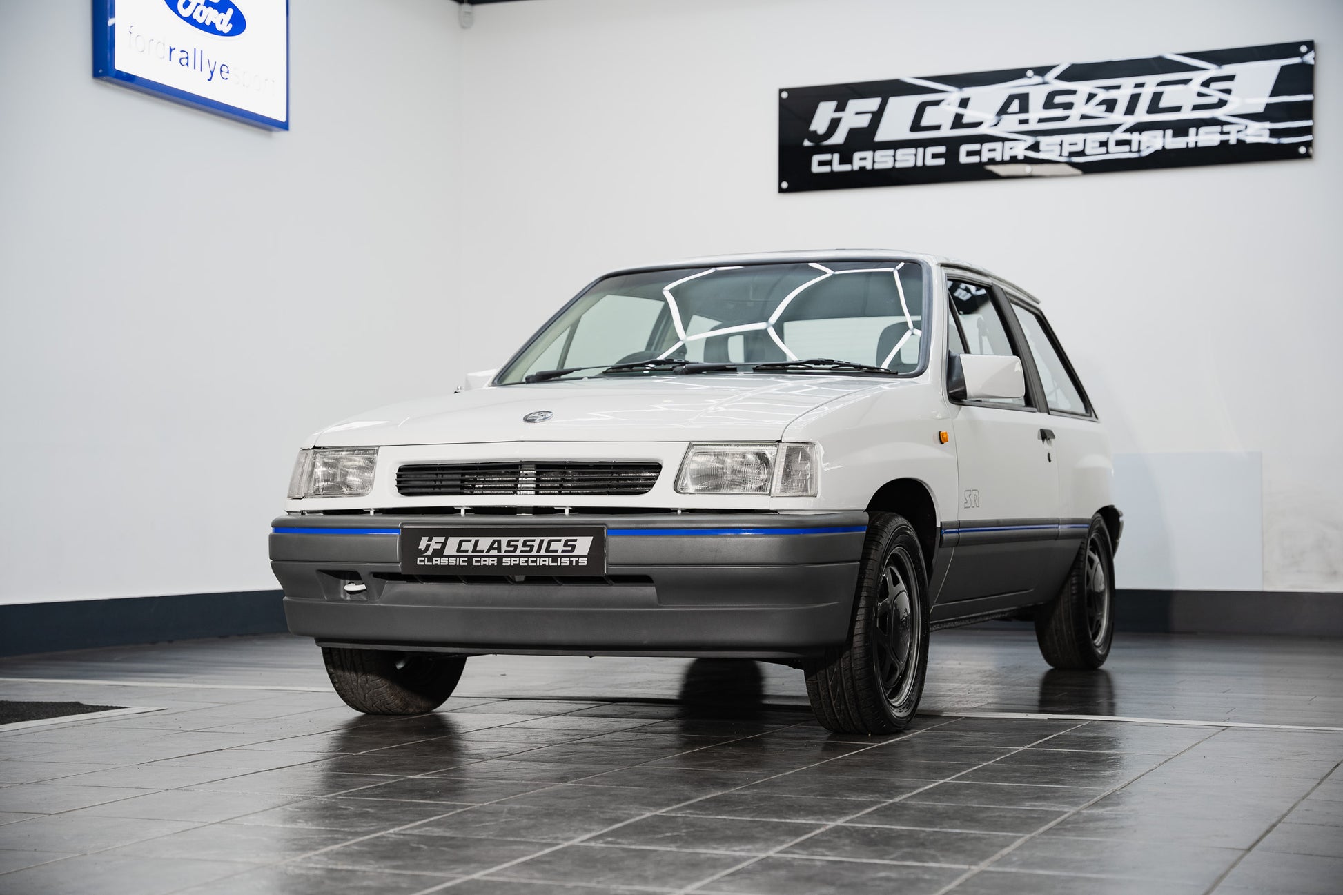 Finished in Glacier White (paint code 474), this 1991 Vauxhall Nova SR presents with a clean and highly period-correct exterior that reflects careful ownership and preservation. The paintwork maintains a consistent and vibrant finish across all panels from front to rear highlighting the car’s straight bodywork and condition.