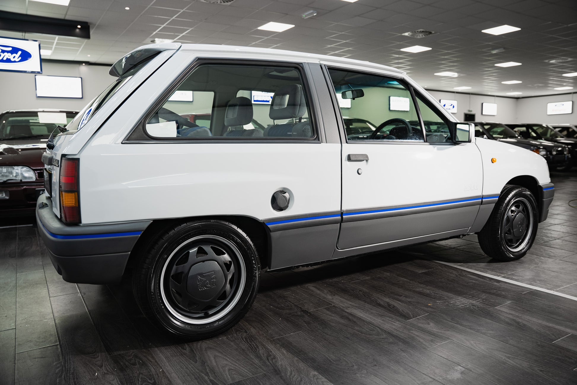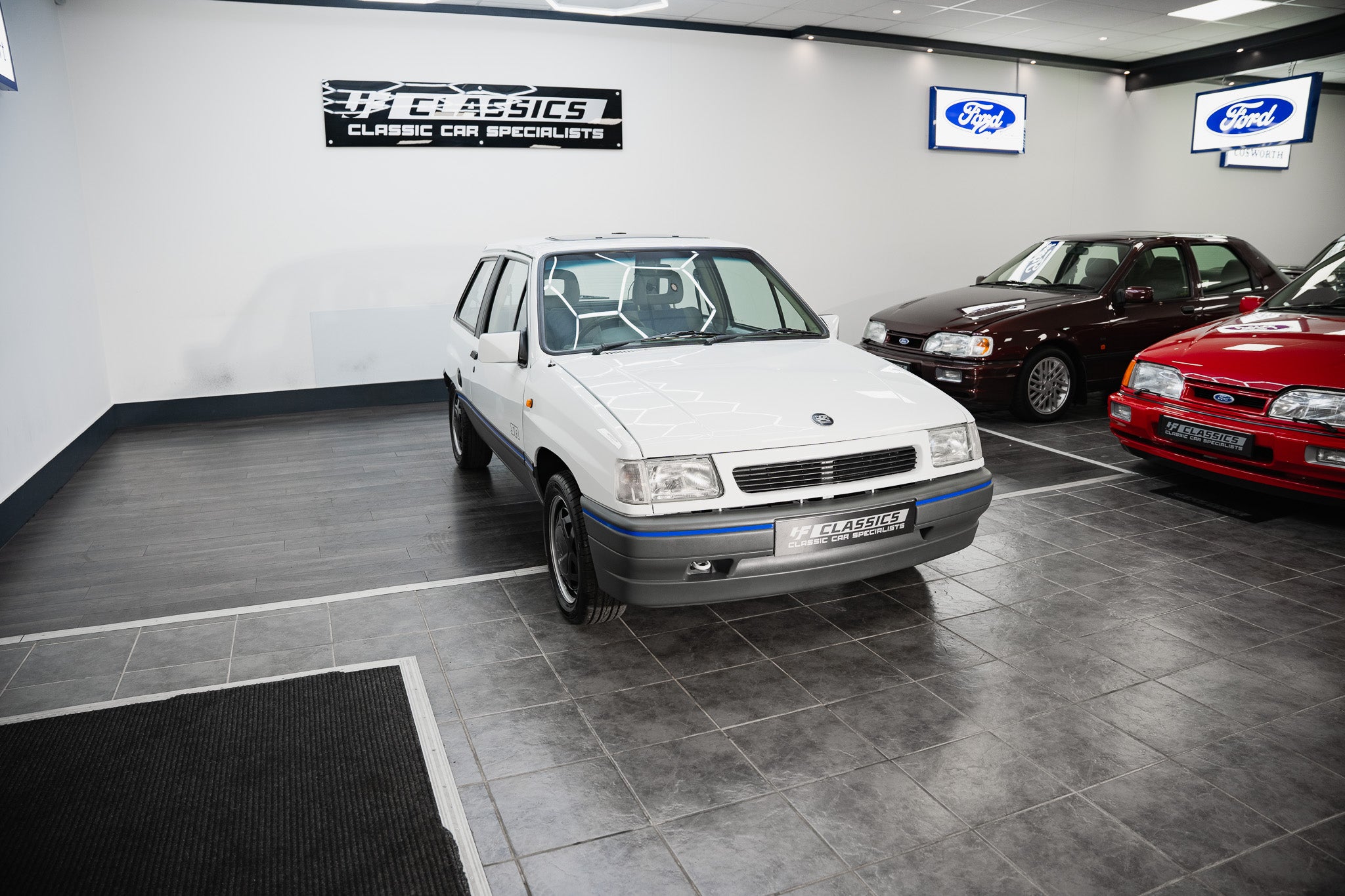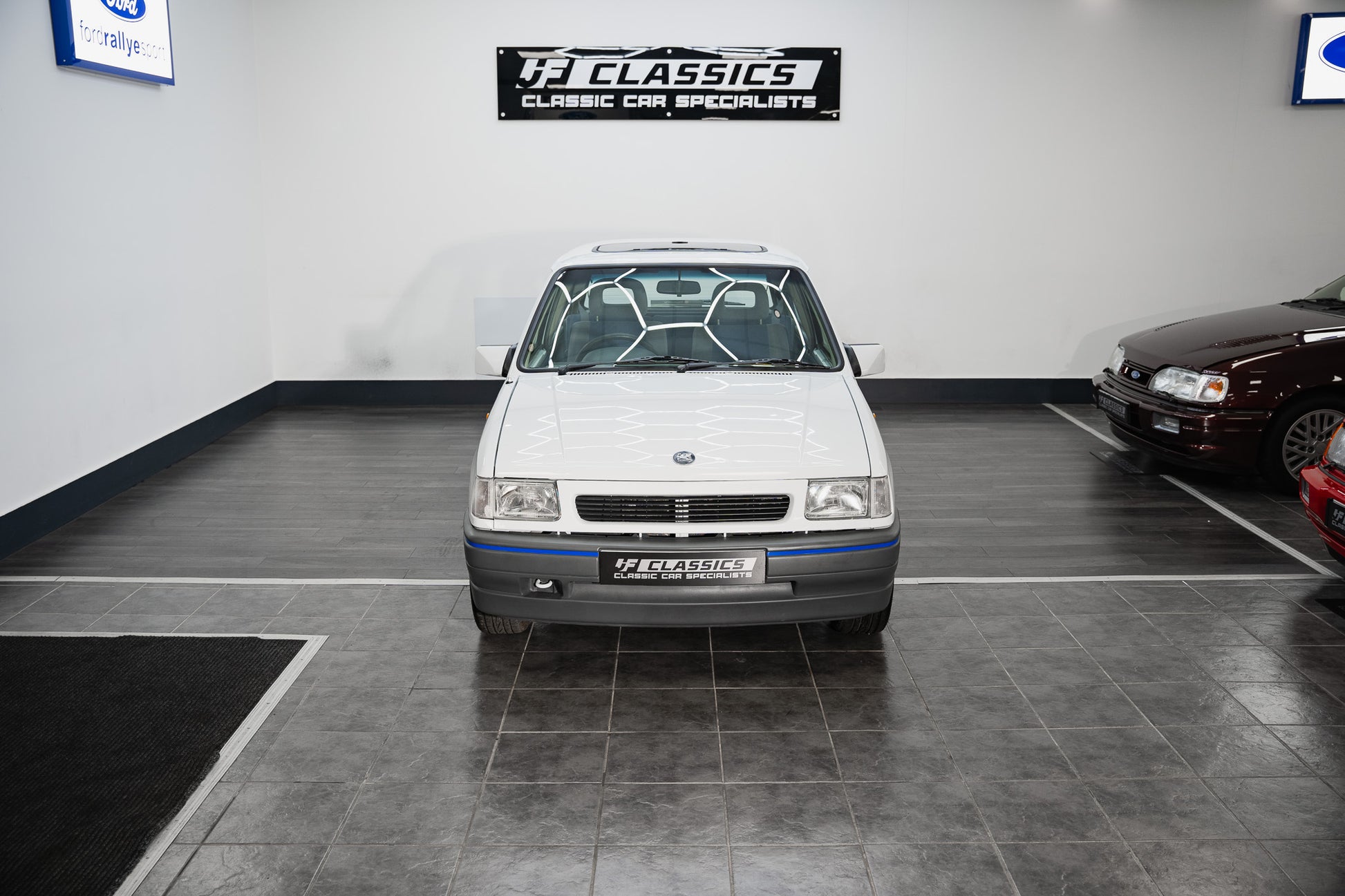 Finished in Glacier White (paint code 474), this 1991 Vauxhall Nova SR presents with a clean and highly period-correct exterior that reflects careful ownership and preservation. The paintwork maintains a consistent and vibrant finish across all panels from front to rear highlighting the car’s straight bodywork and condition.