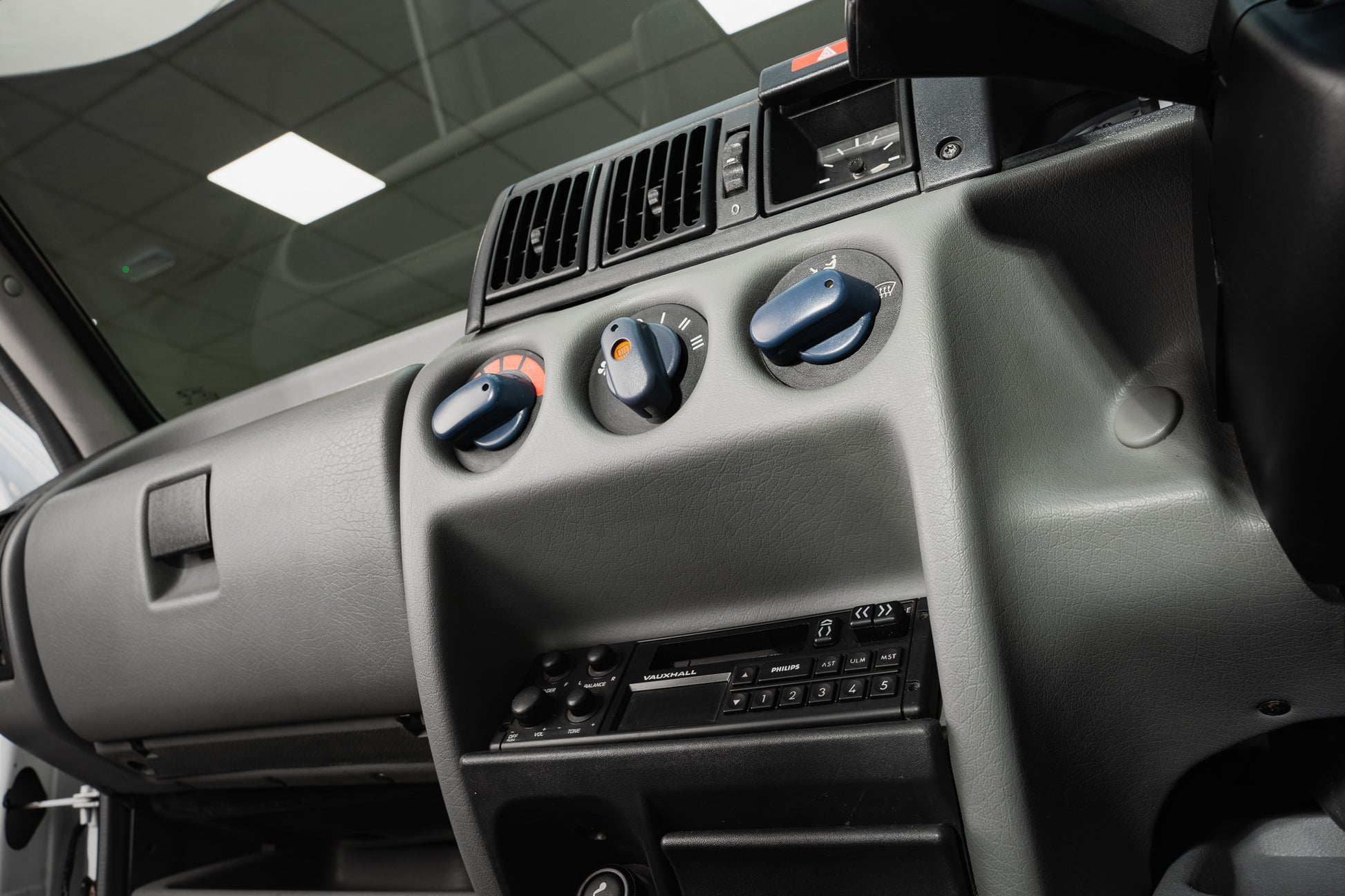 Further enhancing the driving environment, the rotary headlight switch and headlight adjustment control are correctly positioned and function as designed, while the three-spoke Vauxhall-embossed steering wheel sits comfortably in hand, showing very minimal wear, if any. Electrically operated front windows are controlled via switches mounted within the center console, operating smoothly and without fault, as per factory specification. The five-speed manual gear lever and handbrake lever both present with only the slightest signs of use, consistent with the car’s remarkably low mileage.