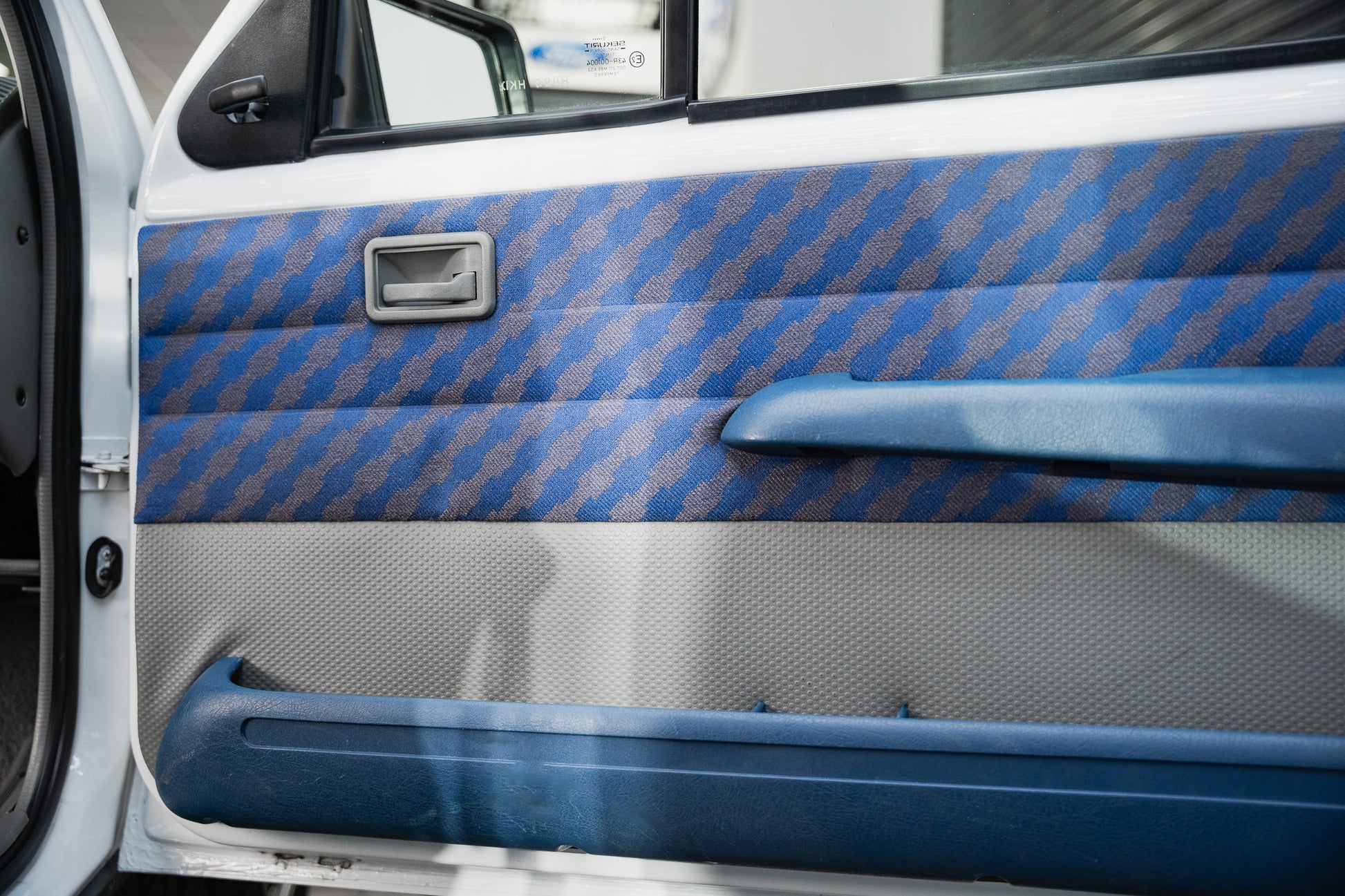 Stepping back into a time machine the interior of this 1991 Vauxhall Nova SR perfectly captures the character and driver-focused simplicity of early 1990s hot hatch design, Presented here in a remarkably well-preserved and highly original condition. The factory blue chequer seat panelling, paired with supportive grey bolsters, remains in very good order both front and rear, showing minimal signs of wear and retaining excellent shape and support throughout. This distinctive upholstery is complemented by matching door cards, which present to the same high standard, complete with the correct blue door pockets that further reinforce the SR’s period-correct aesthetic.