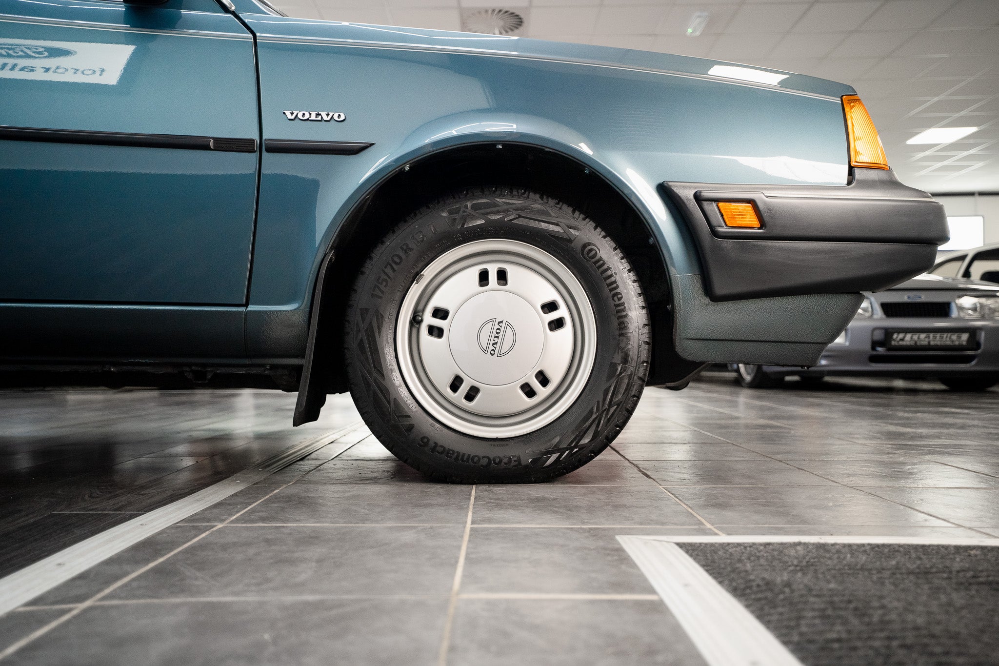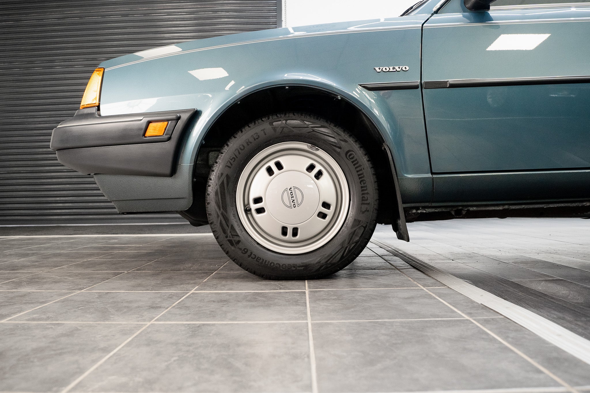 The 340 GLE sits proudly on its original 13-inch steel wheels, still finished in factory-correct silver, complete with immaculate Volvo centre caps that present bright, unblemished and free from corrosion. This set of wheels shows no curb marking, distortion or ageing a testament to careful ownership and low mileage use from new. Fitted are Continental 175/70 R13 tyres on all four corners, perfectly suited to the car’s factory ride and handling characteristics. These tyres show excellent tread depth and even wear patterns. Remarkably, the spare wheel still carries its original factory-fitted Michelin tyre, unused and preserved a true rarity and a collector’s detail seldom seen today.