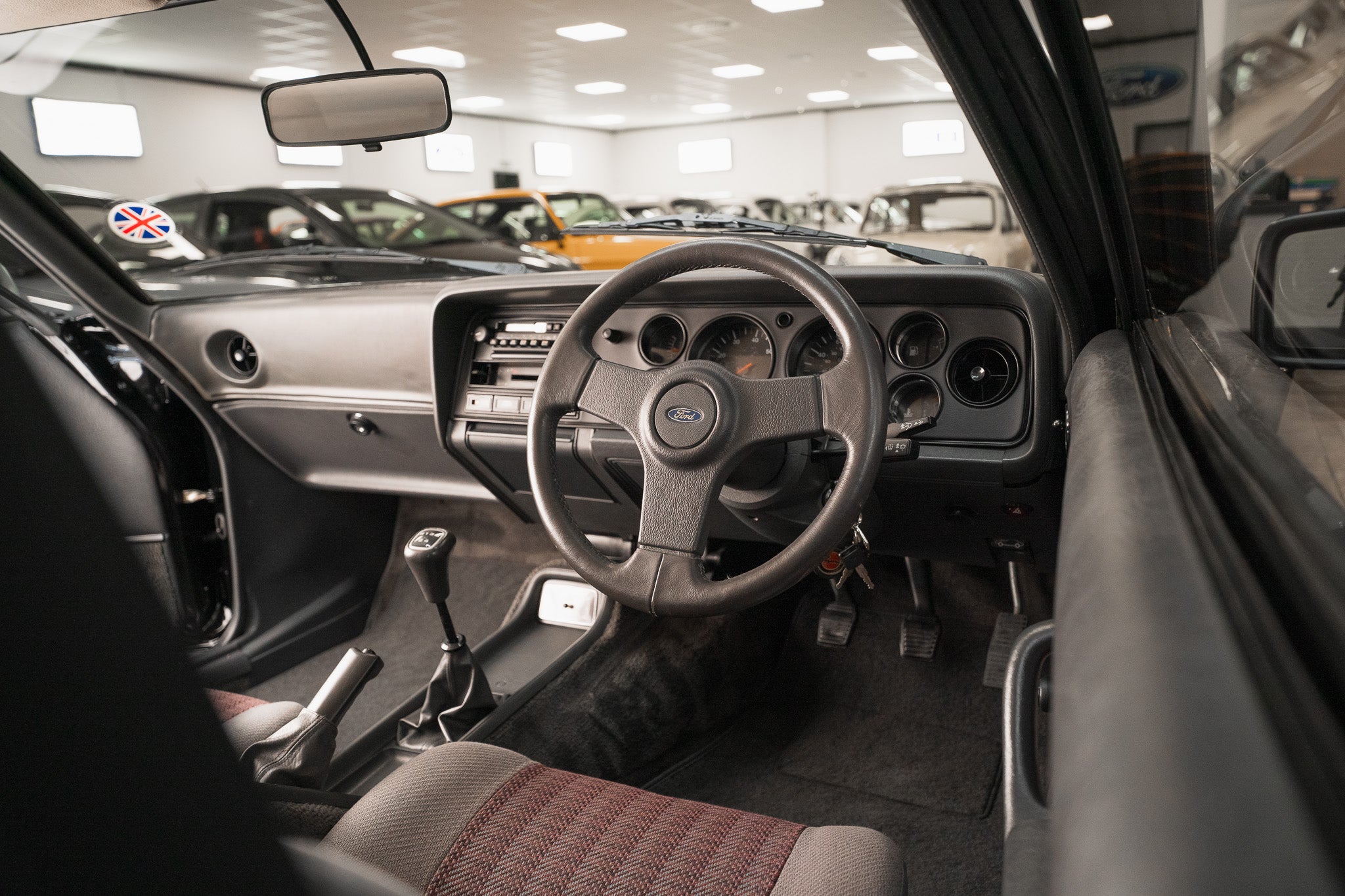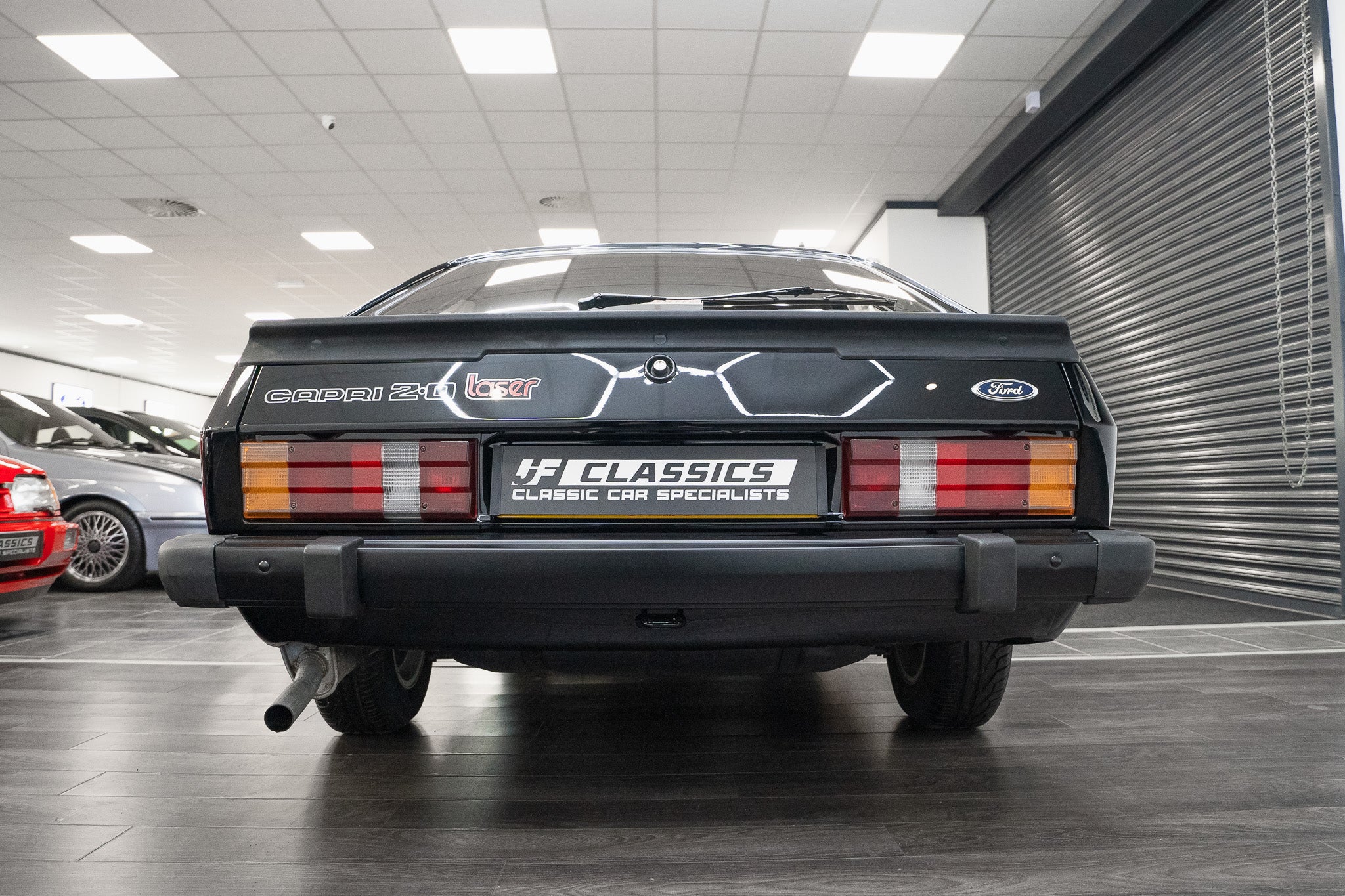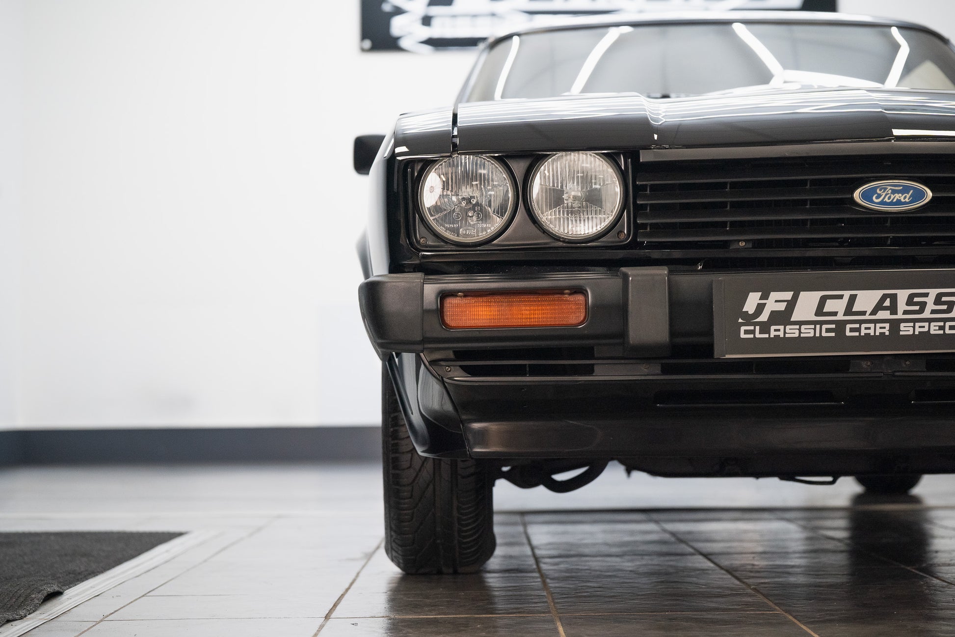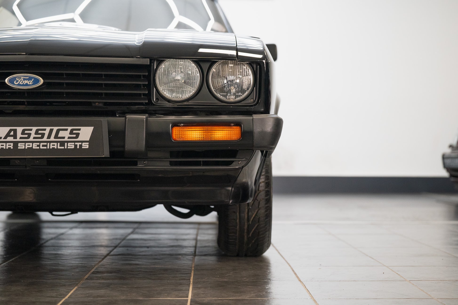 A true time-warp Mk3 Ford Capri 2.0 Laser, finished in its factory-correct Ford Black Paintwork (Paint Code A9) a £98.12 optional upgrade at the time of purchase, highlighting just how special this example was from new.