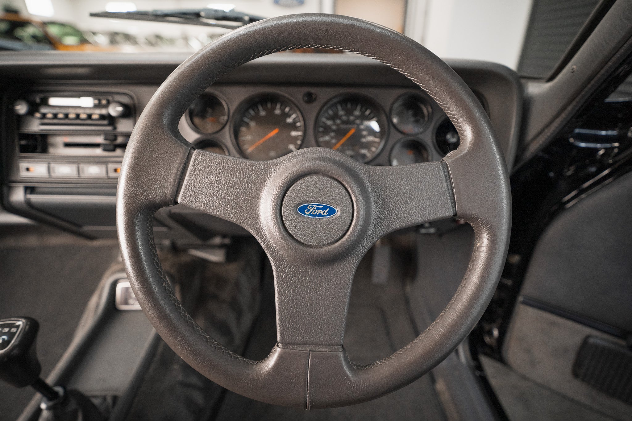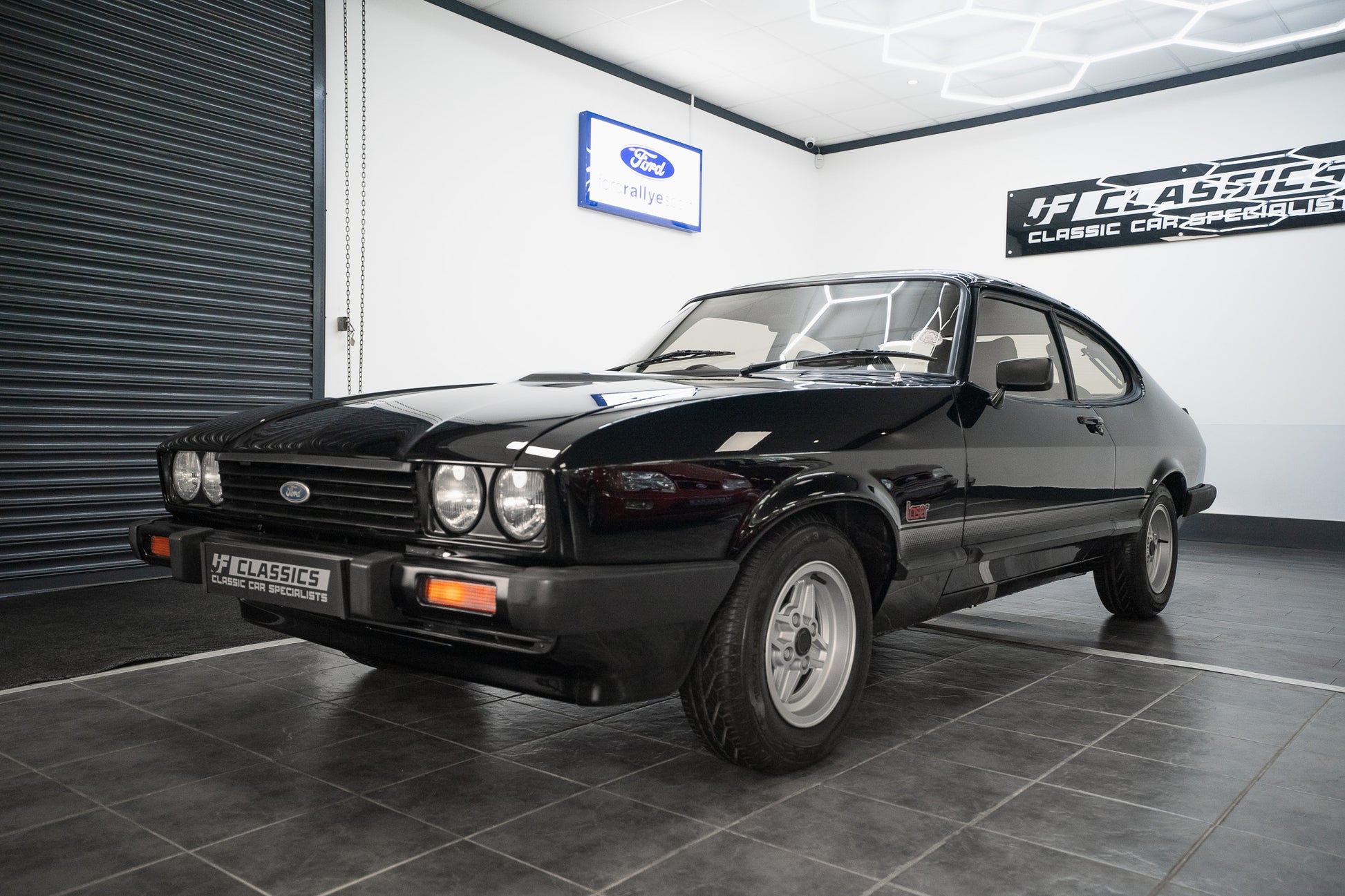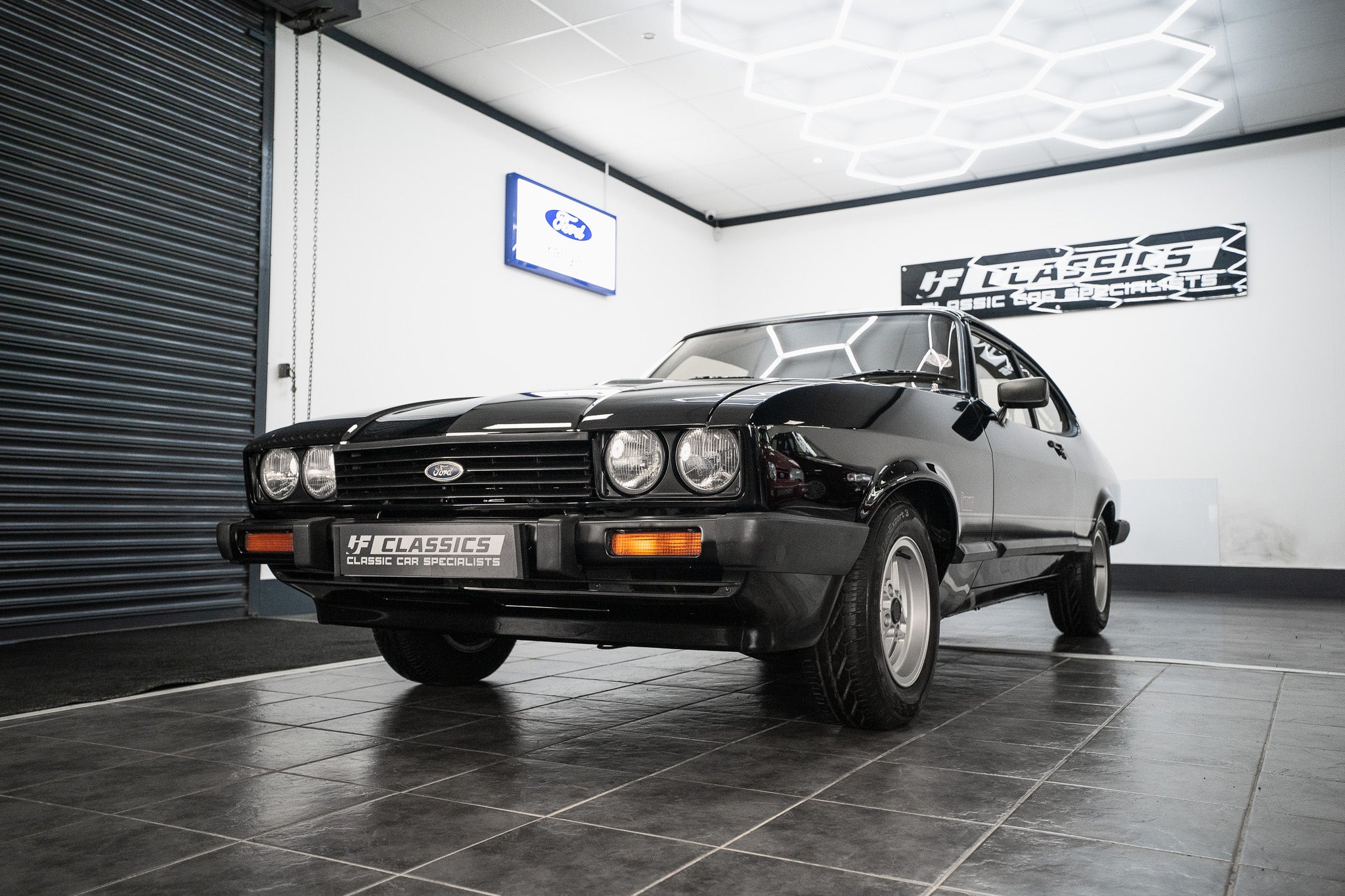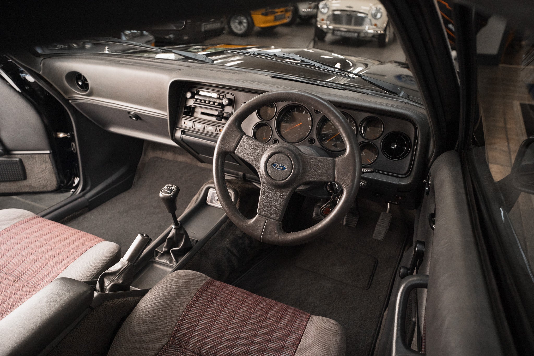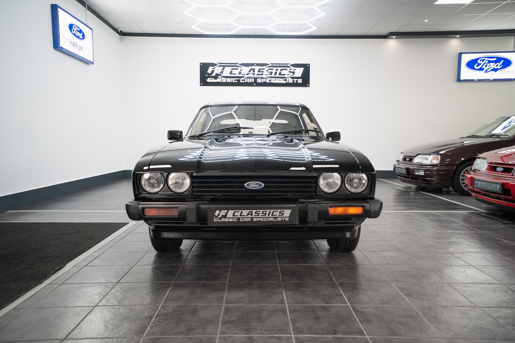 A true time-warp Mk3 Ford Capri 2.0 Laser, finished in its factory-correct Ford Black Paintwork (Paint Code A9) a £98.12 optional upgrade at the time of purchase, highlighting just how special this example was from new.