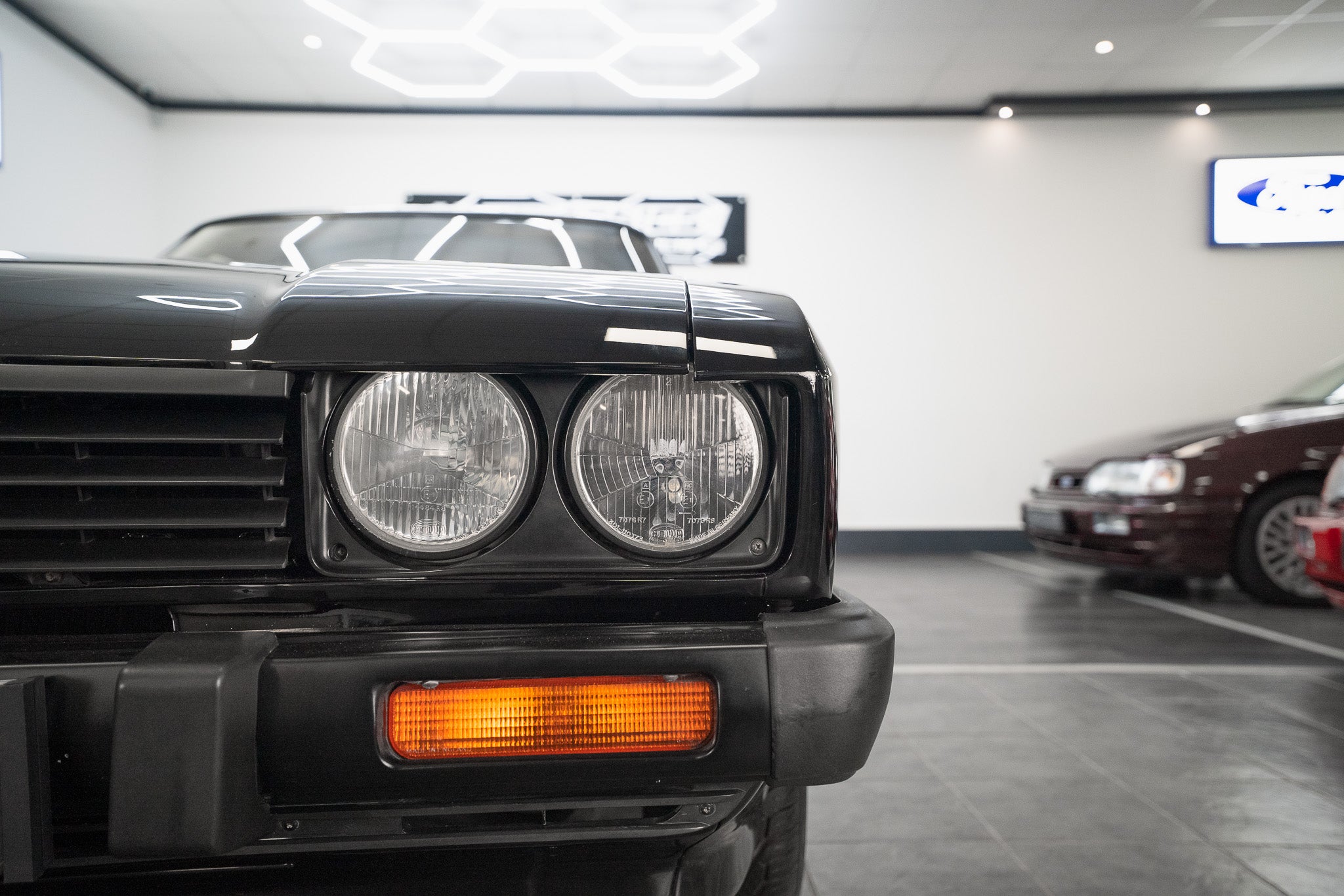 The twin original Hella headlamps are free from chips, cracks, or hazing, while the rear lamps are equally pristine and retain their correct factory markings. Black wraparound bumpers sit correctly front and rear, showing no scuffs or fading, providing a strong contrast to the glossy paintwork.