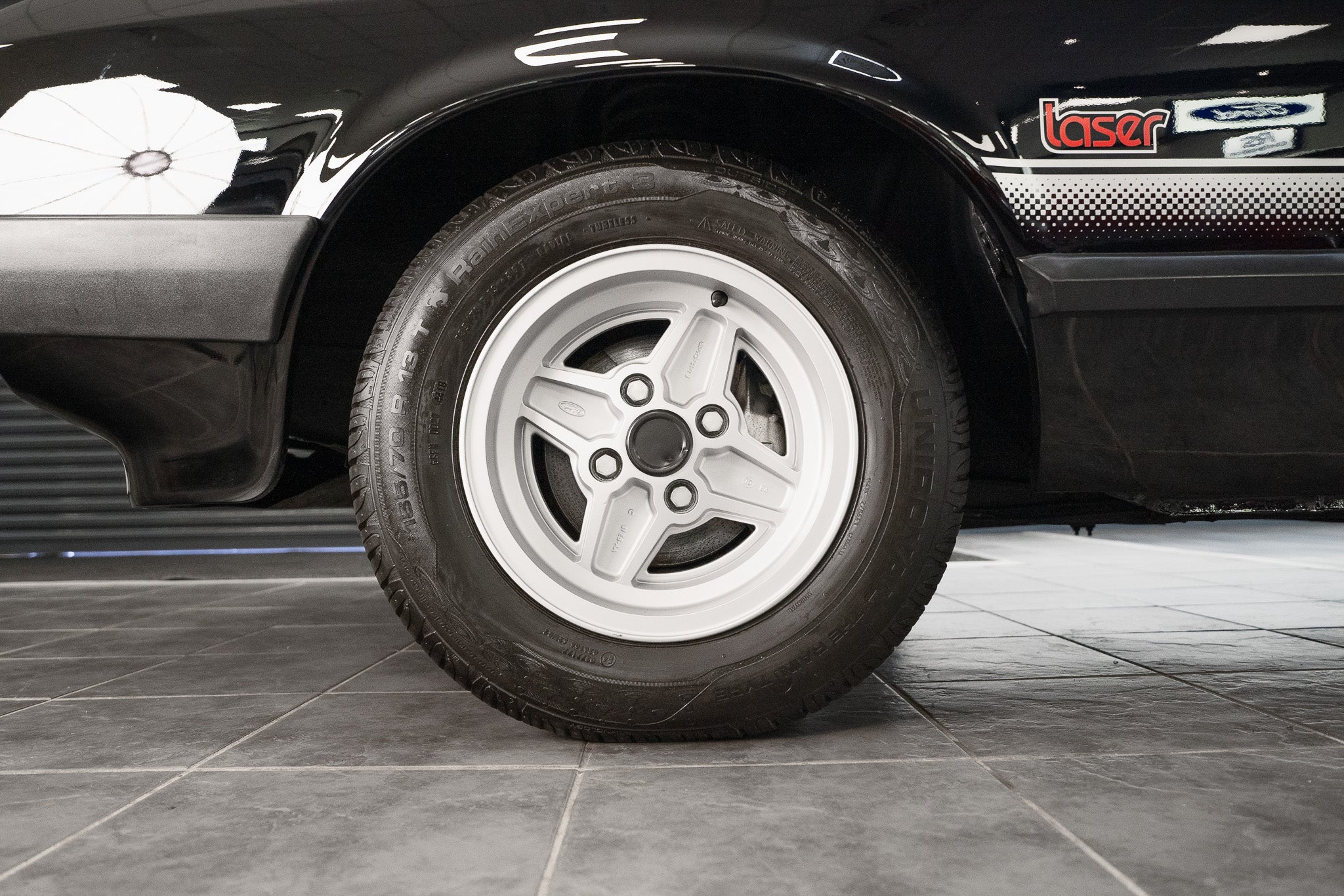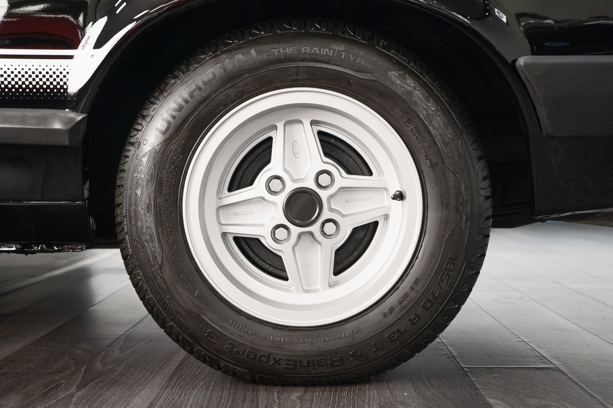 Sitting proudly on its original four-stud, four-spoke RS alloy wheels, this Capri 2.0 Laser perfectly captures the sporty yet understated character that made these models so desirable. Each wheel presents in immaculate condition, showing no signs of corrosion or curb marking, and remains true to factory specification including the spare wheel, which is still mounted in the boot and in equally fine order.