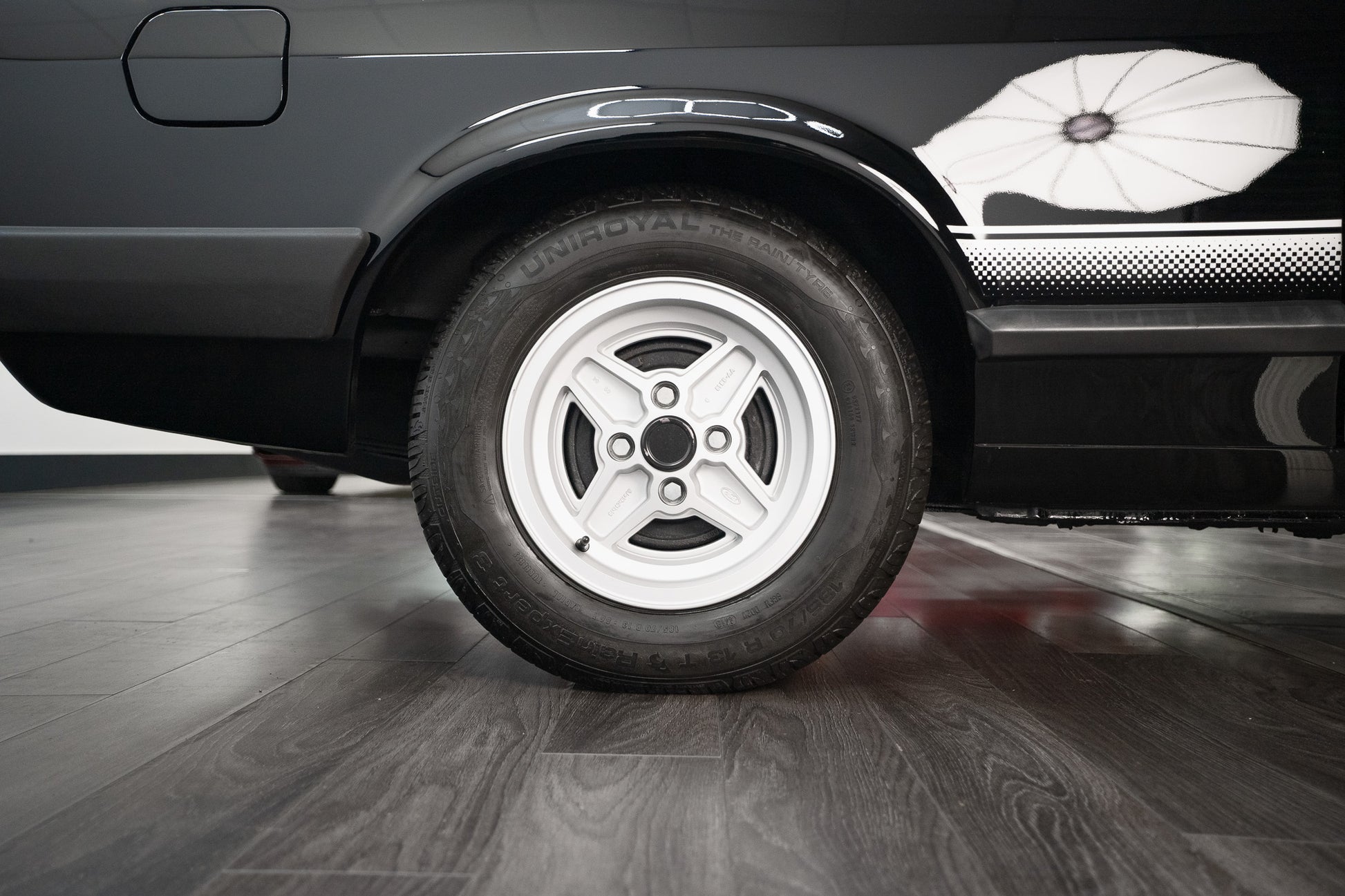 All four corners are fitted with as-new Uniroyal 165/70/R13 RainExpert tyres, ensuring excellent road grip and comfort while retaining the car’s authentic period-correct stance. The tyres’ deep tread pattern and supple sidewalls complement the Capri’s balanced chassis, offering a secure and confident feel on modern roads.