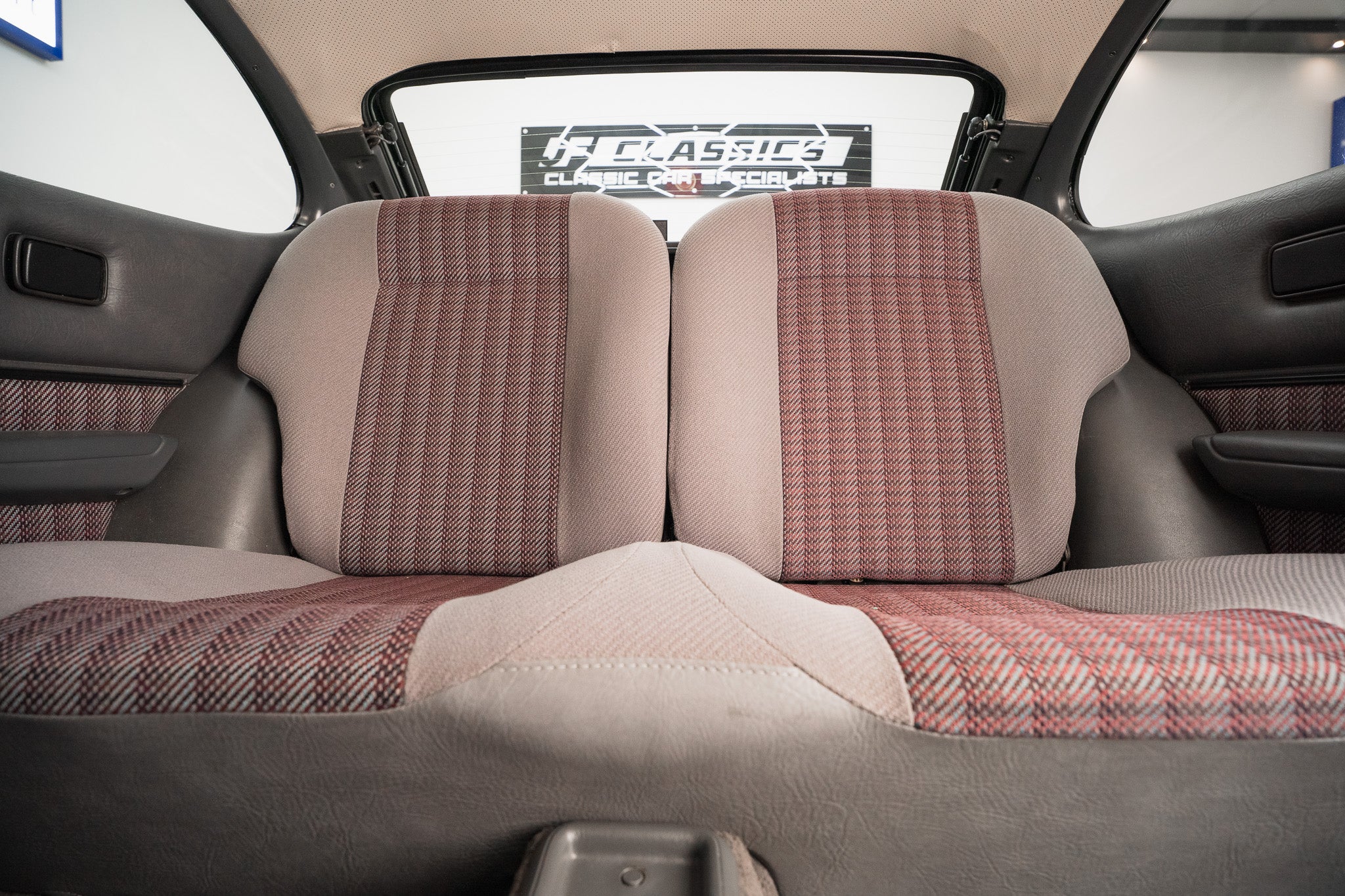 Opening the doors, you are instantly transported back to the retro eighties era, where Ford design blended simplicity, sportiness, and style with unmistakable charm. Inside, the Capri presents with its original ‘Truro II’ cloth interior trim, finished in a beautifully preserved condition throughout. Both front and rear seats show no signs of wear, their fabric still tight and vibrant, complemented by matching front headrests, also spotless. The front seats retain their reclining backs, operating smoothly and precisely as intended a testament to the car’s light use and careful ownership.
