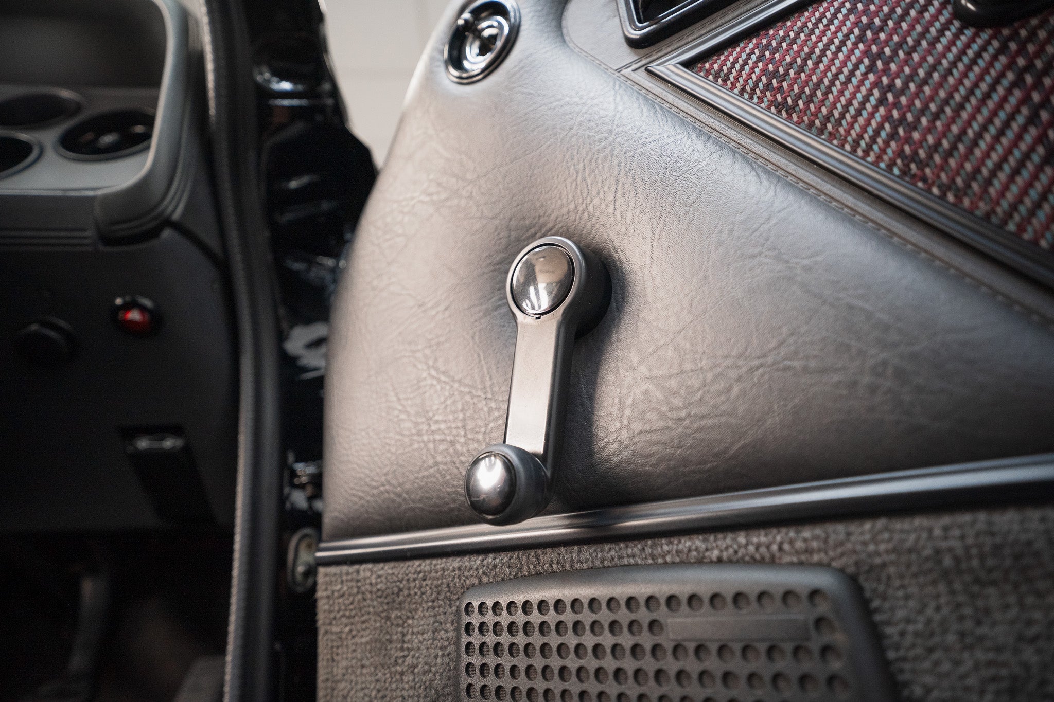 The door panels remain immaculate, blending grey vinyl leather, Truro II cloth, and grey carpeted lower sections a combination that works remarkably well, reflecting Ford’s period design flair. Both manual window winders operate smoothly, as does the internal driver’s mirror adjustment.