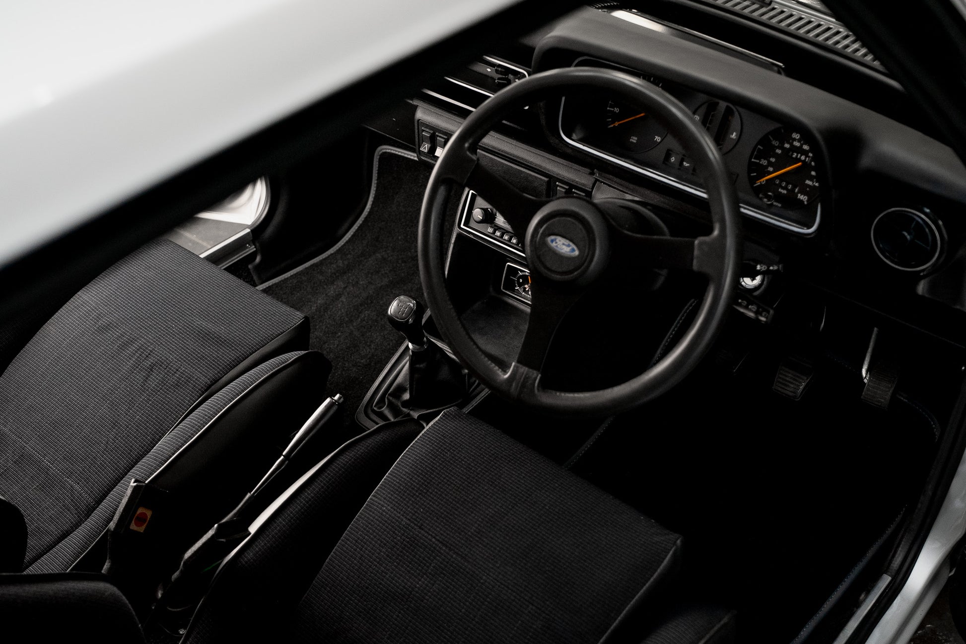 Stepping inside this Mk2 Escort Harrier is like opening the door to a 1980 true period-correct, time-warp cabin that remains remarkably original. The Harrier-specific black Beta cloth seats present in very good condition throughout, the bolsters still offering that snug, supportive embrace the model is known for, with no sagging, splitting or excessive wear